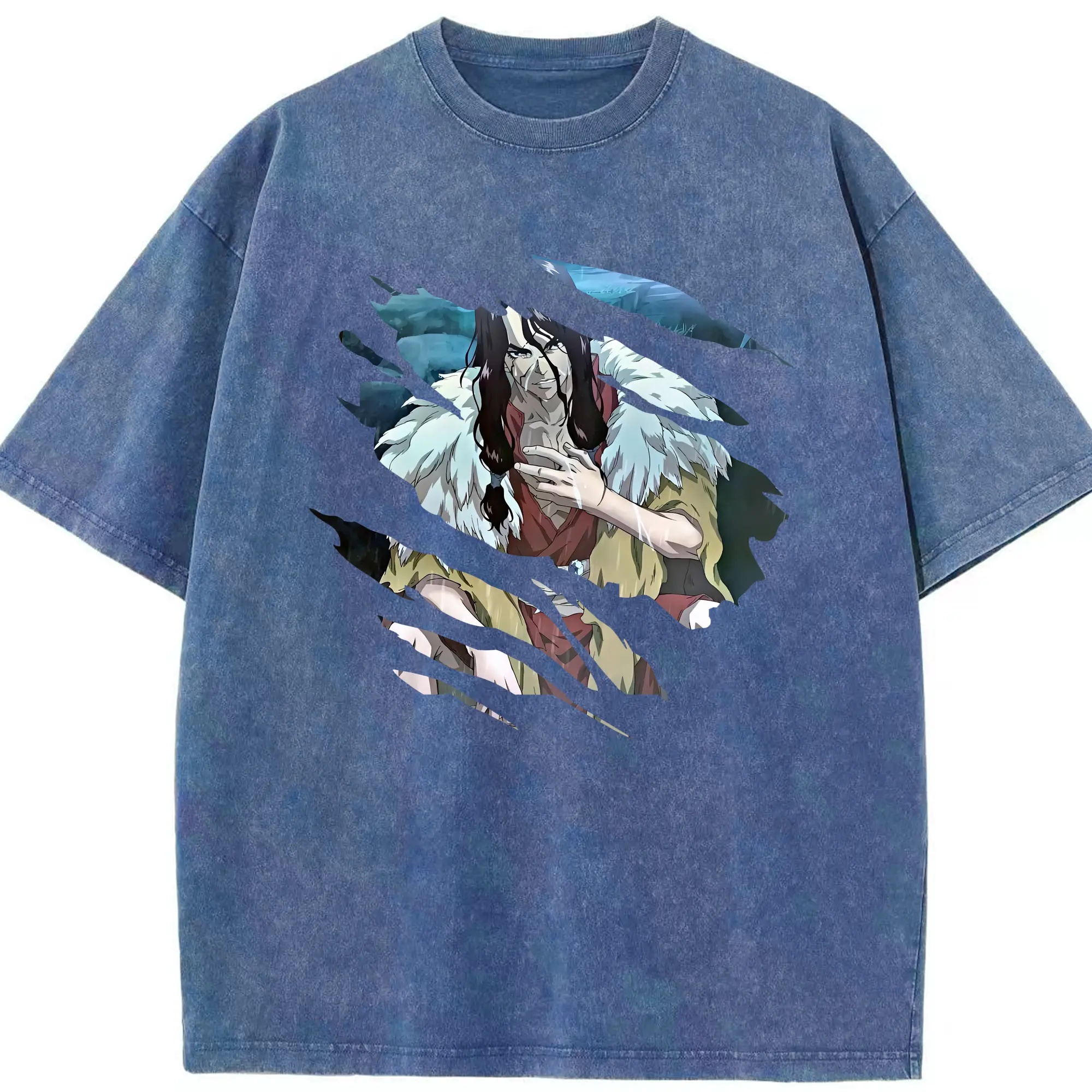 ドクターストーン グッズ,司 - 綿100% ヴィンテージ風 半袖Tシャツ ・ 背面プリント ・ 柔らか肌触り ・ 通気性 快適 ・ スポーツ カジュアル 外出用