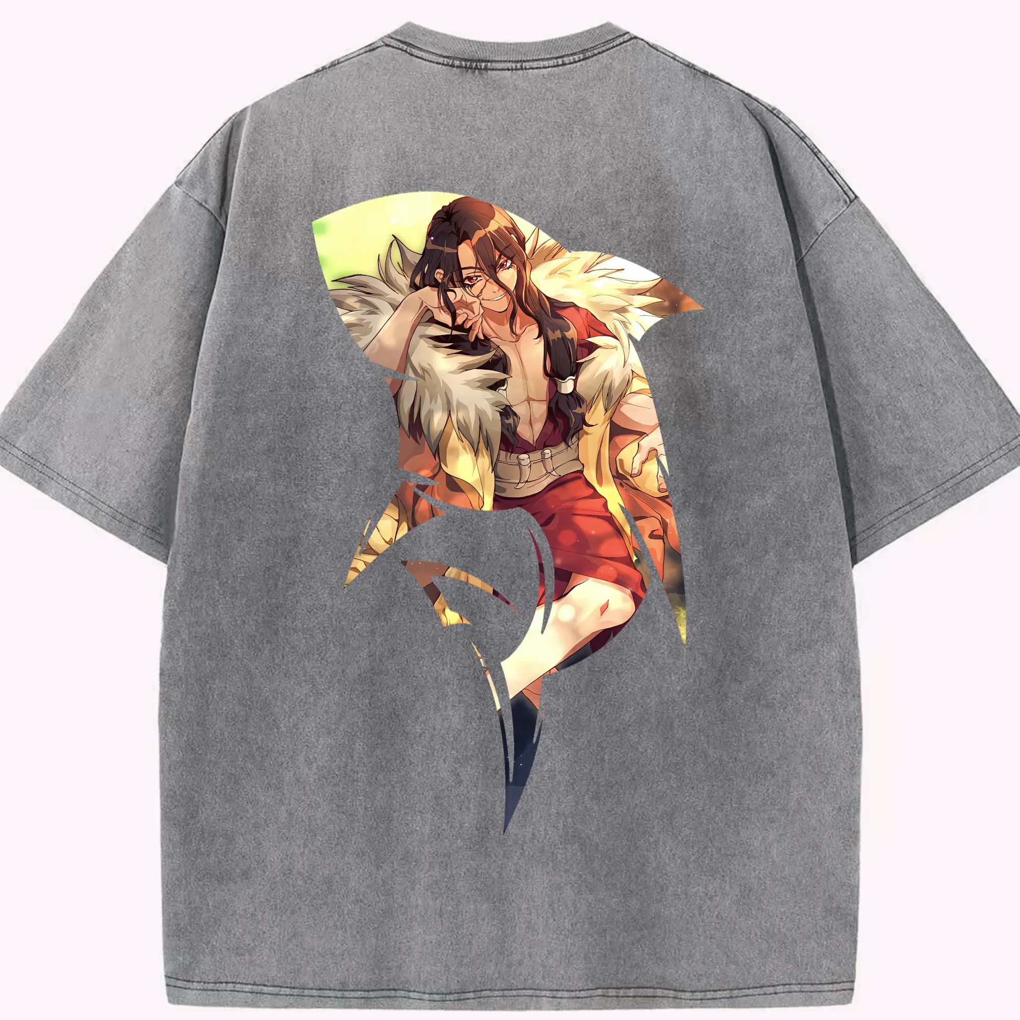 ドクターストーン グッズ,司 - 綿100% ヴィンテージ風 半袖Tシャツ ・ フロントプリント ・ 柔らか肌触り ・ 通気性 快適 ・ スポーツ カジュアル 外出用