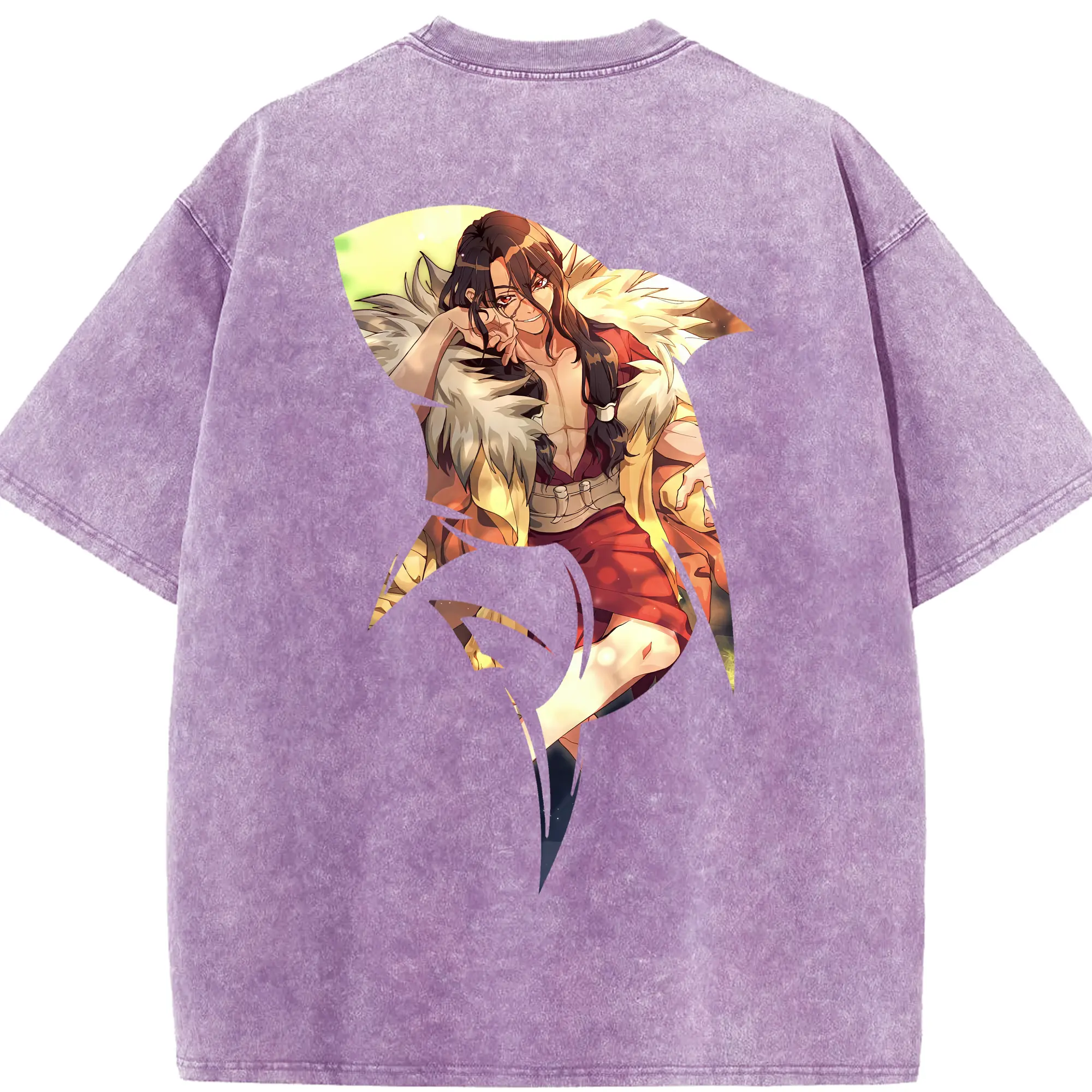 鬼滅の刃 グッズ,獪岳 - 綿100% ヴィンテージ風 半袖Tシャツ ・ 背面プリント ・ 柔らか肌触り ・ 通気性 快適 ・ スポーツ カジュアル 外出用