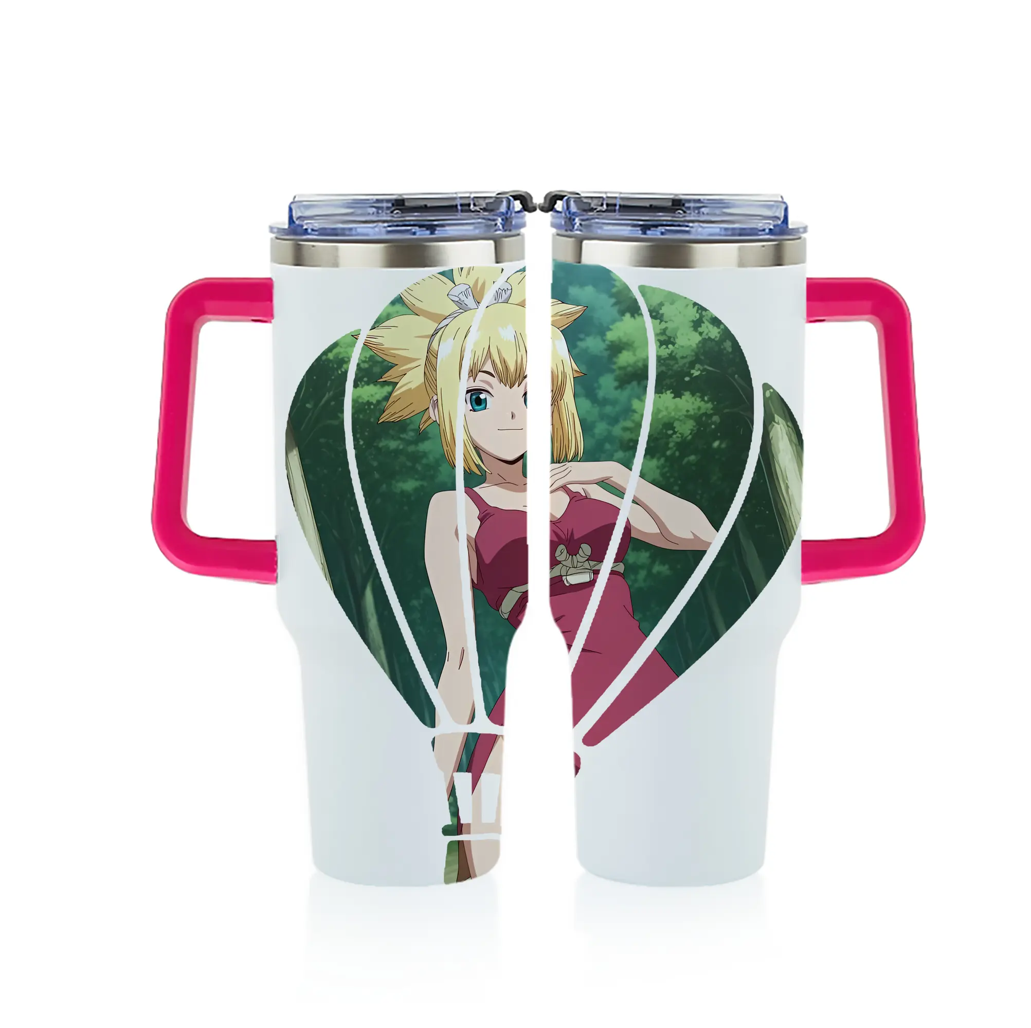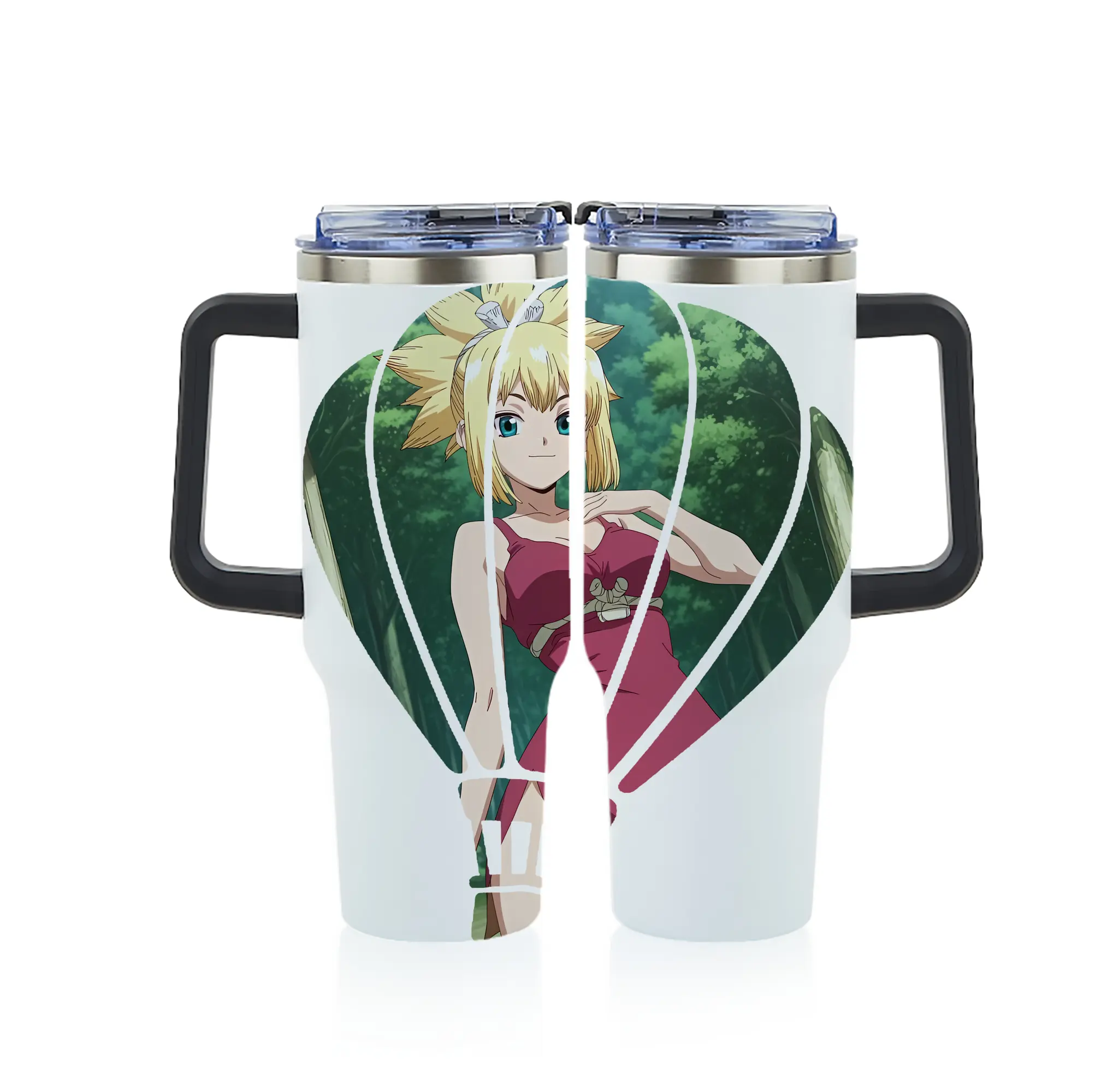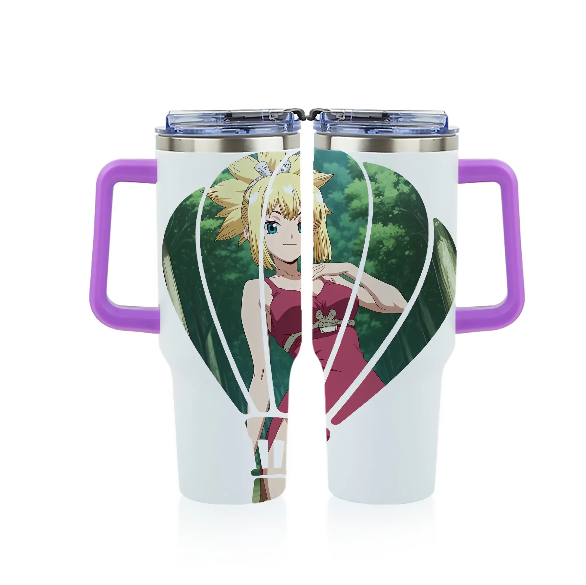 ドクターストーン グッズ,コハク - 1200mL フルプリント車用タンブラー ・ 304ステンレス 内側 ・ 201ステンレス 外側 ・ 保温 保冷 ・ 通勤 ドライブ アウトドア用