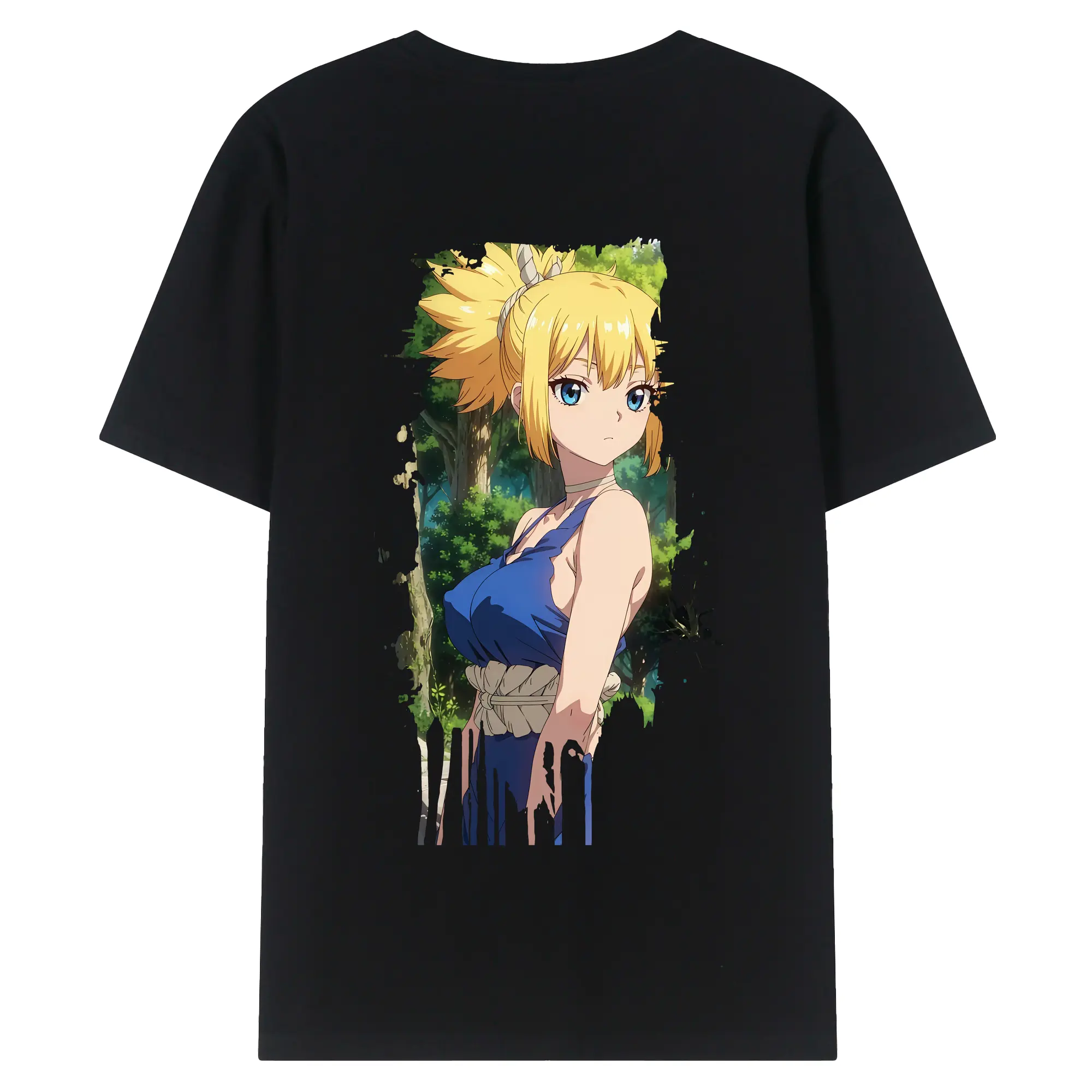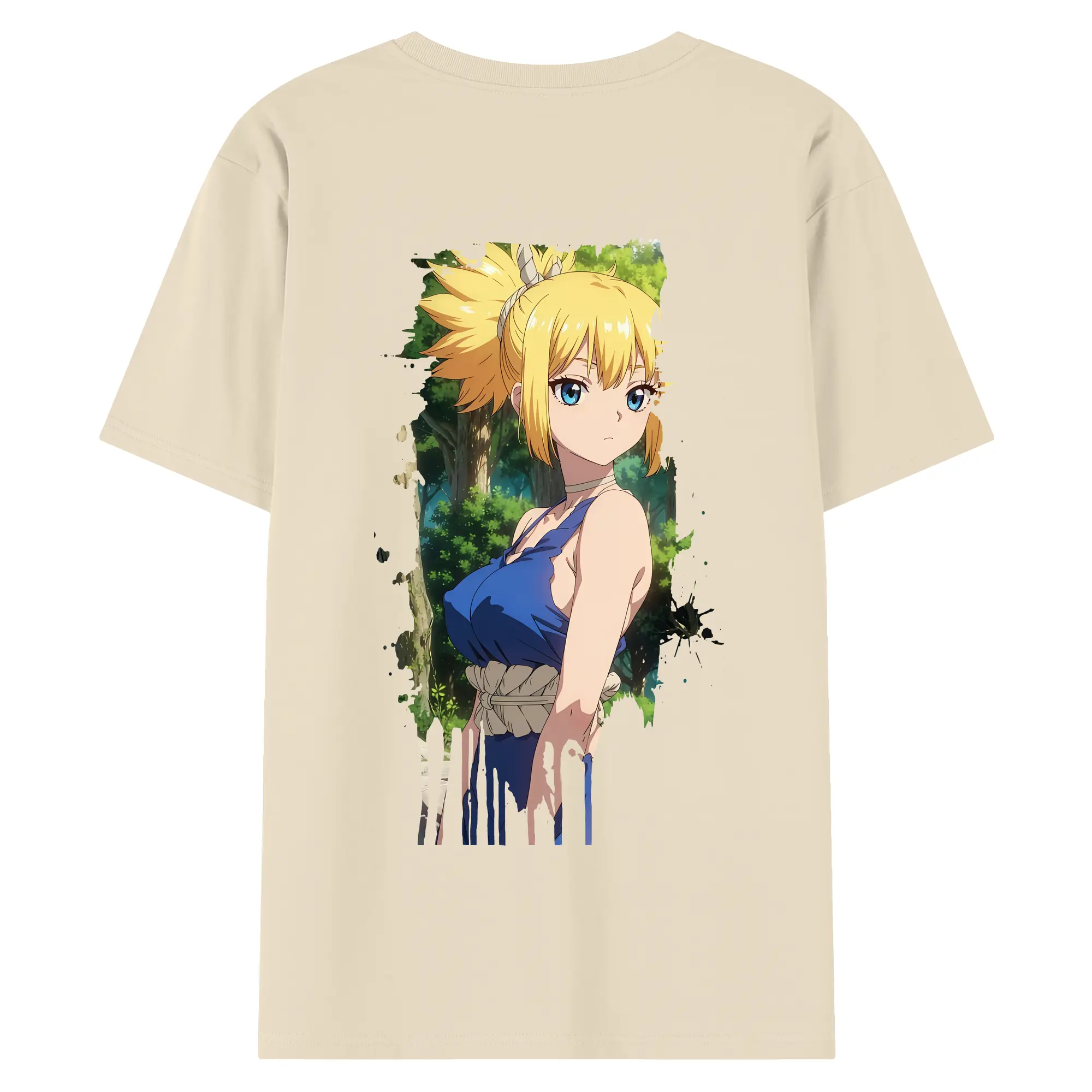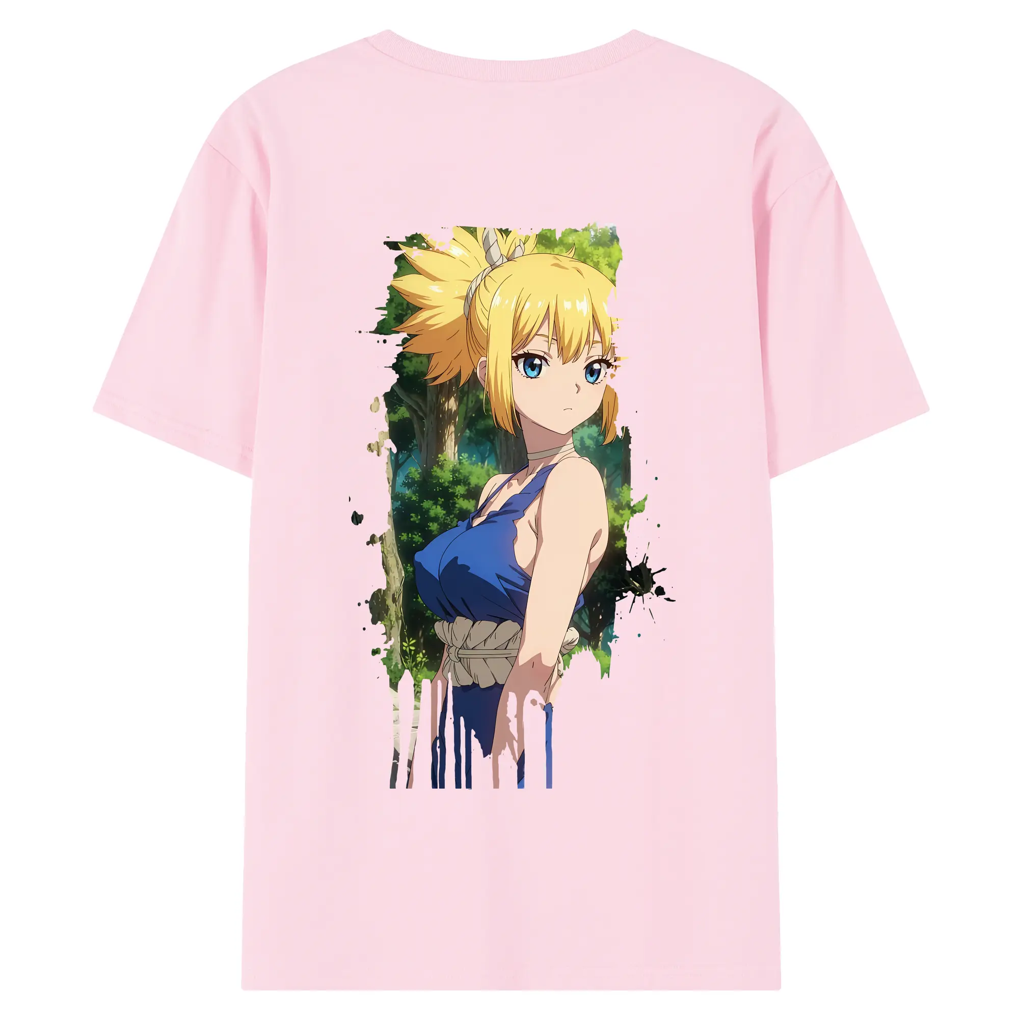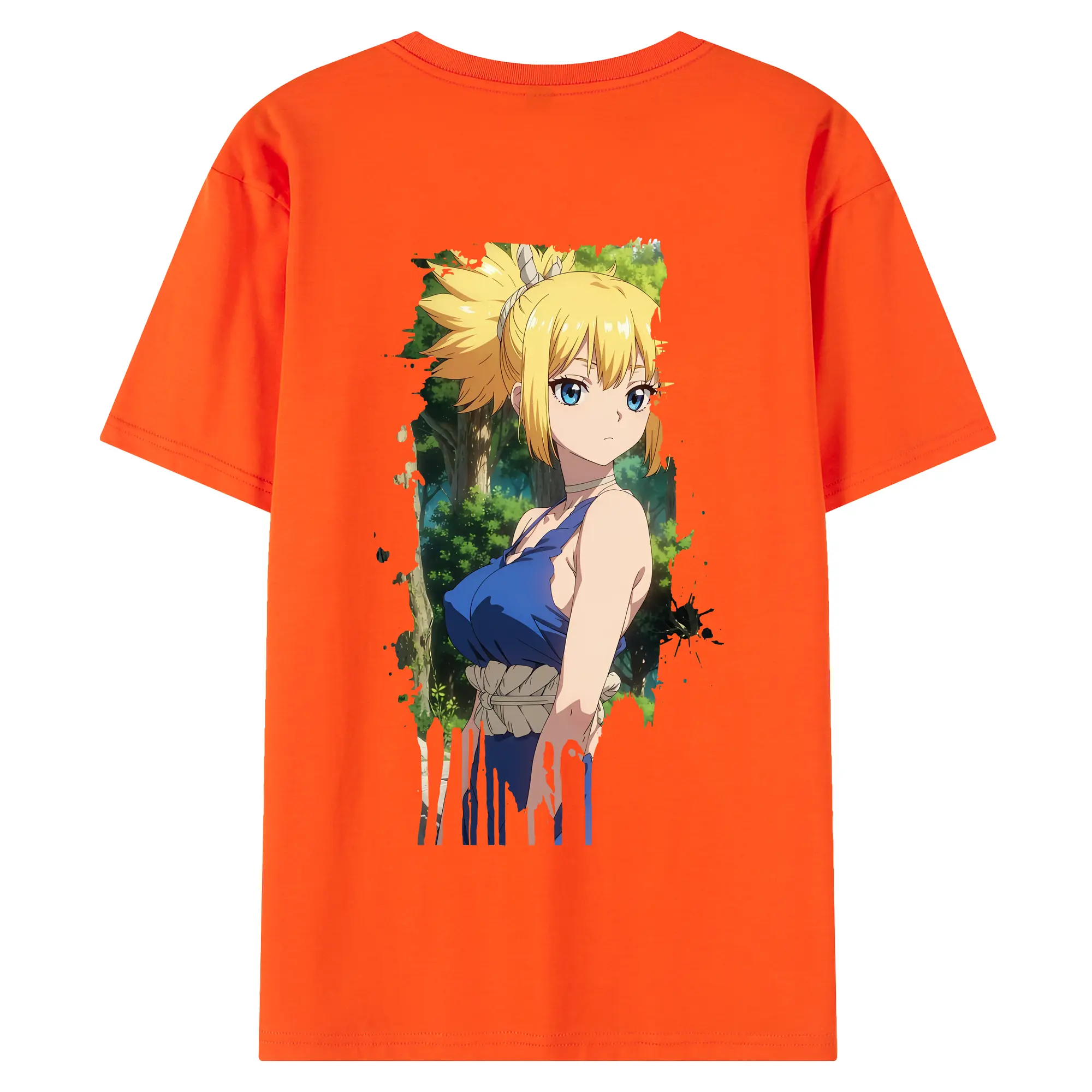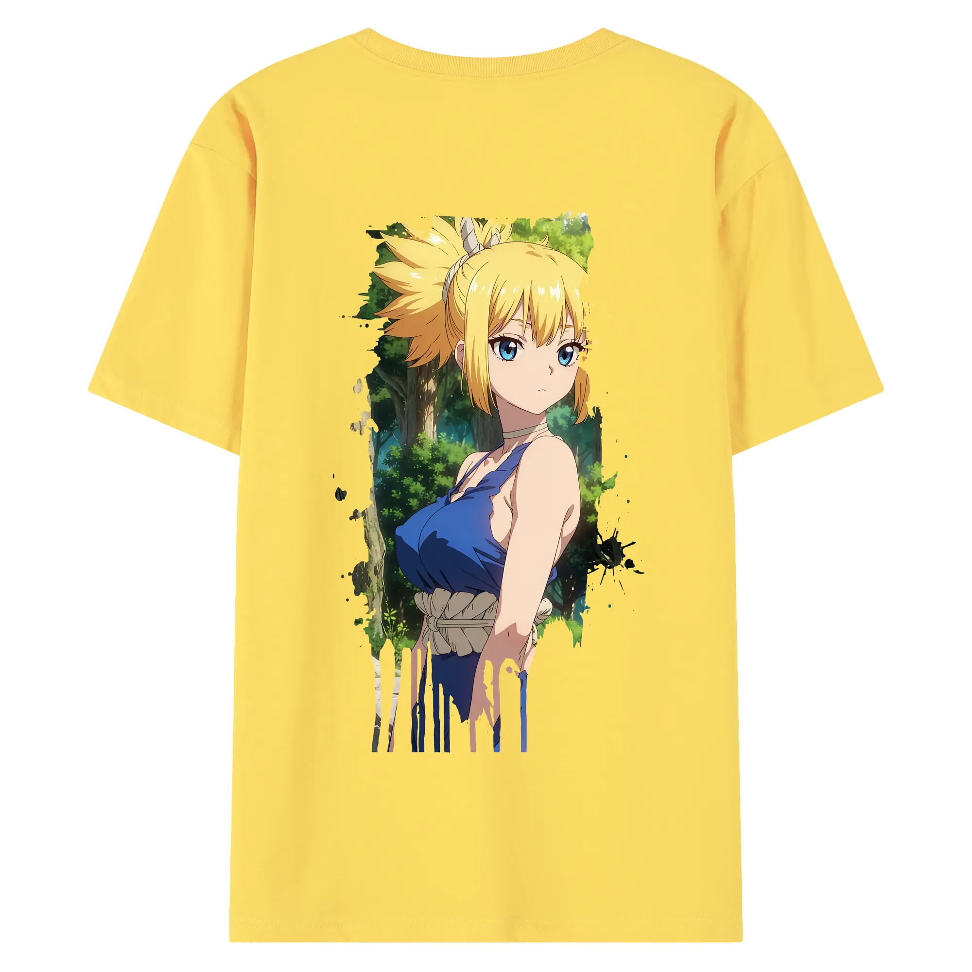 ドクターストーン グッズ,コハク - 綿100% ヴィンテージ風 半袖Tシャツ ・ 背面プリント ・ 柔らか肌触り ・ 通気性 快適 ・ スポーツ カジュアル 外出用