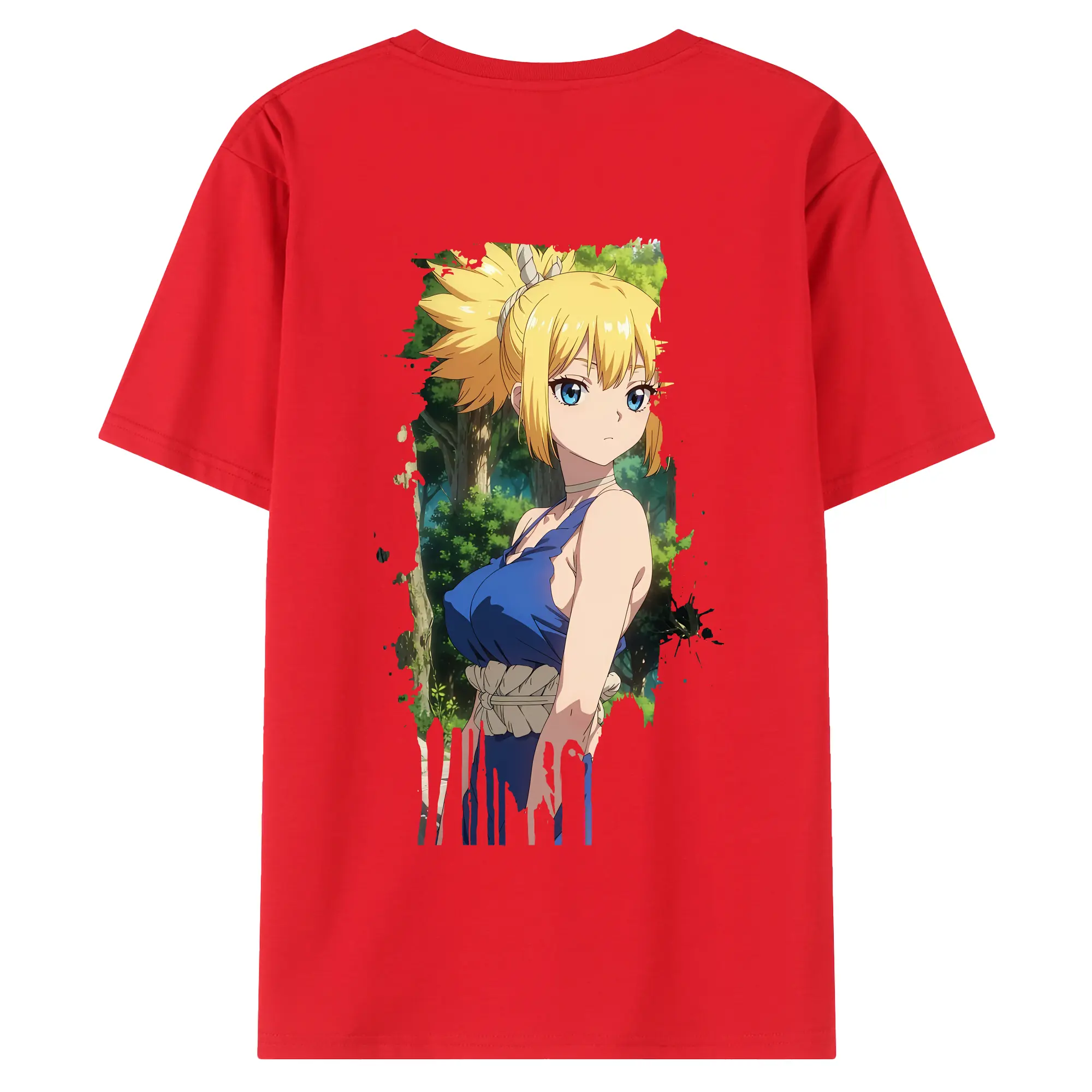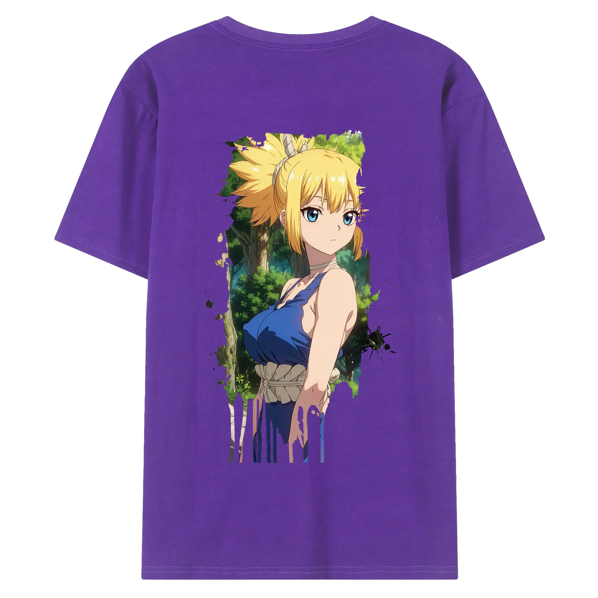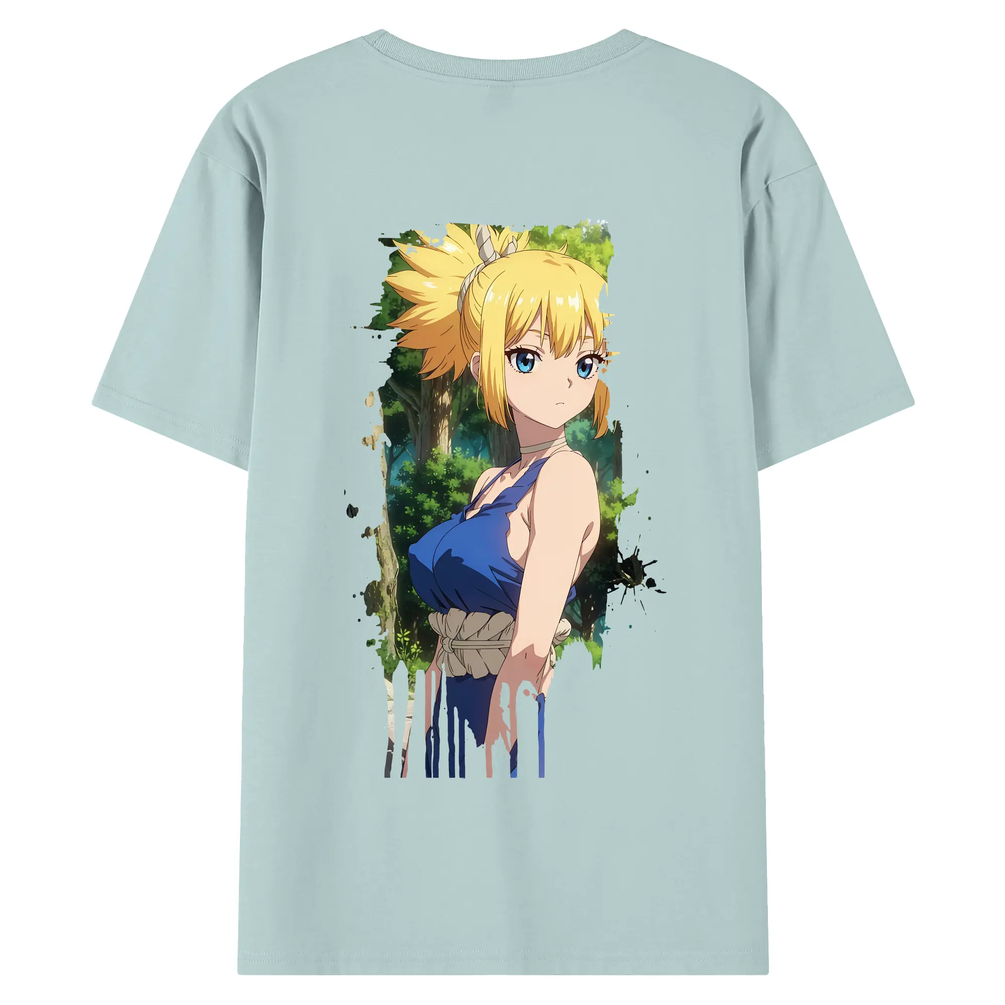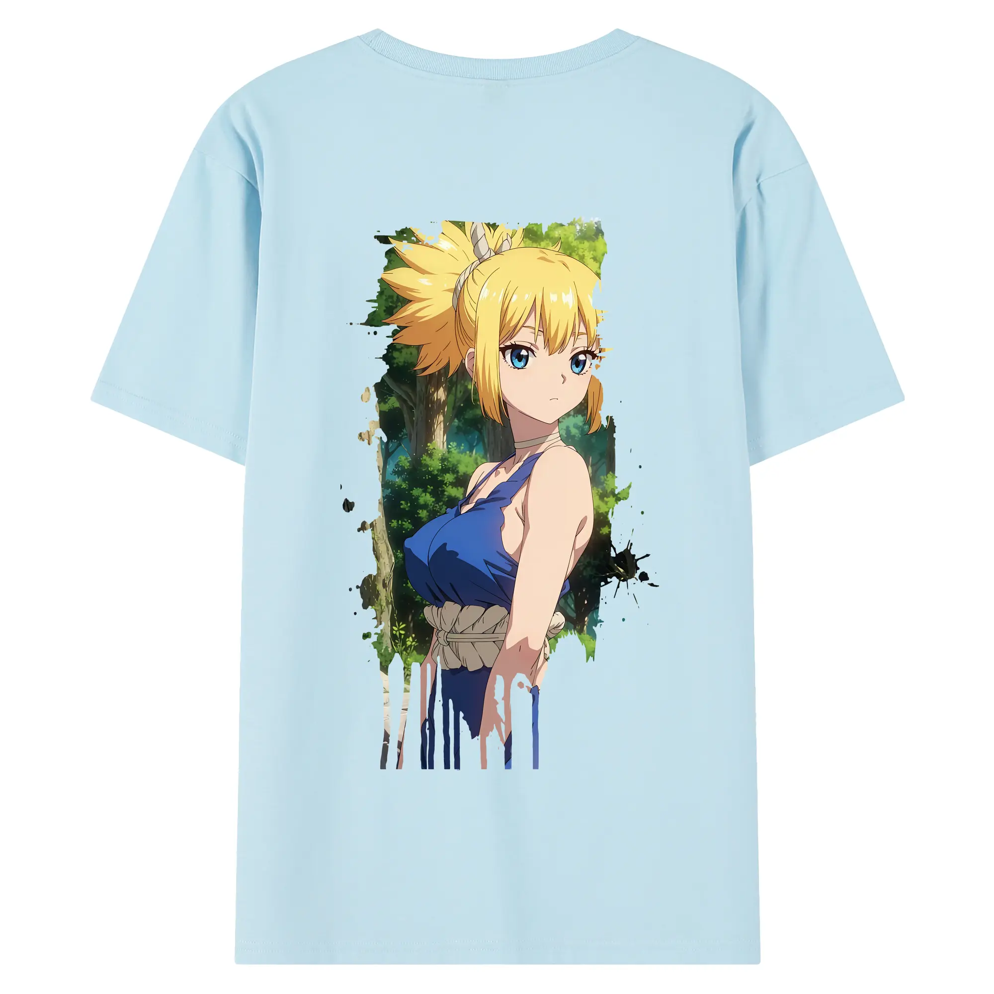 ドクターストーン グッズ,コハク - 綿100% ヴィンテージ風 半袖Tシャツ ・ 背面プリント ・ 柔らか肌触り ・ 通気性 快適 ・ スポーツ カジュアル 外出用