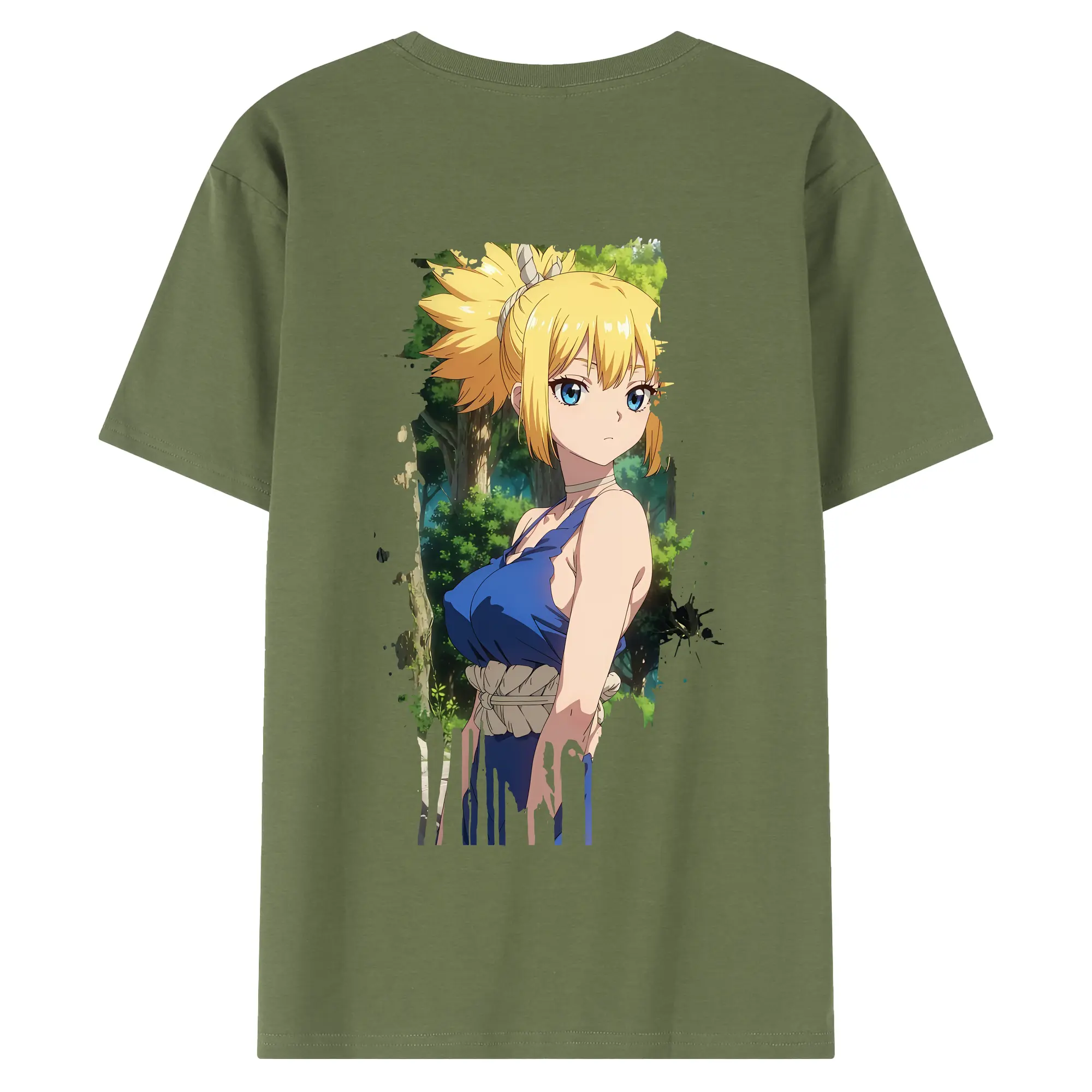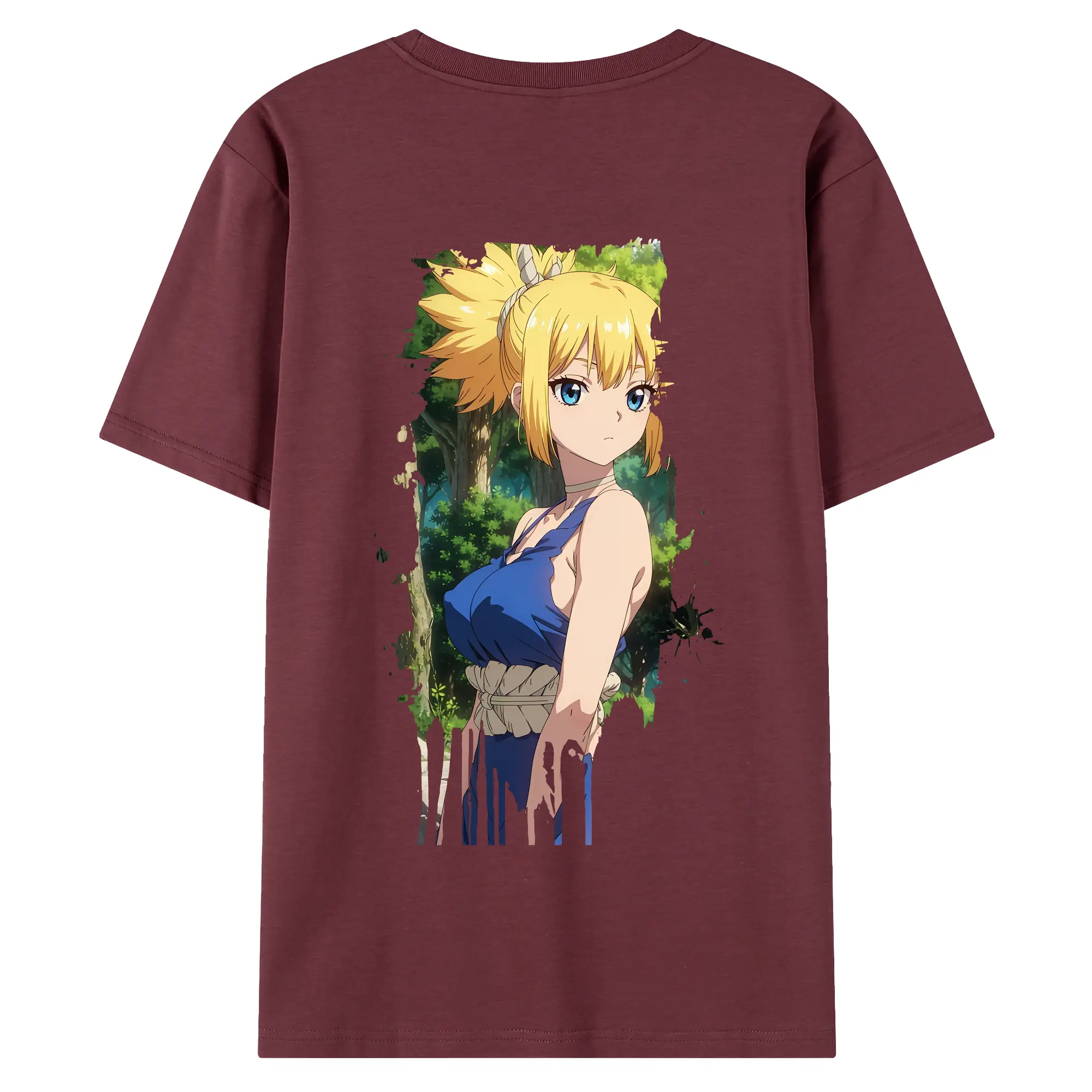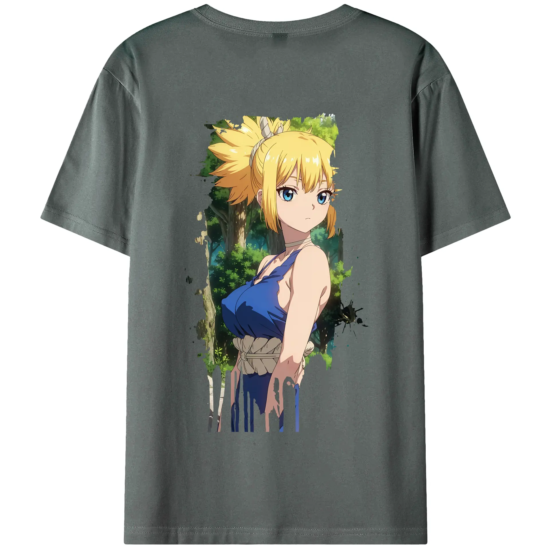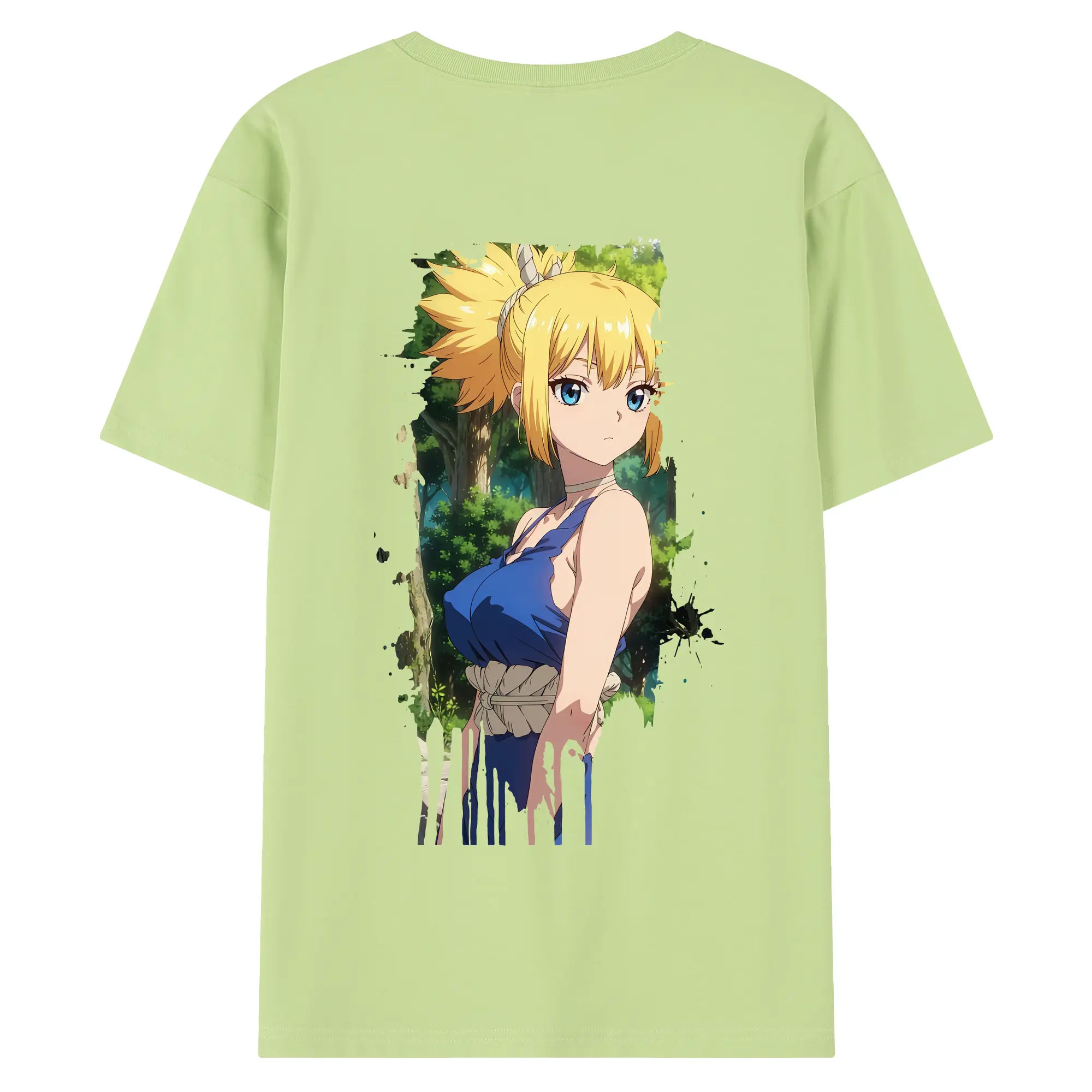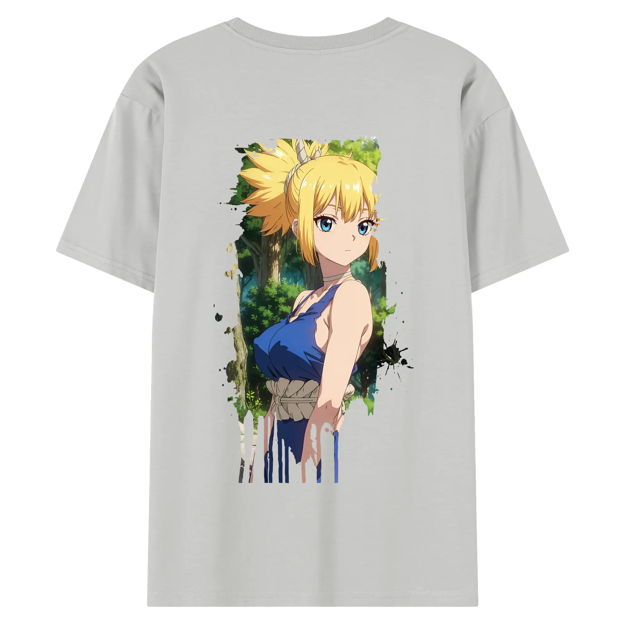 ドクターストーン グッズ,コハク - 綿100% ヴィンテージ風 半袖Tシャツ ・ 背面プリント ・ 柔らか肌触り ・ 通気性 快適 ・ スポーツ カジュアル 外出用
