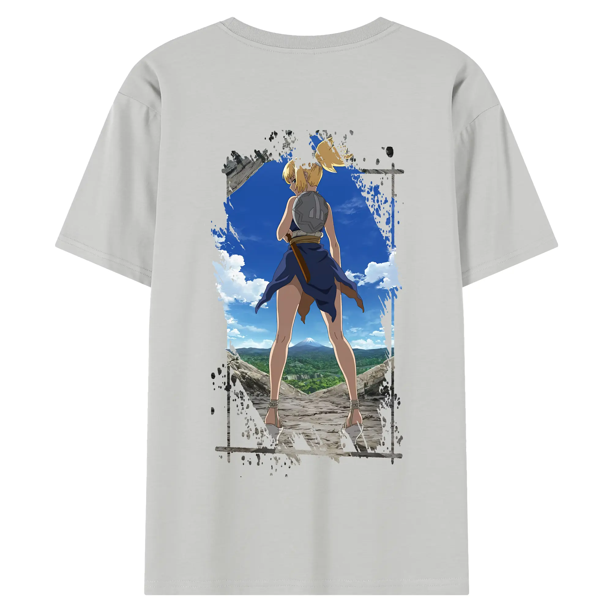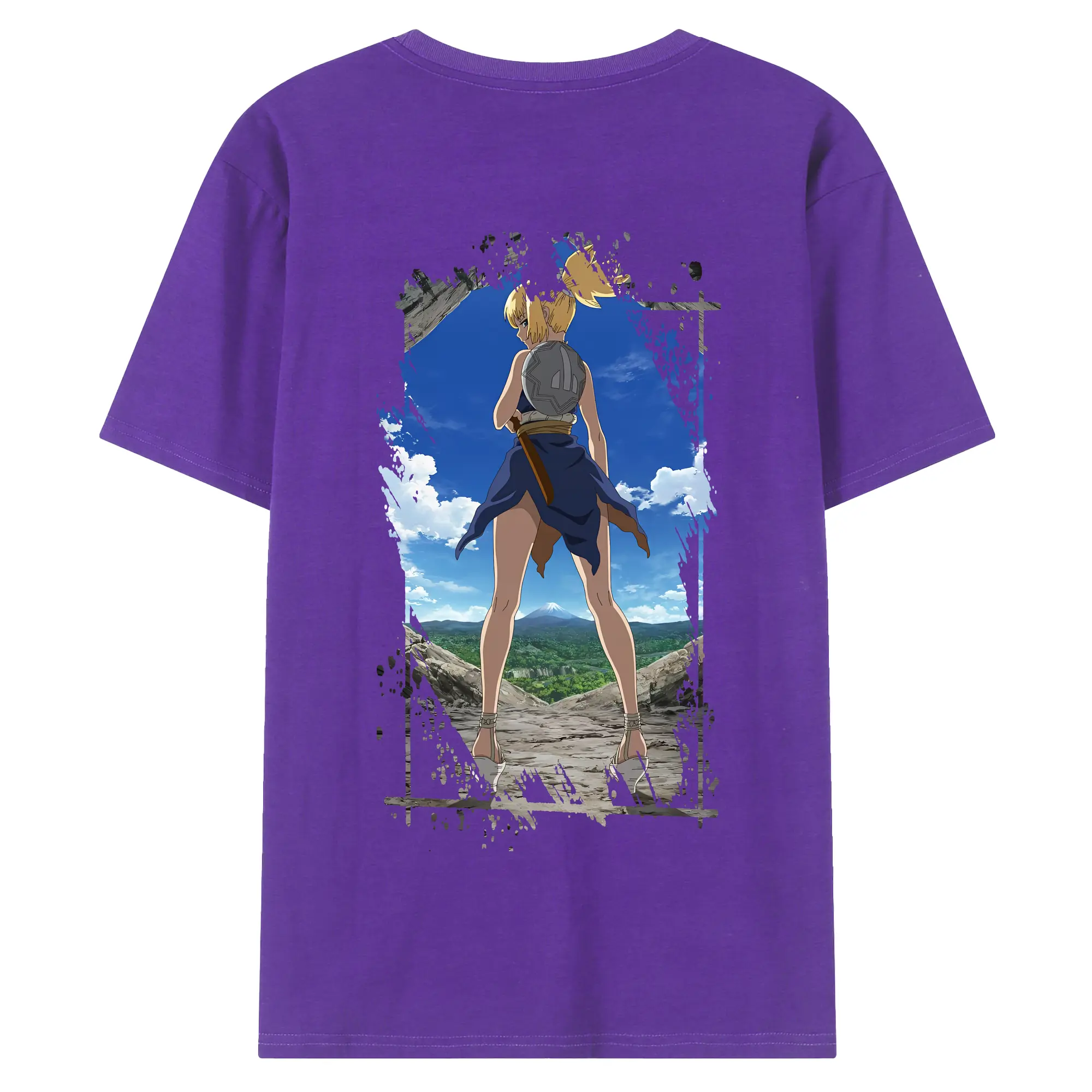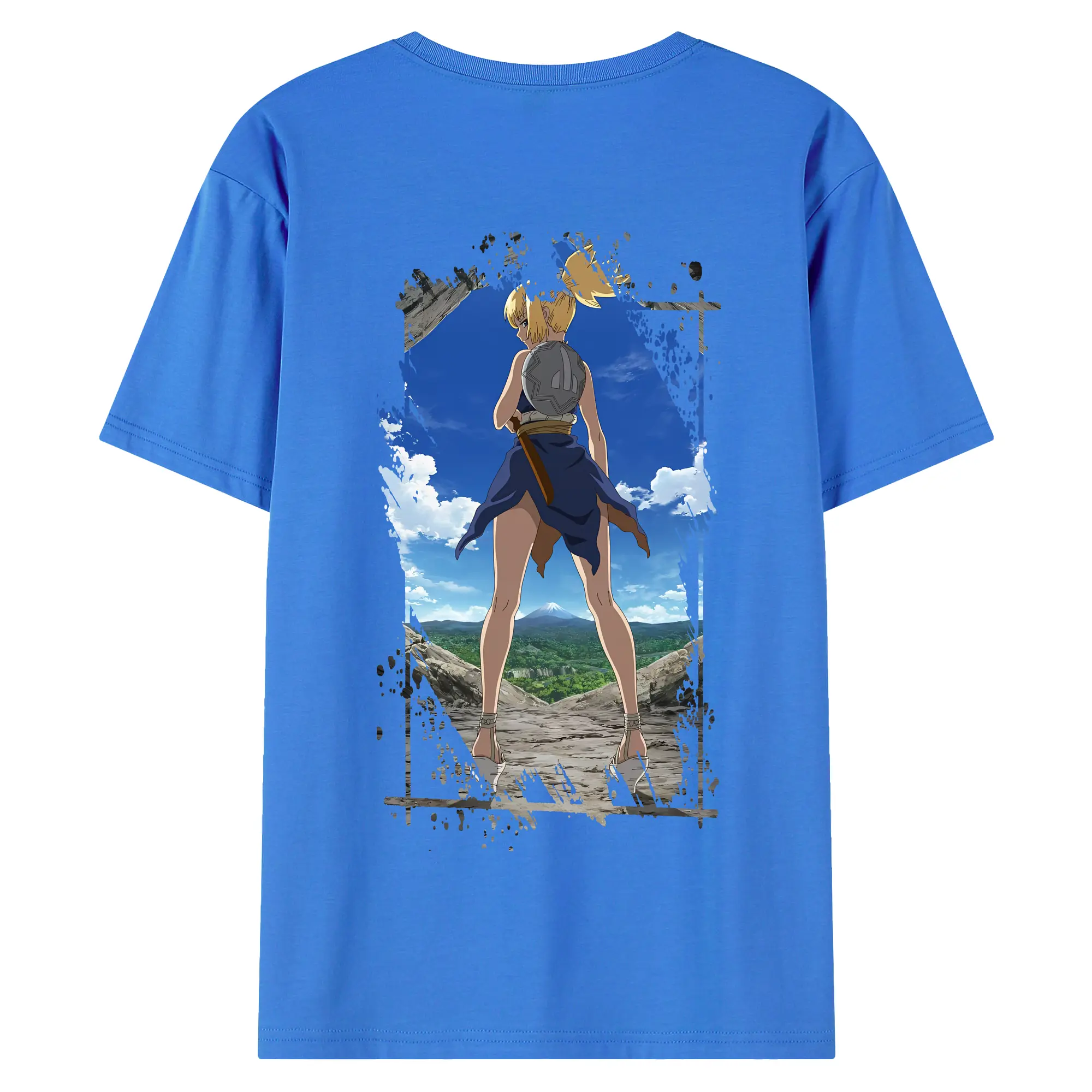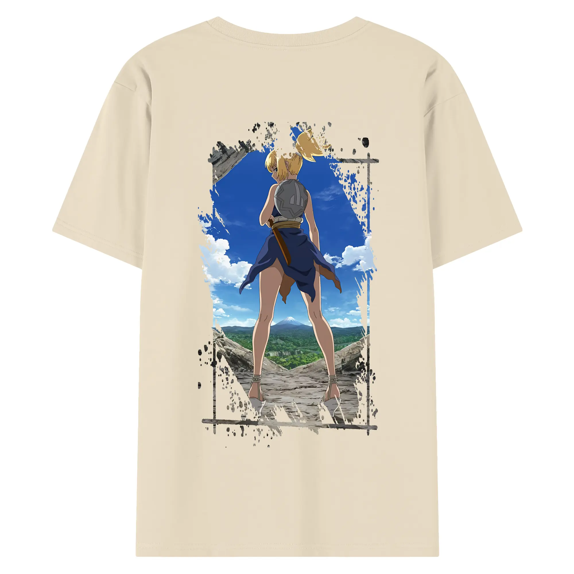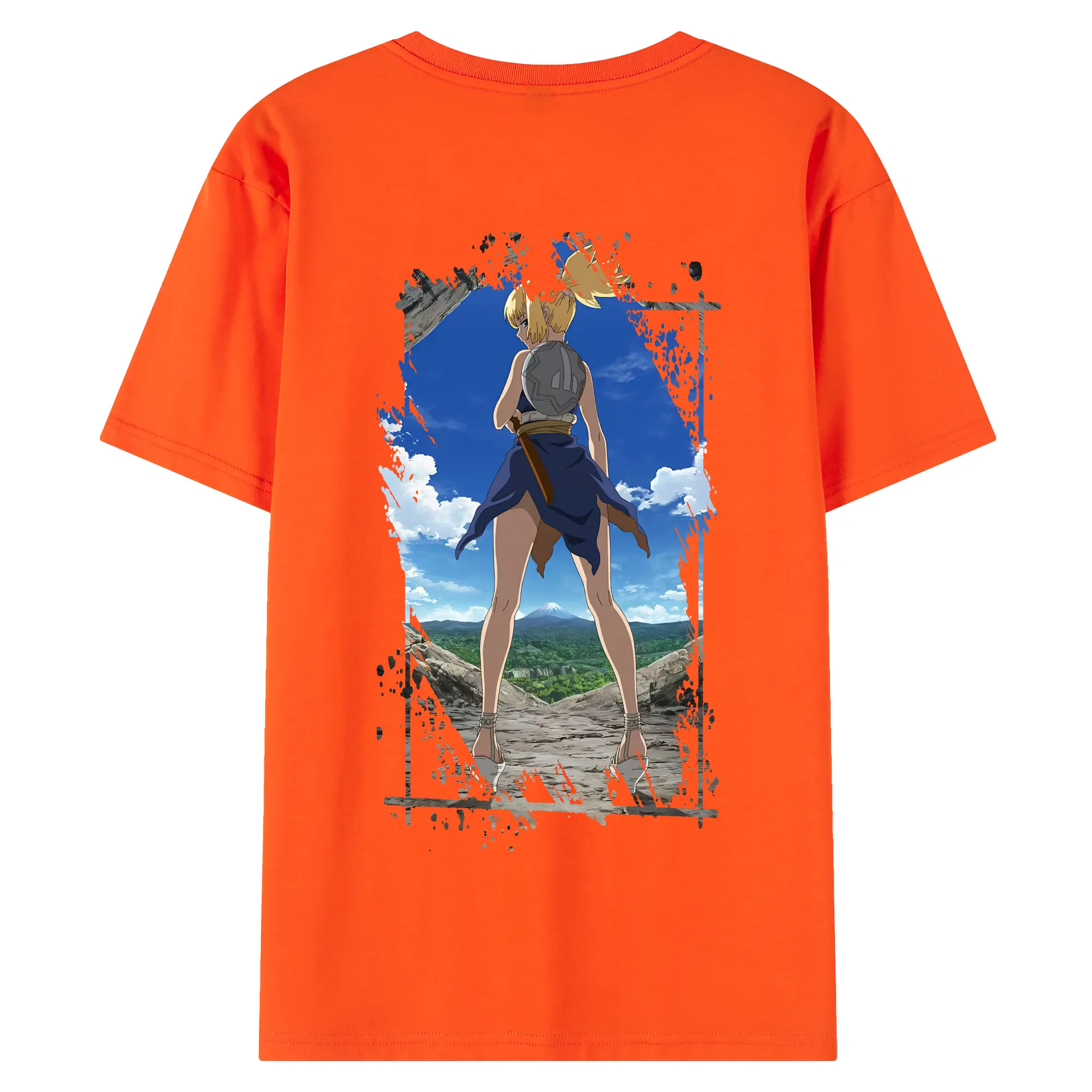 ドクターストーン グッズ,コハク - 綿100% ヴィンテージ風 半袖Tシャツ ・ 背面プリント ・ 柔らか肌触り ・ 通気性 快適 ・ スポーツ カジュアル 外出用