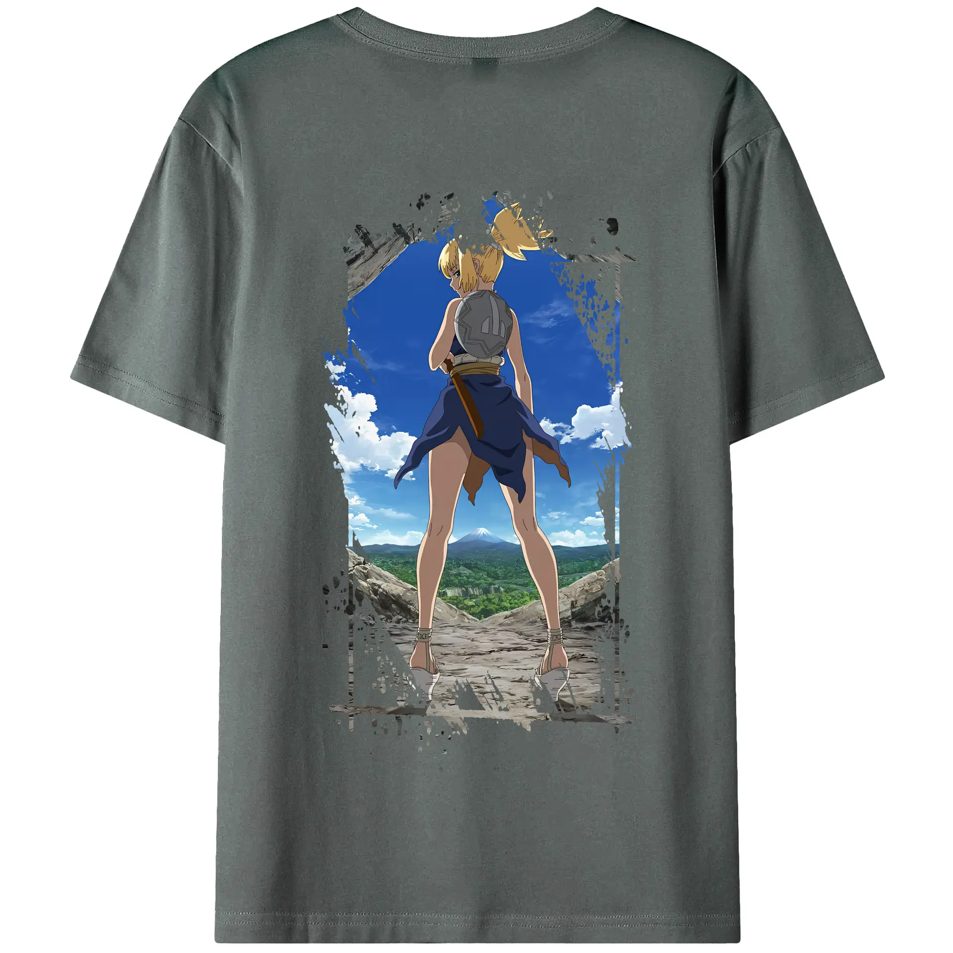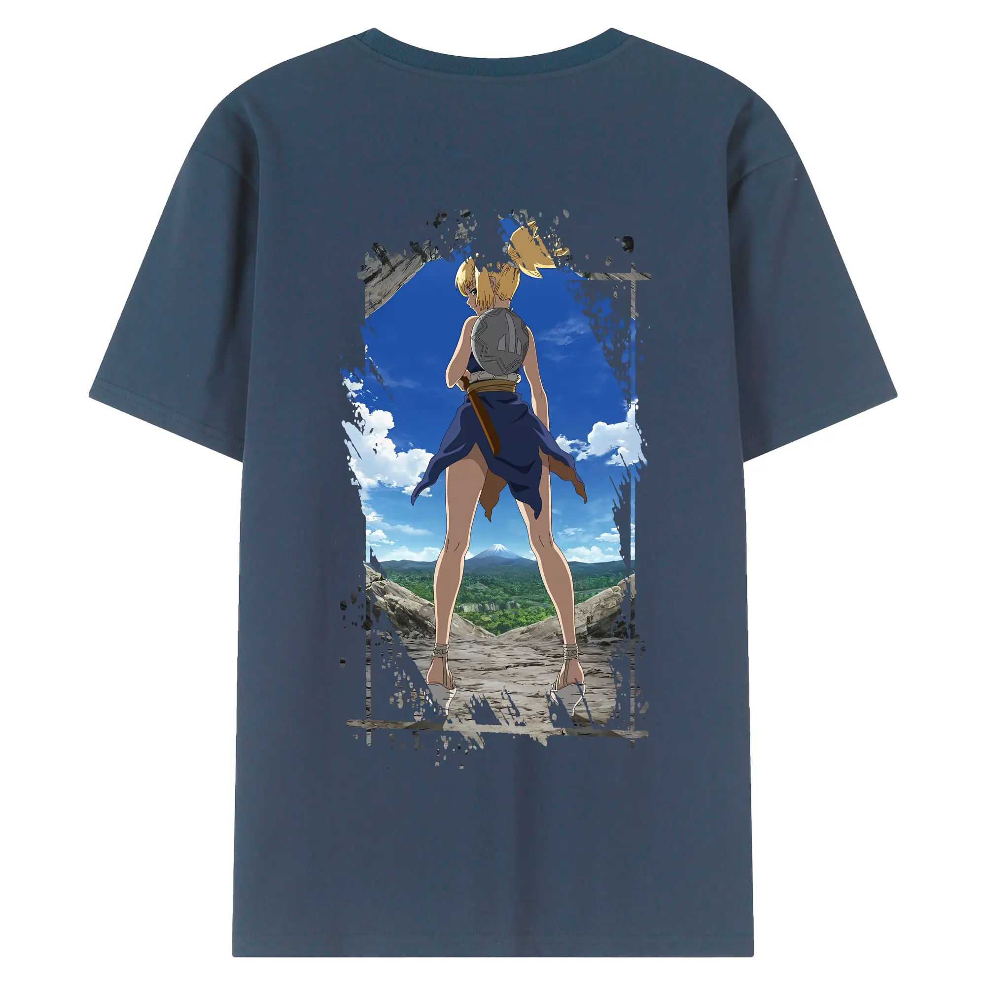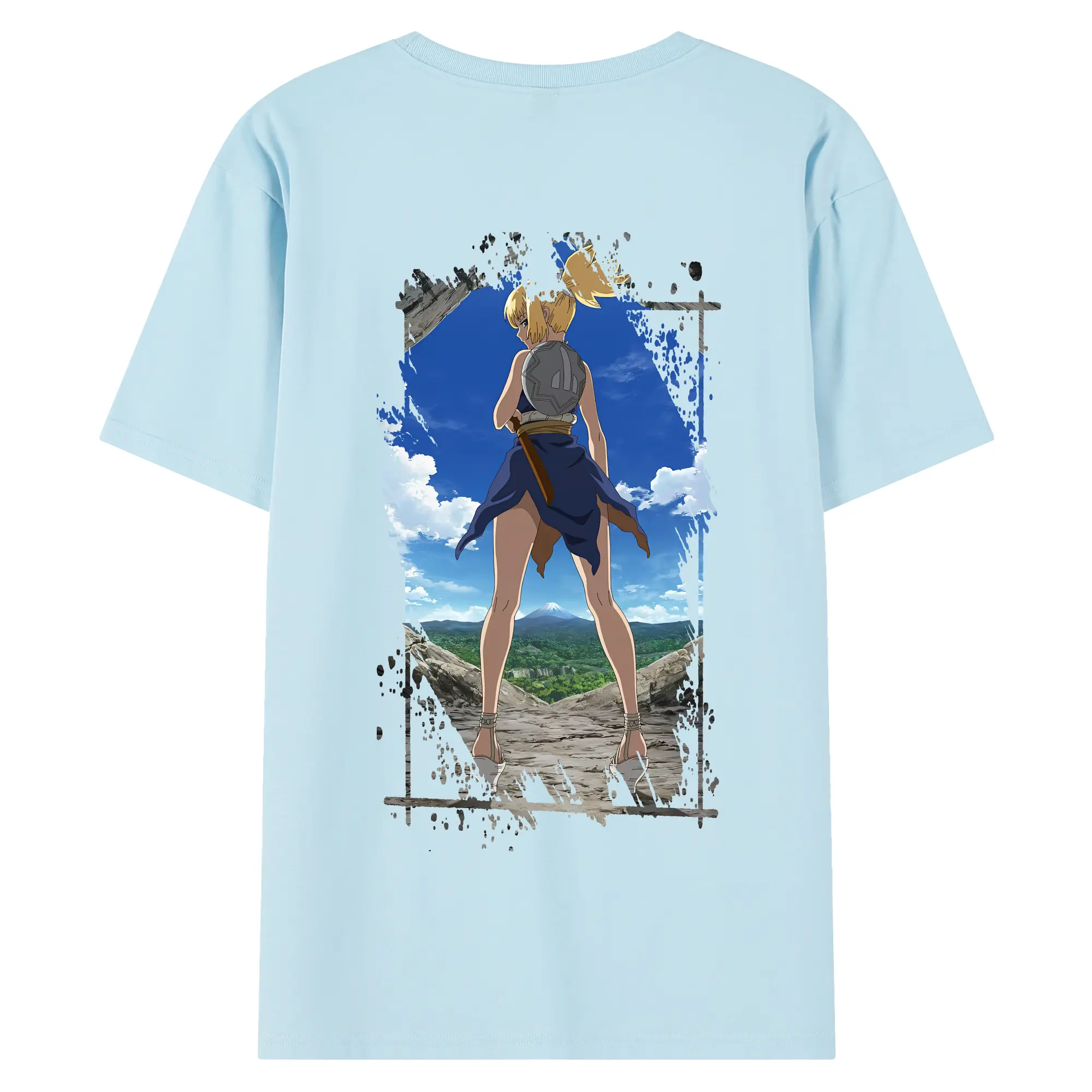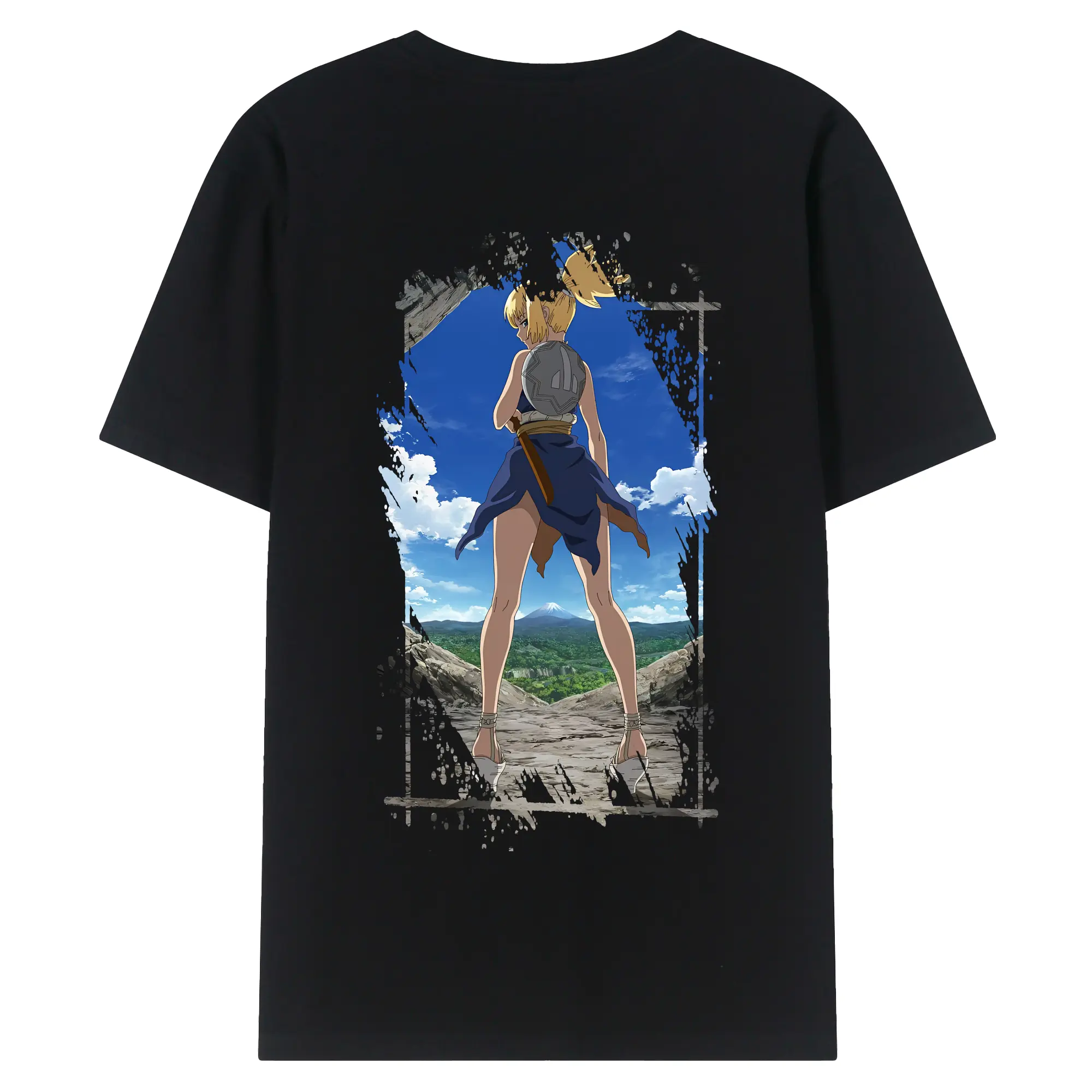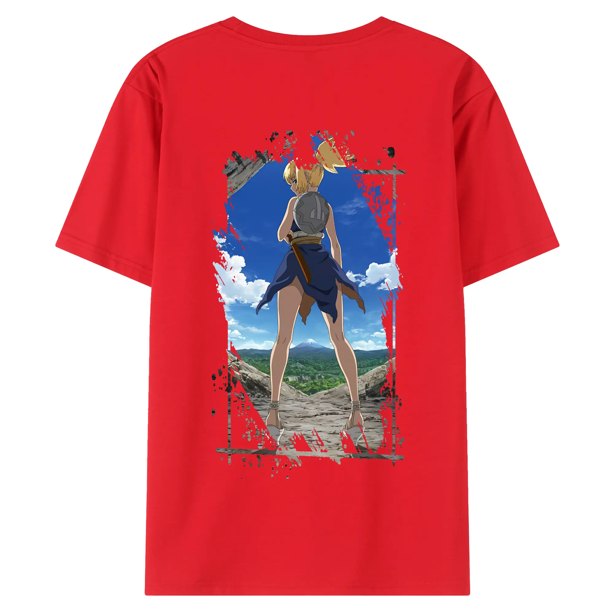 ドクターストーン グッズ,コハク - 綿100% ヴィンテージ風 半袖Tシャツ ・ 背面プリント ・ 柔らか肌触り ・ 通気性 快適 ・ スポーツ カジュアル 外出用
