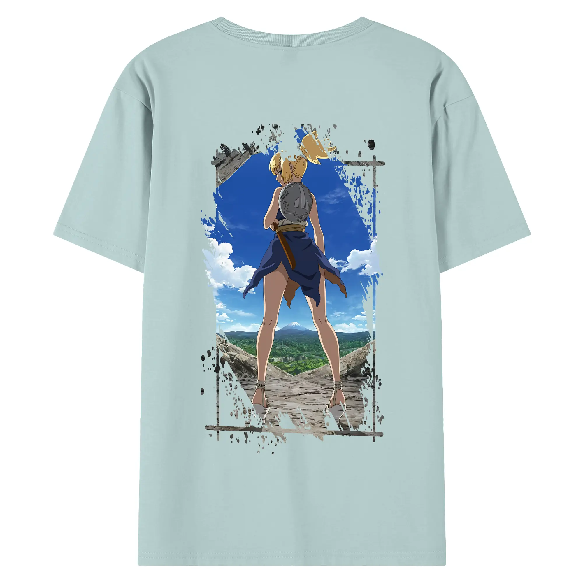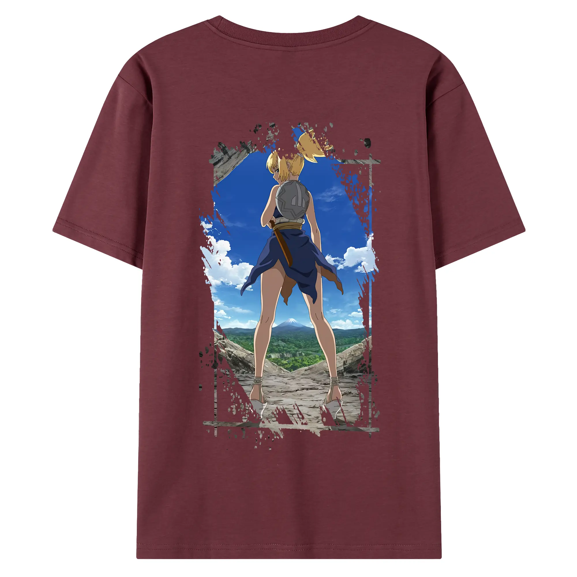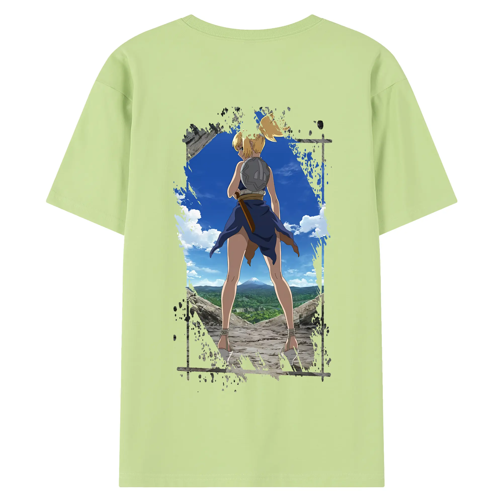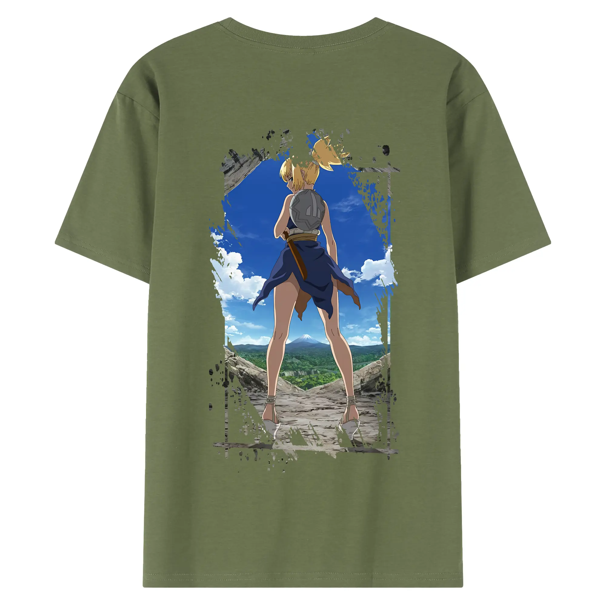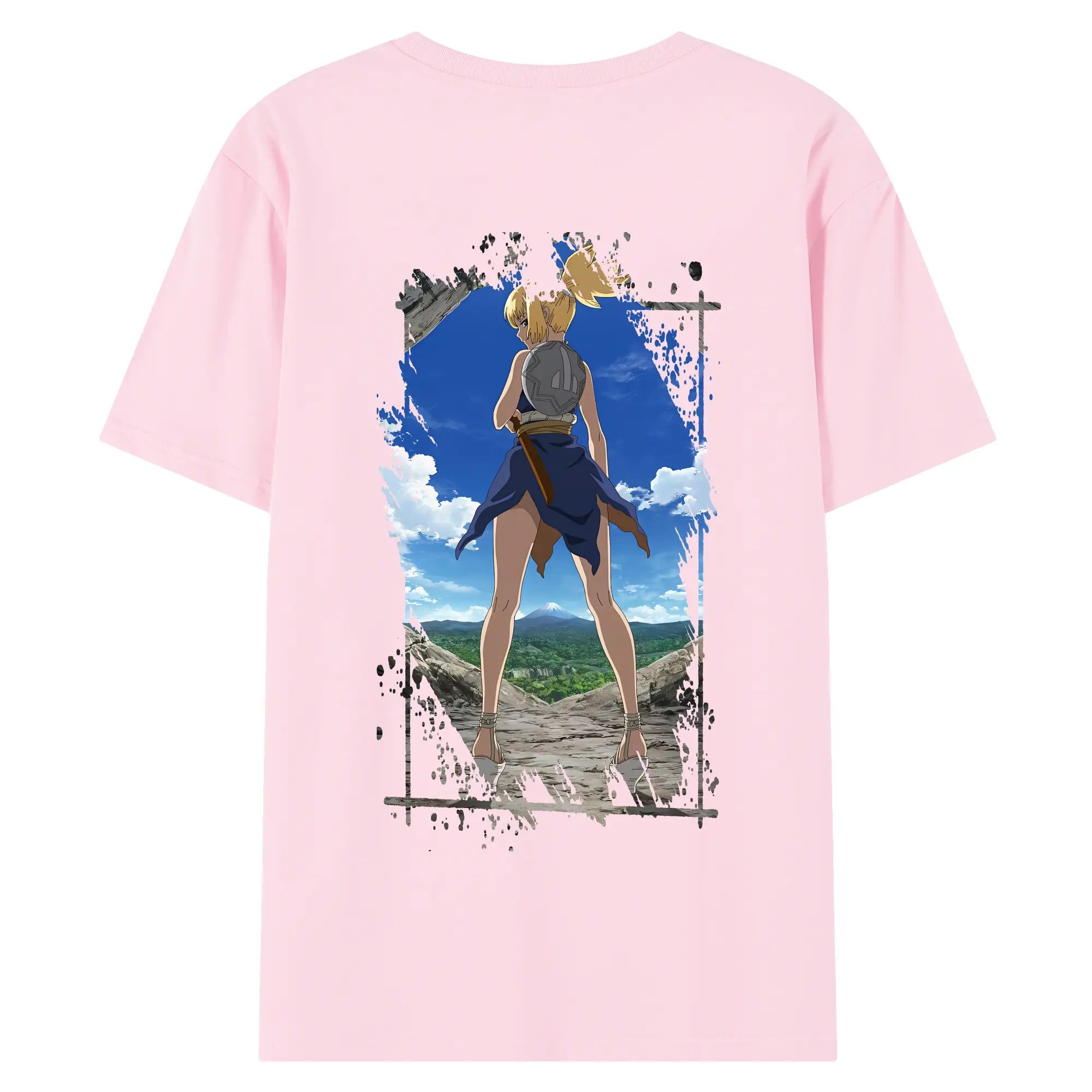 ドクターストーン グッズ,コハク - 綿100% ヴィンテージ風 半袖Tシャツ ・ 背面プリント ・ 柔らか肌触り ・ 通気性 快適 ・ スポーツ カジュアル 外出用