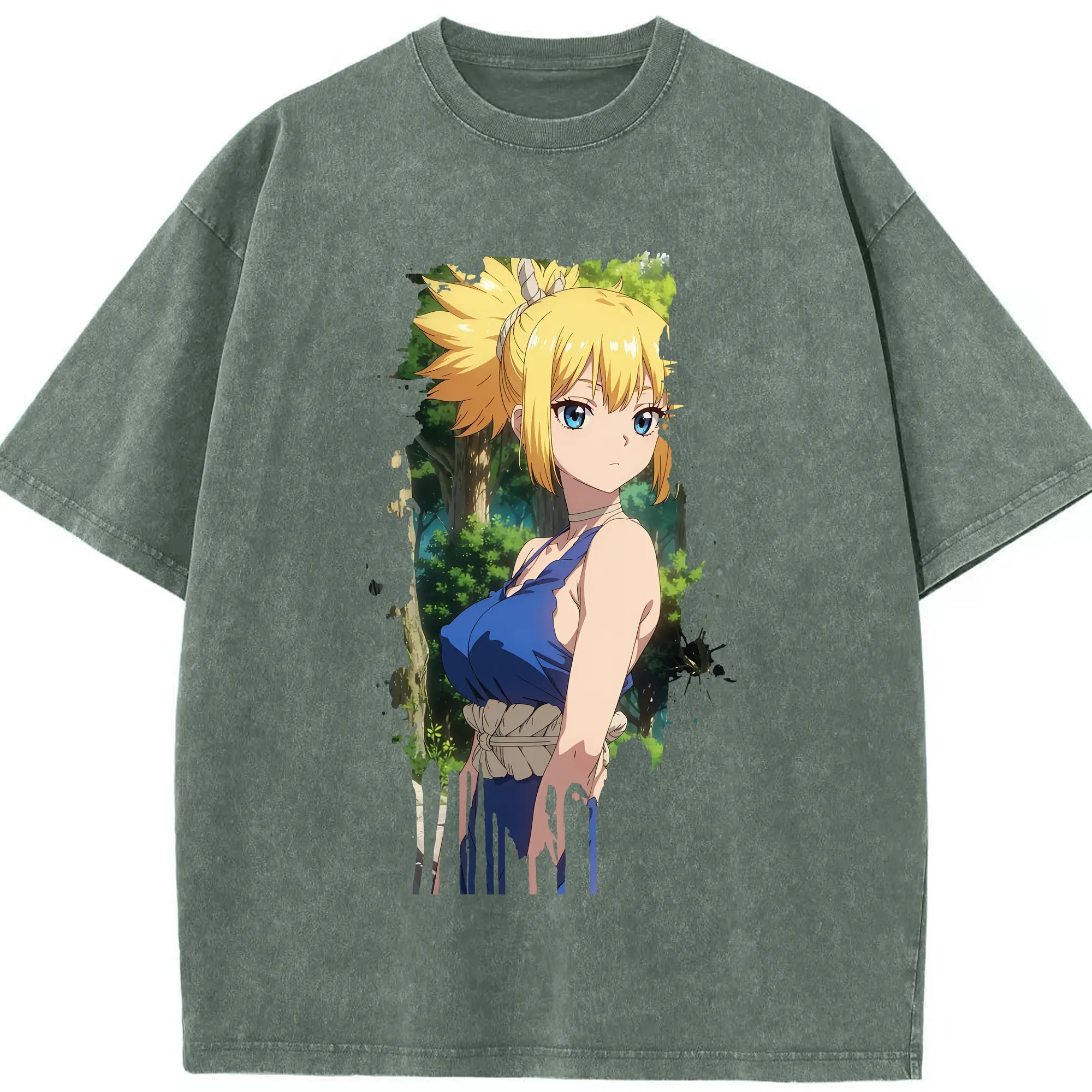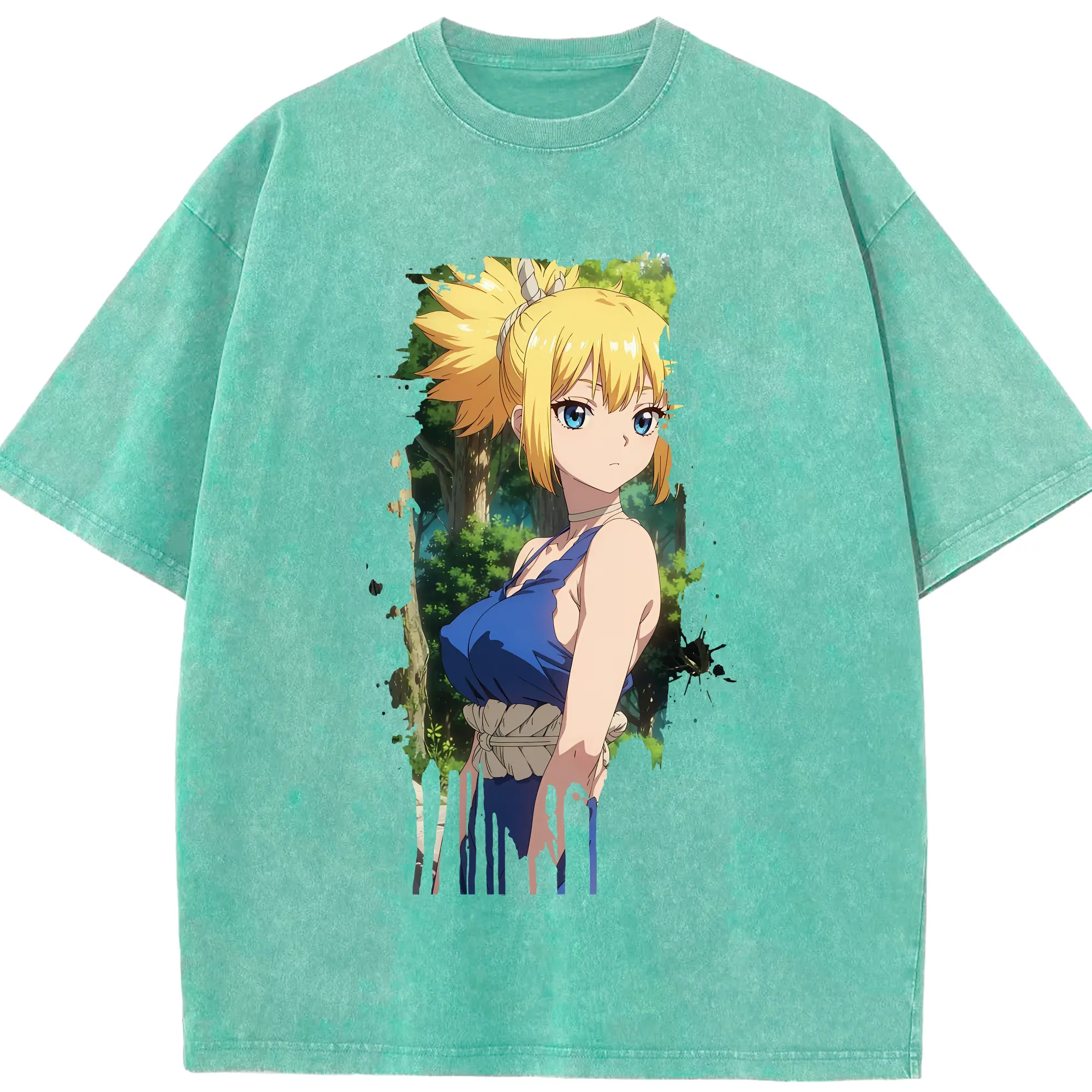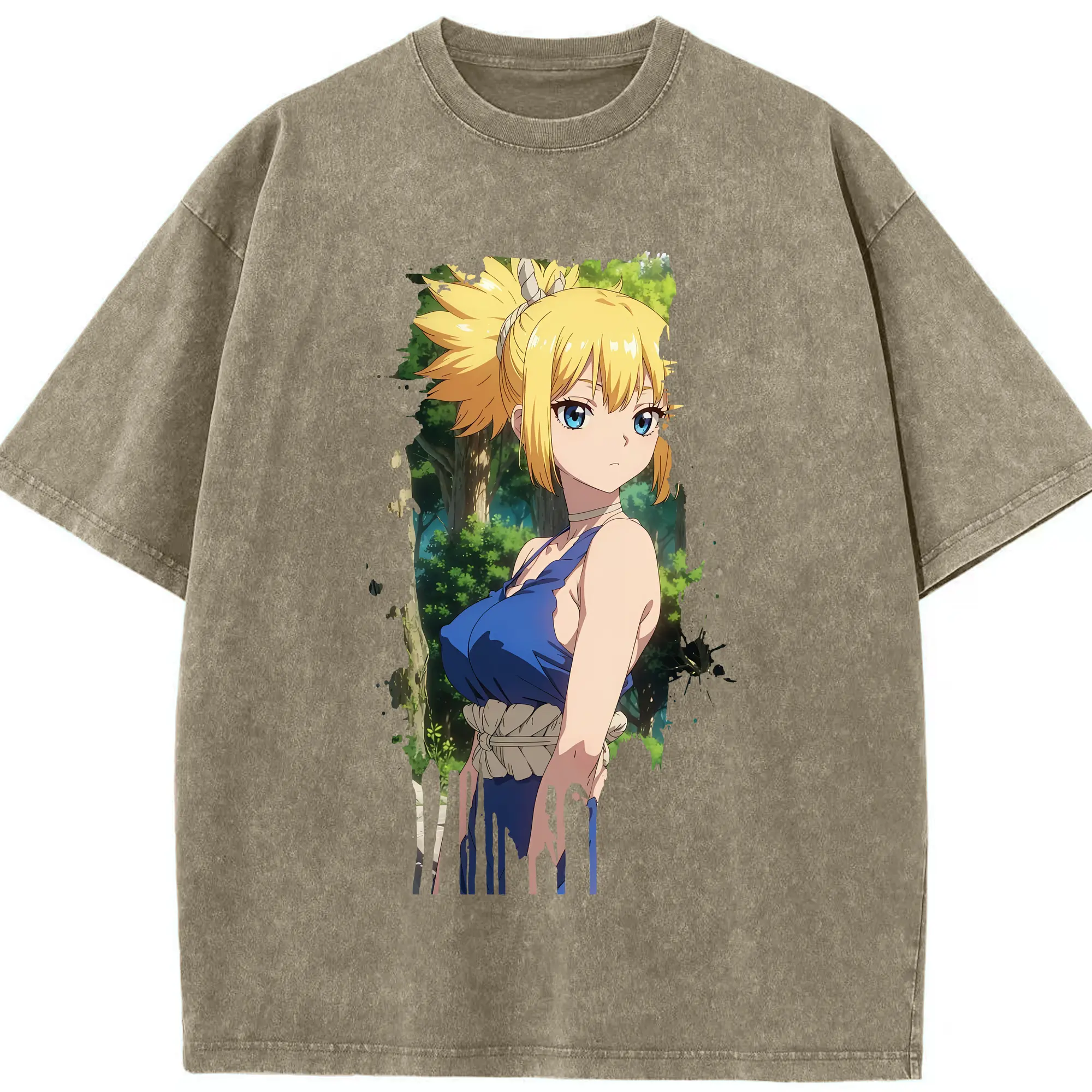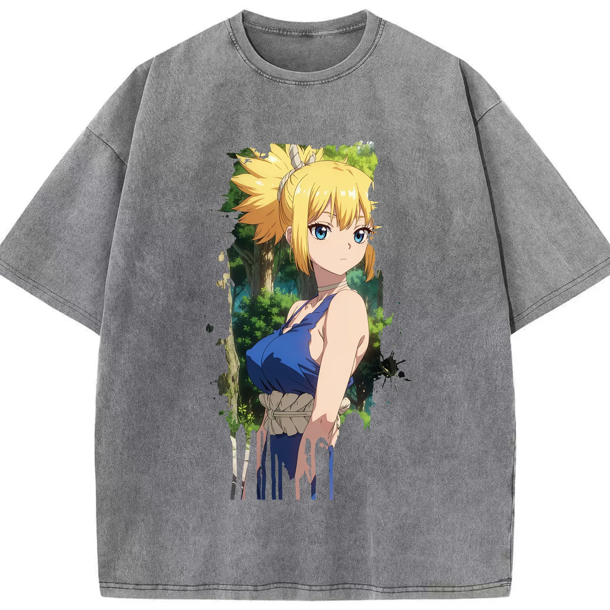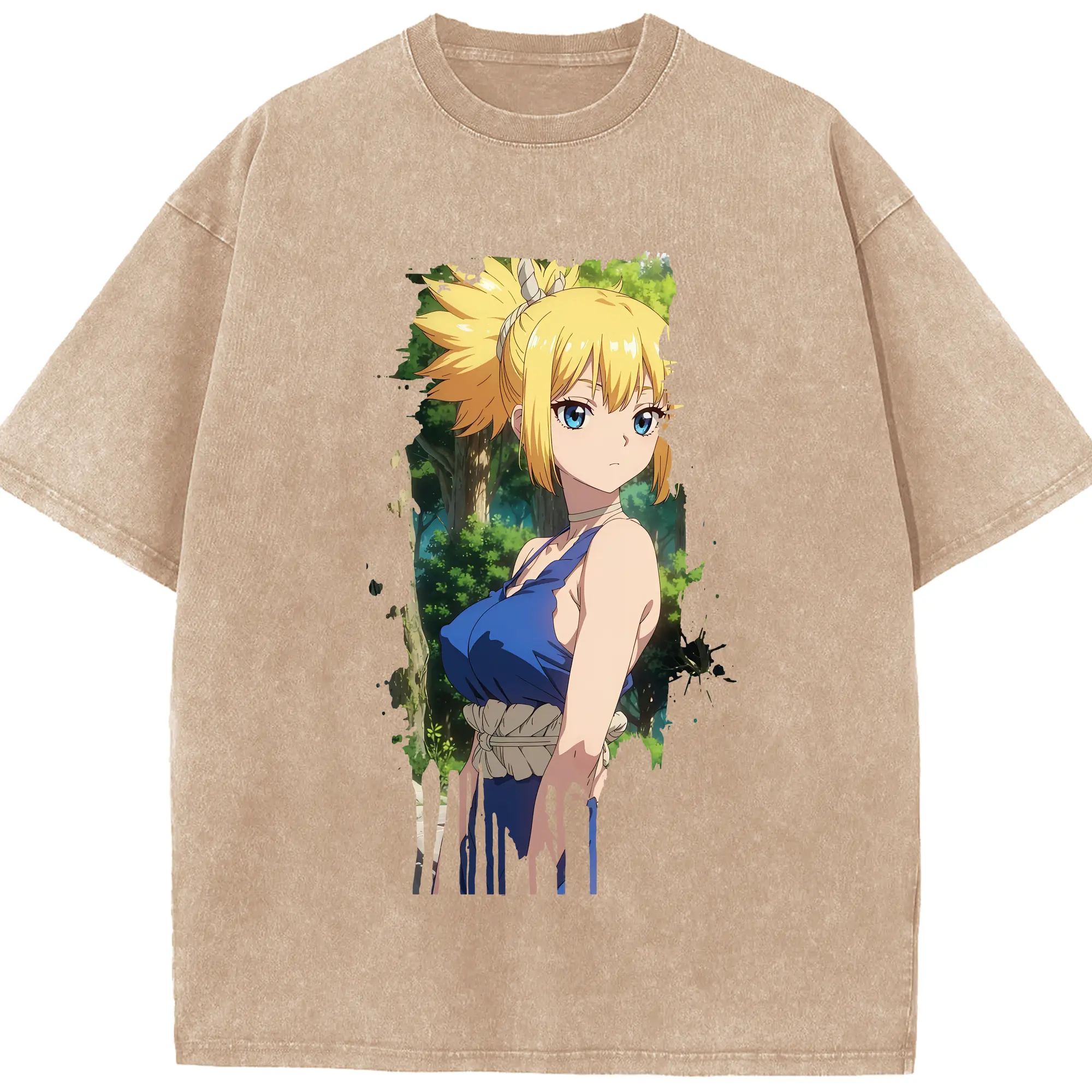 ドクターストーン グッズ,コハク - 綿100% ヴィンテージ風 半袖Tシャツ ・ 背面プリント ・ 柔らか肌触り ・ 通気性 快適 ・ スポーツ カジュアル 外出用