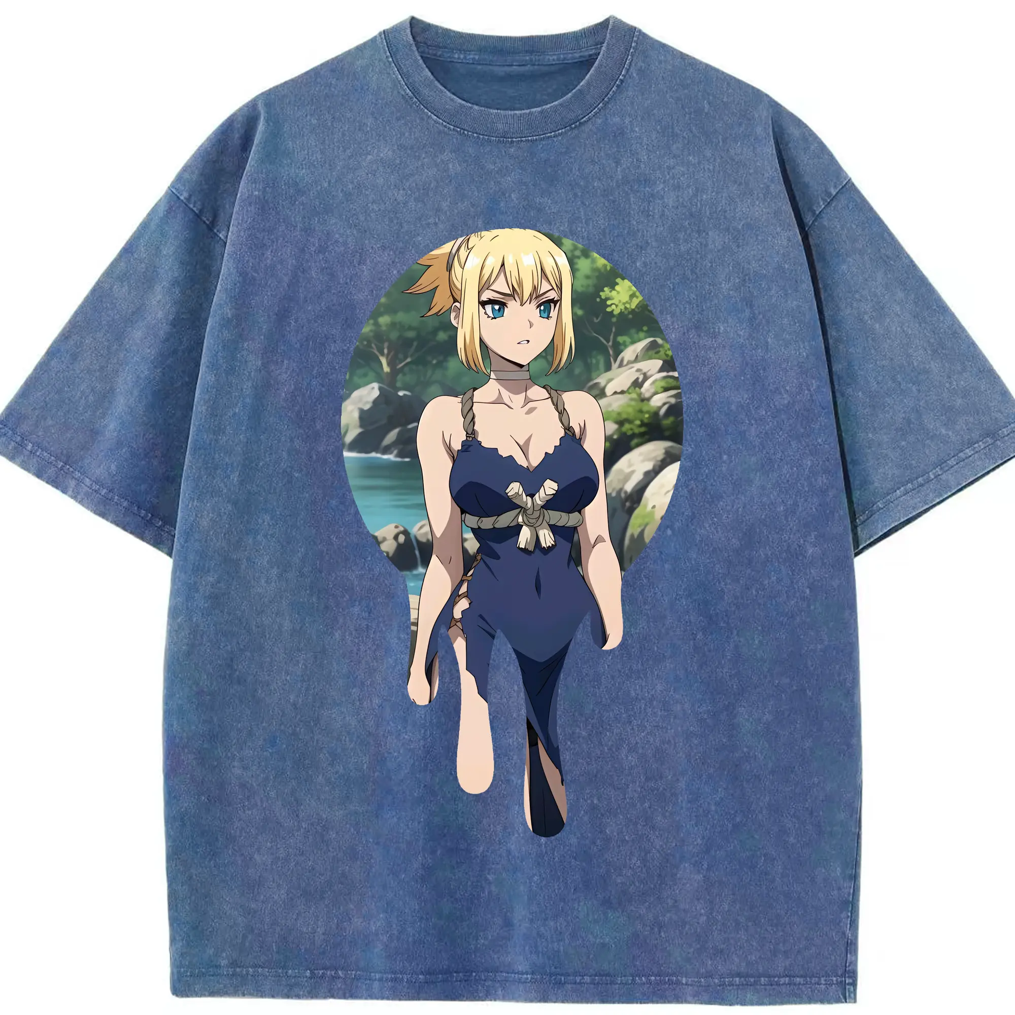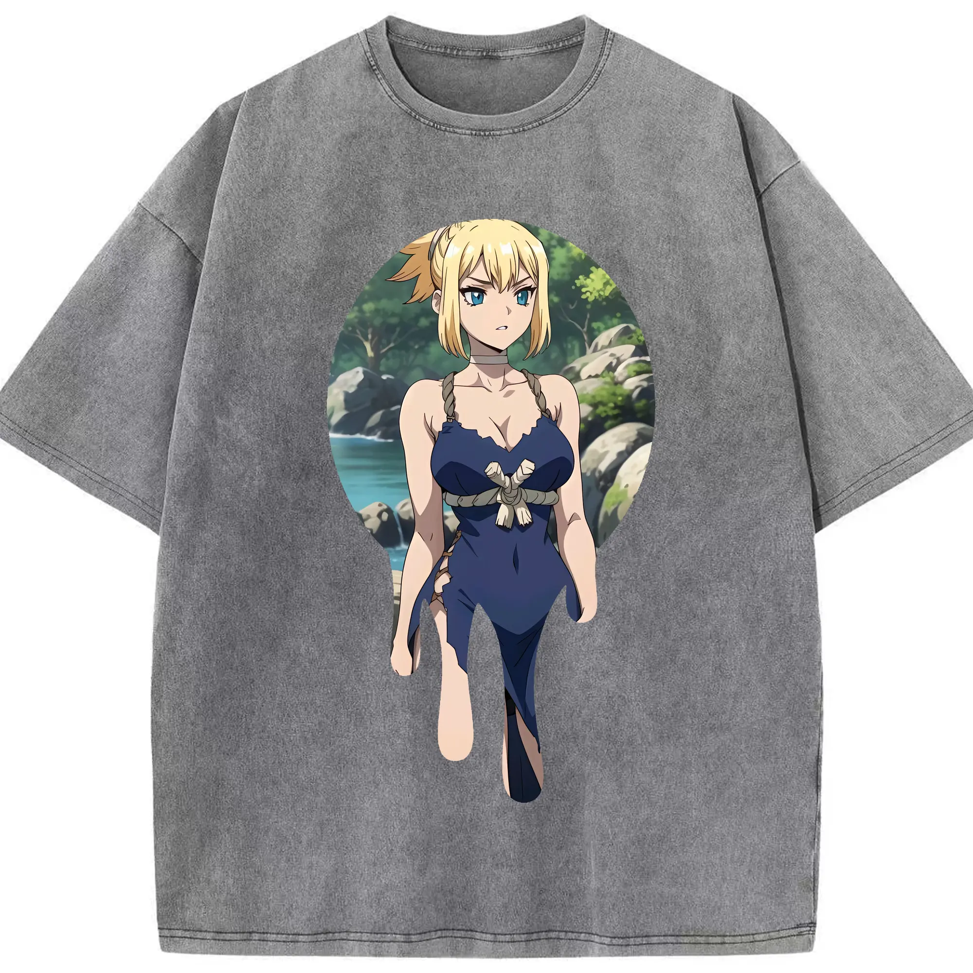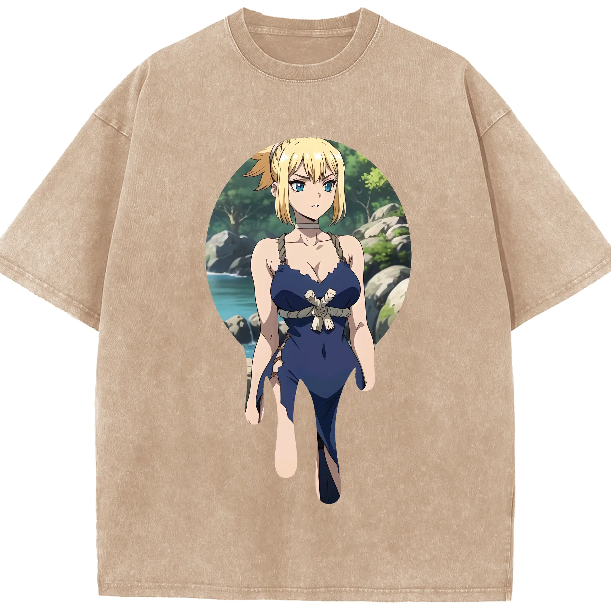 ドクターストーン グッズ,コハク - 綿100% ヴィンテージ風 半袖Tシャツ ・ 背面プリント ・ 柔らか肌触り ・ 通気性 快適 ・ スポーツ カジュアル 外出用