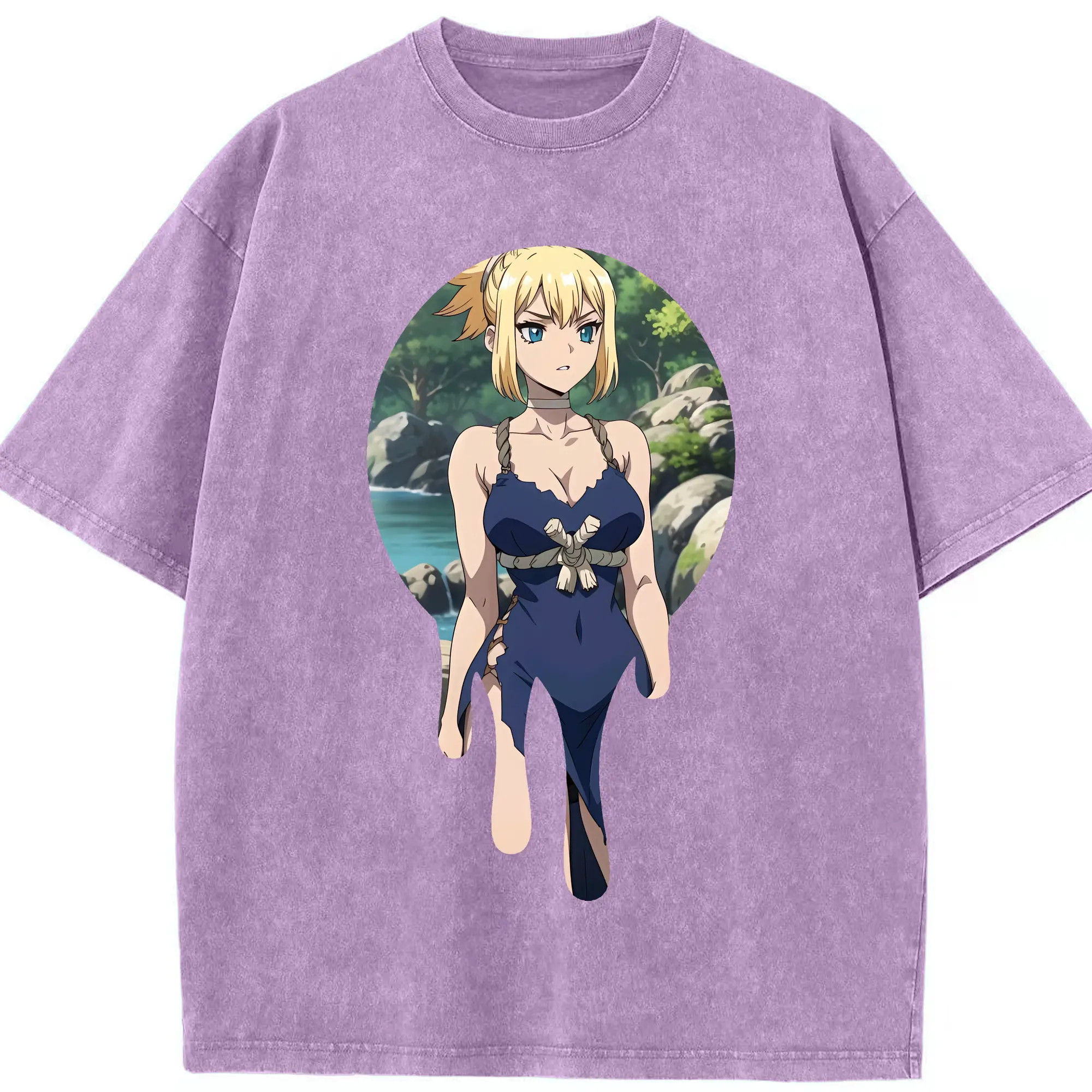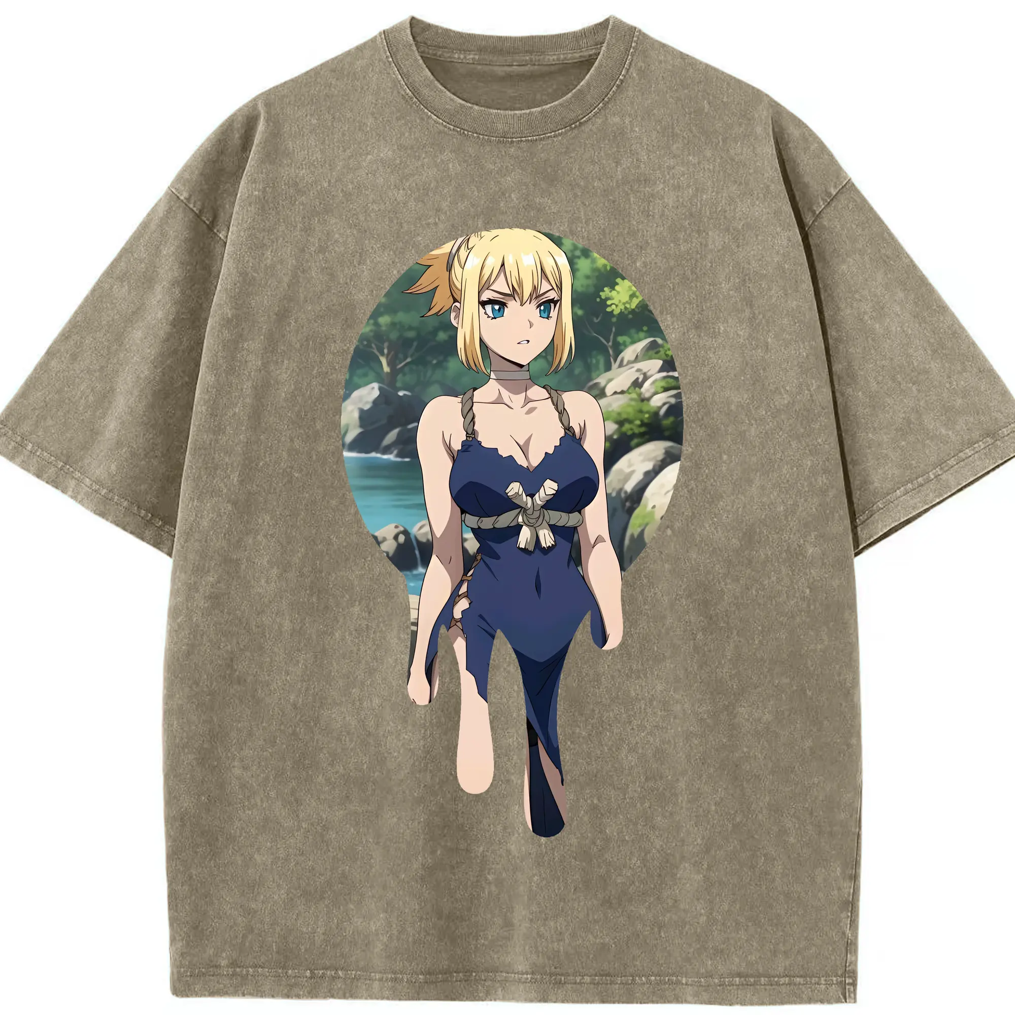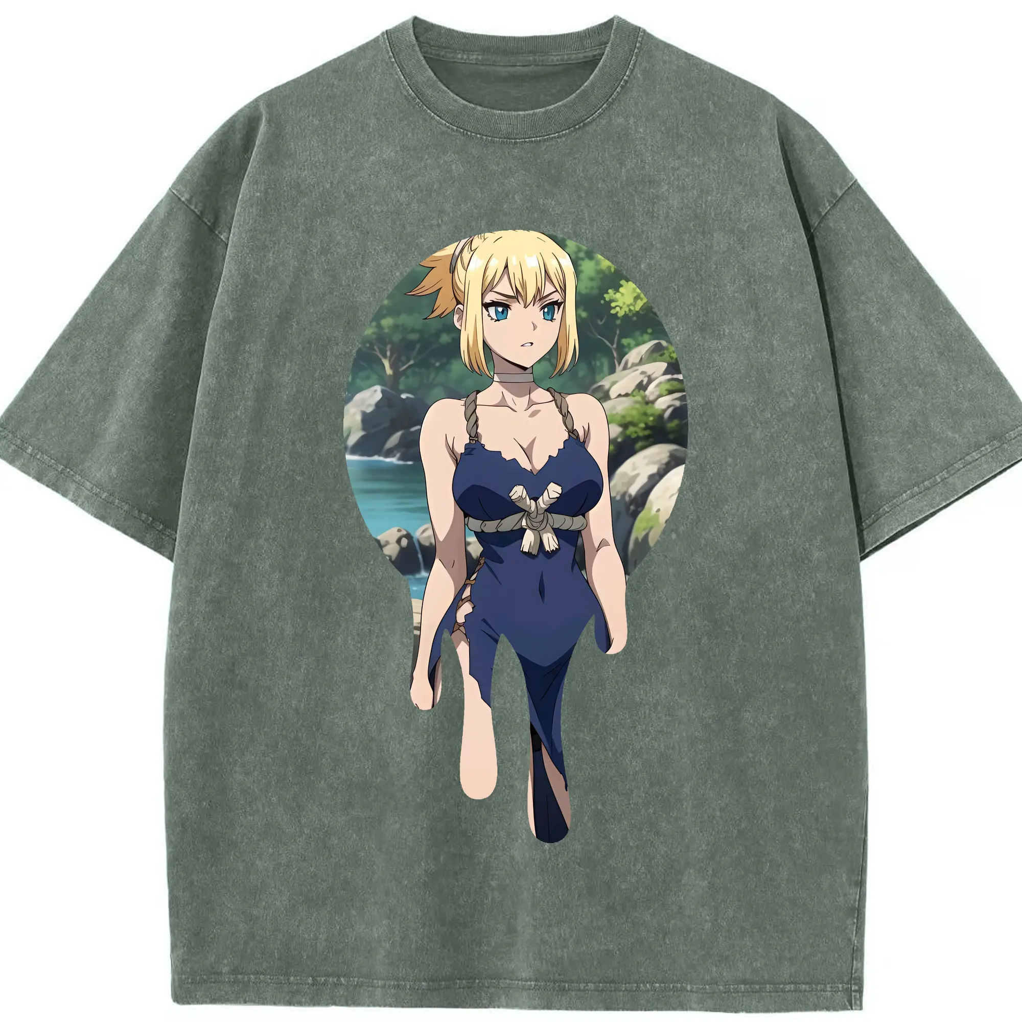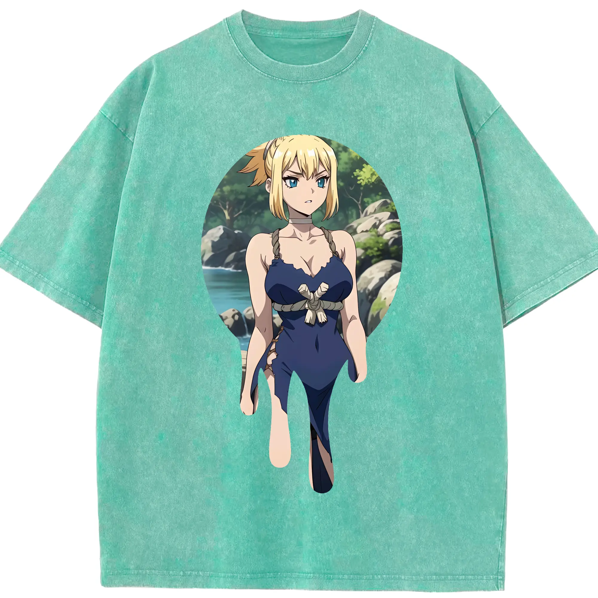 ドクターストーン グッズ,コハク - 綿100% ヴィンテージ風 半袖Tシャツ ・ 背面プリント ・ 柔らか肌触り ・ 通気性 快適 ・ スポーツ カジュアル 外出用