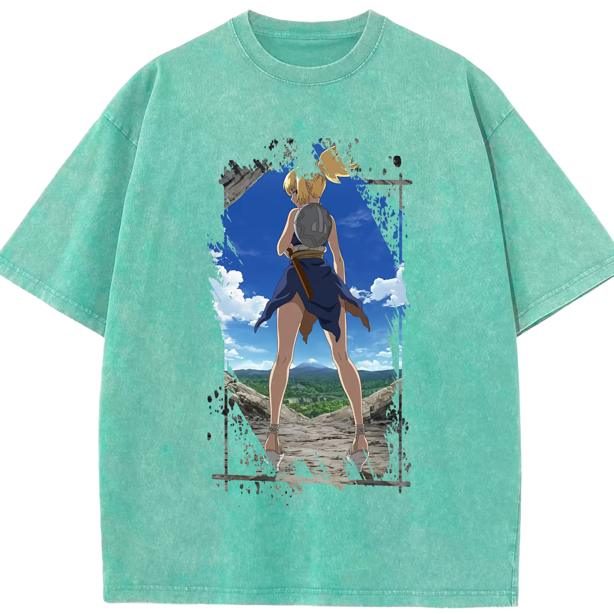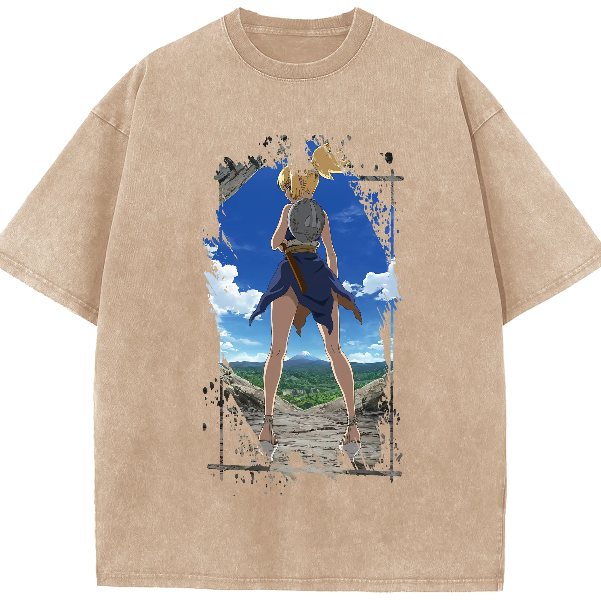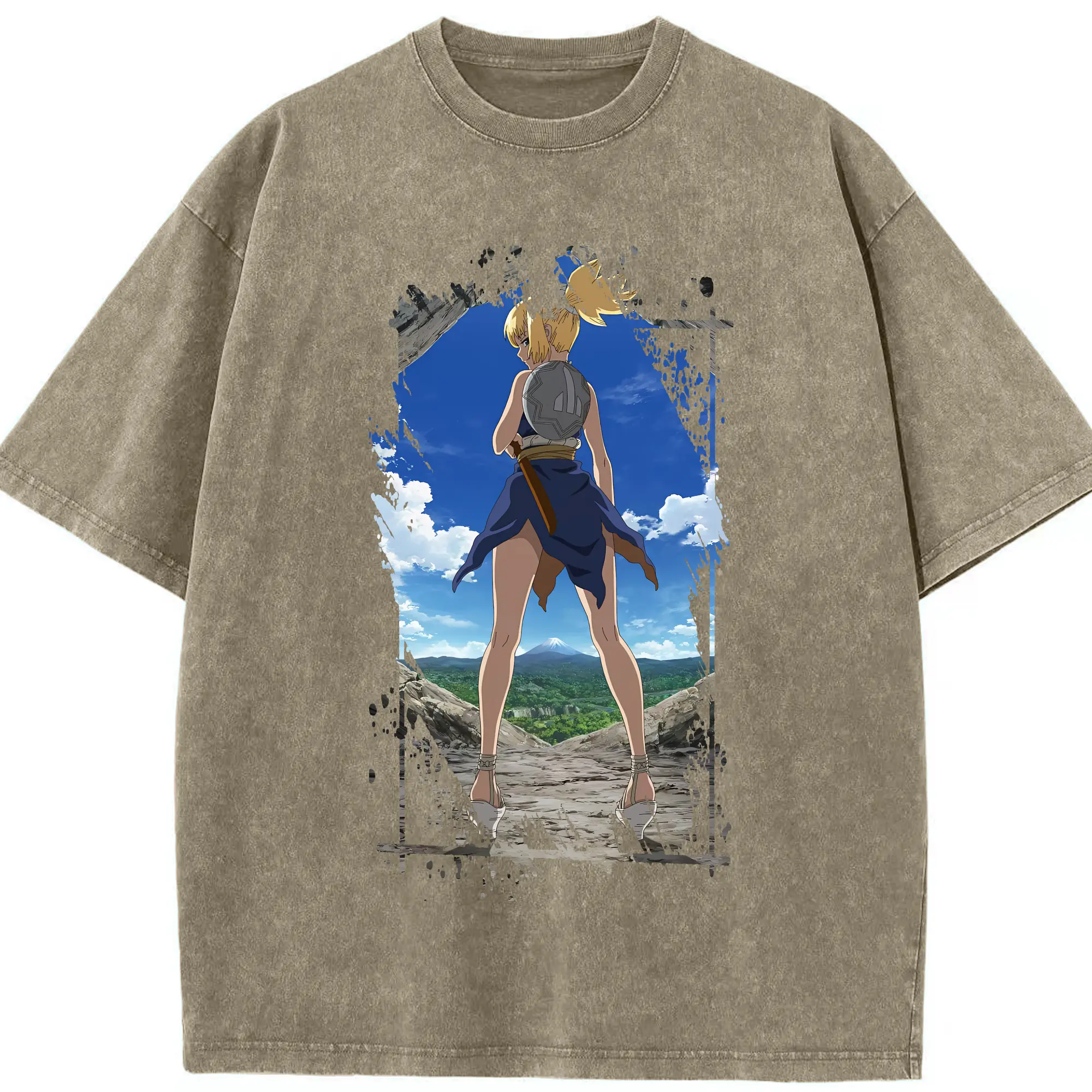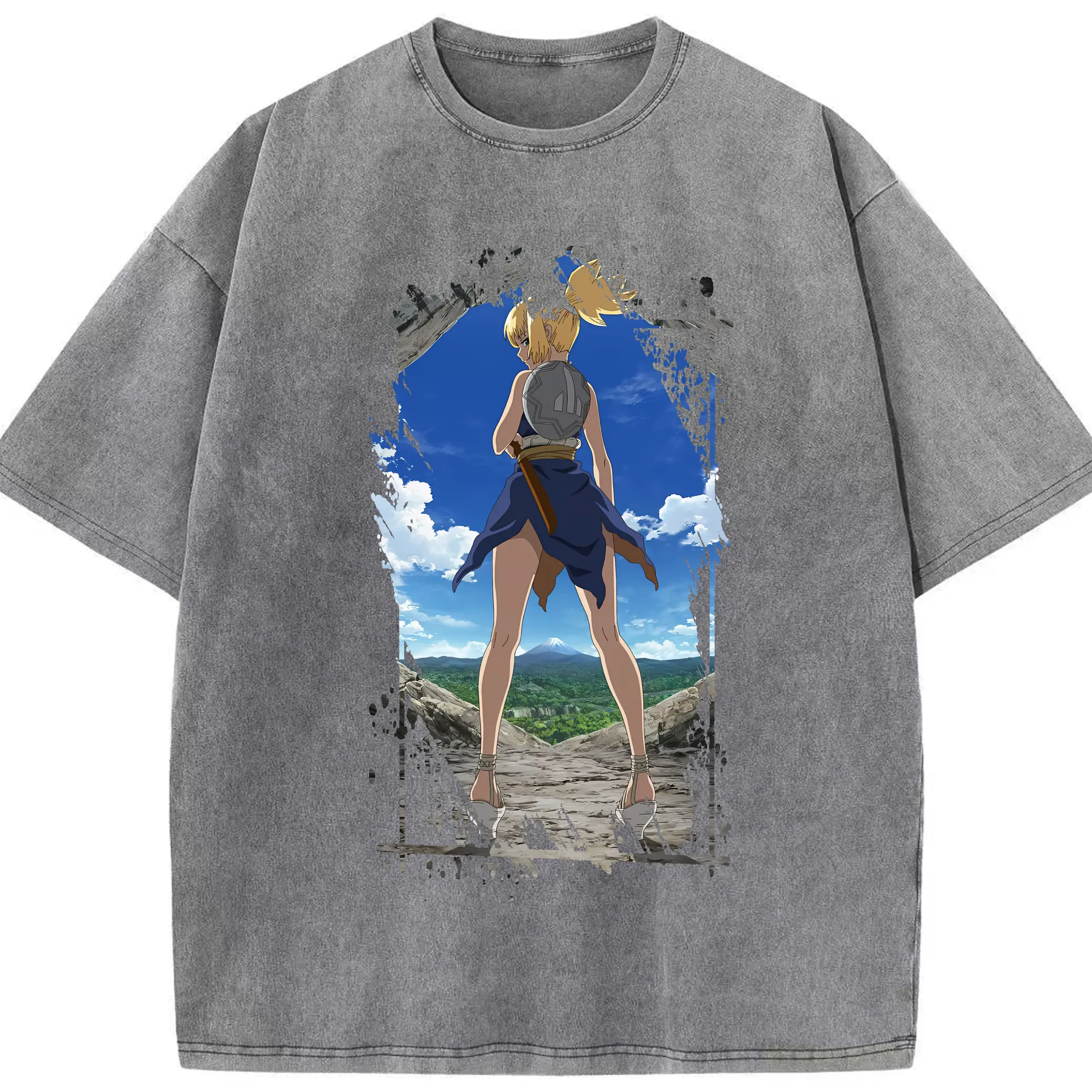 ドクターストーン グッズ,コハク - 綿100% ヴィンテージ風 半袖Tシャツ ・ 背面プリント ・ 柔らか肌触り ・ 通気性 快適 ・ スポーツ カジュアル 外出用