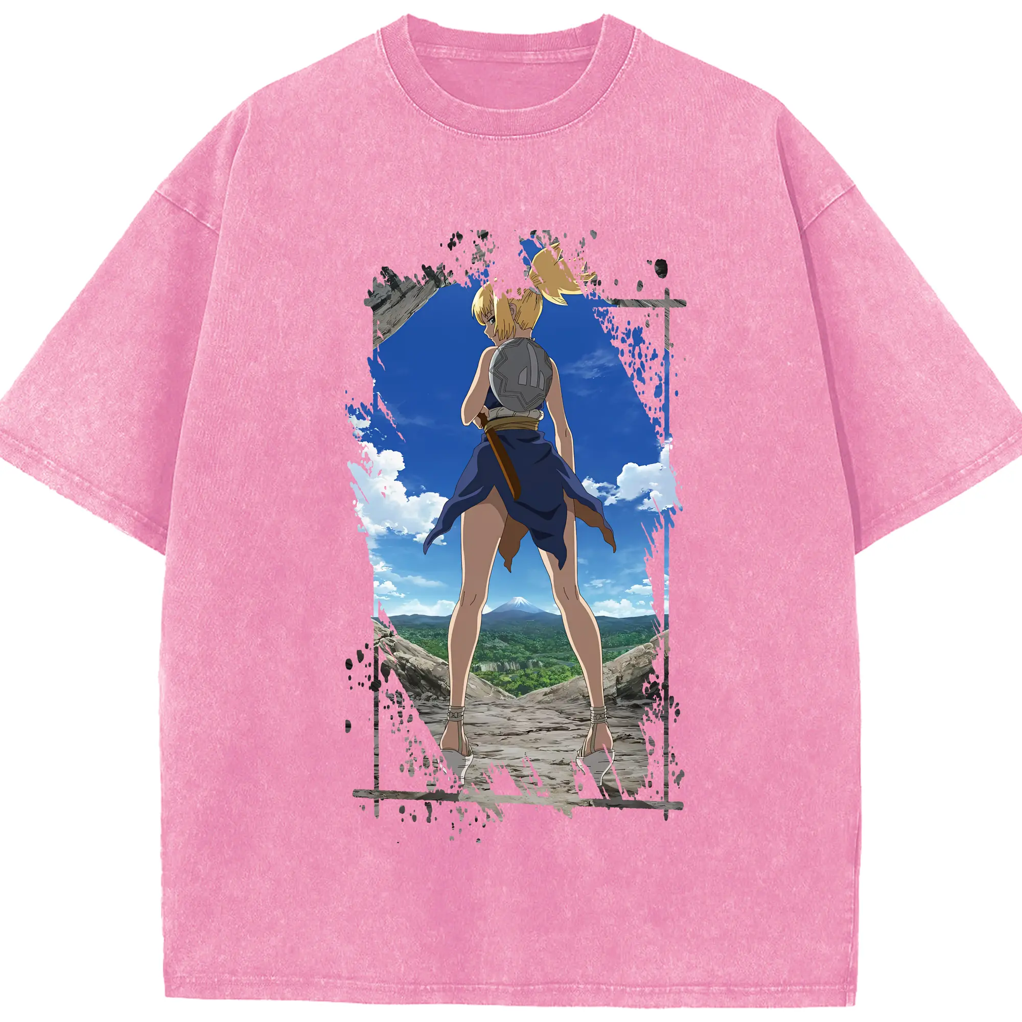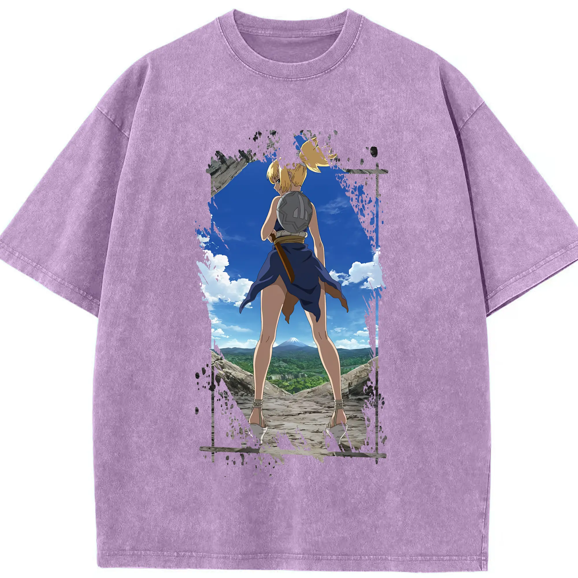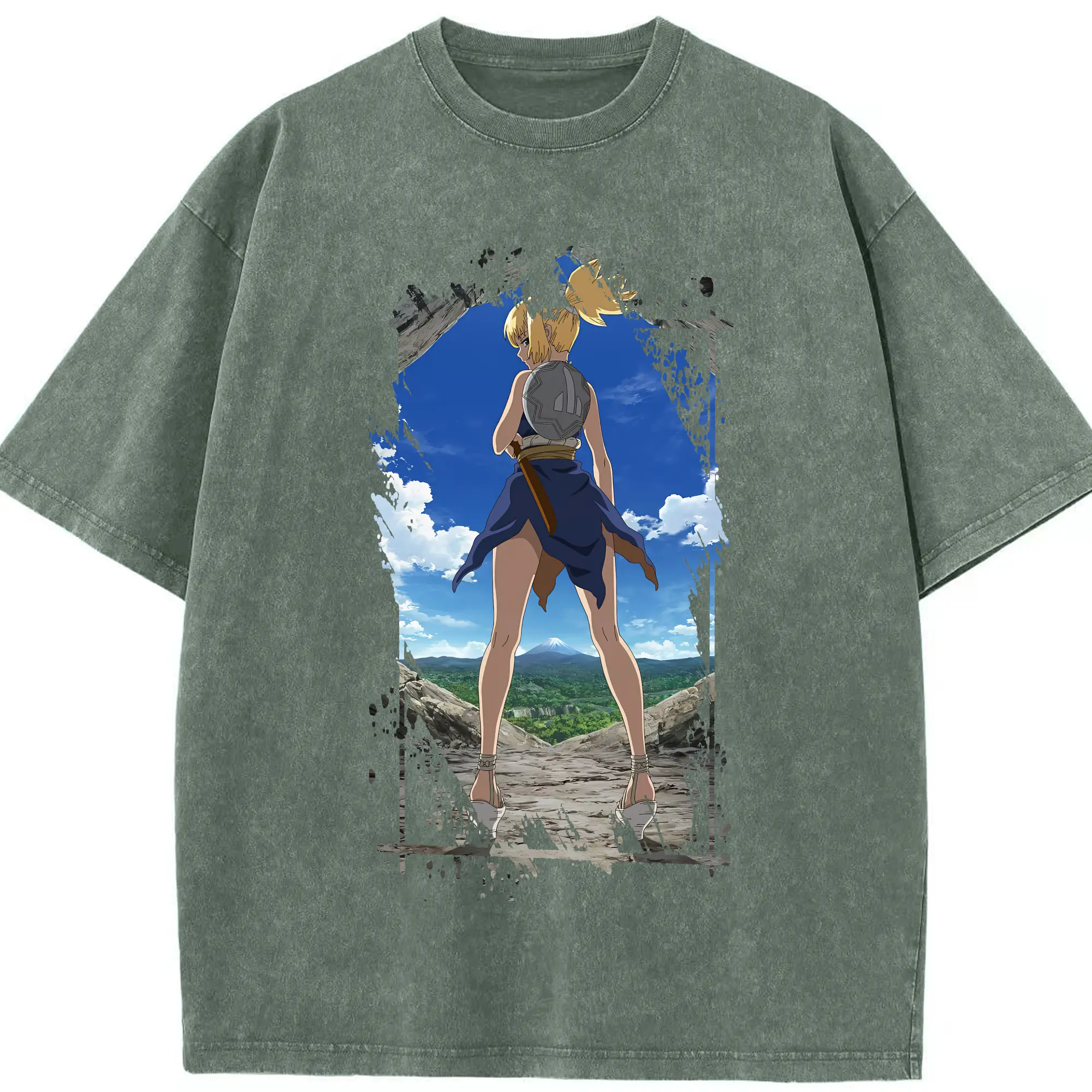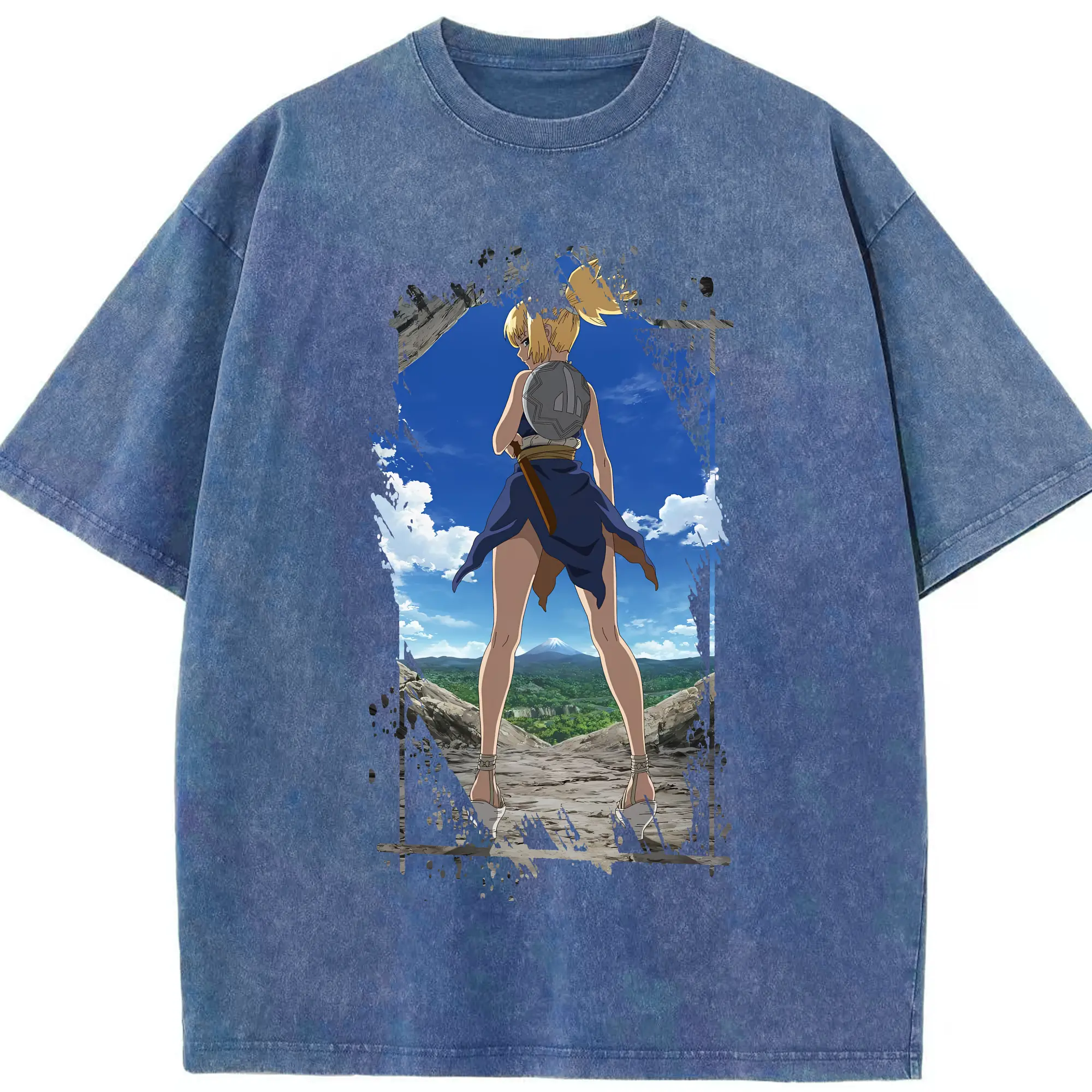 ドクターストーン グッズ,コハク - 綿100% ヴィンテージ風 半袖Tシャツ ・ 背面プリント ・ 柔らか肌触り ・ 通気性 快適 ・ スポーツ カジュアル 外出用
