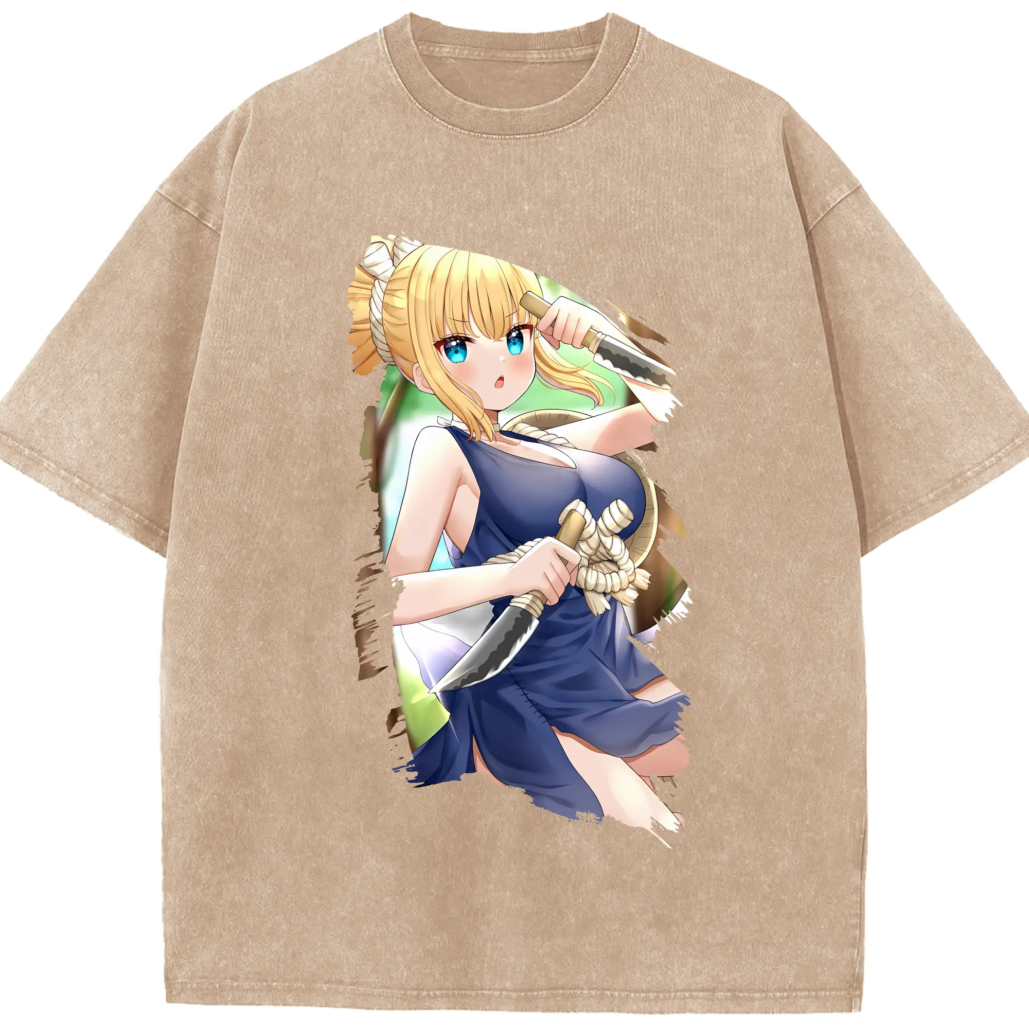 鳴潮 グッズ ヤンヤン - 綿100% ヴィンテージ風 半袖Tシャツ ・ フロントプリント ・ 柔らか肌触り ・ 通気性 快適 ・ スポーツ カジュアル 外出用