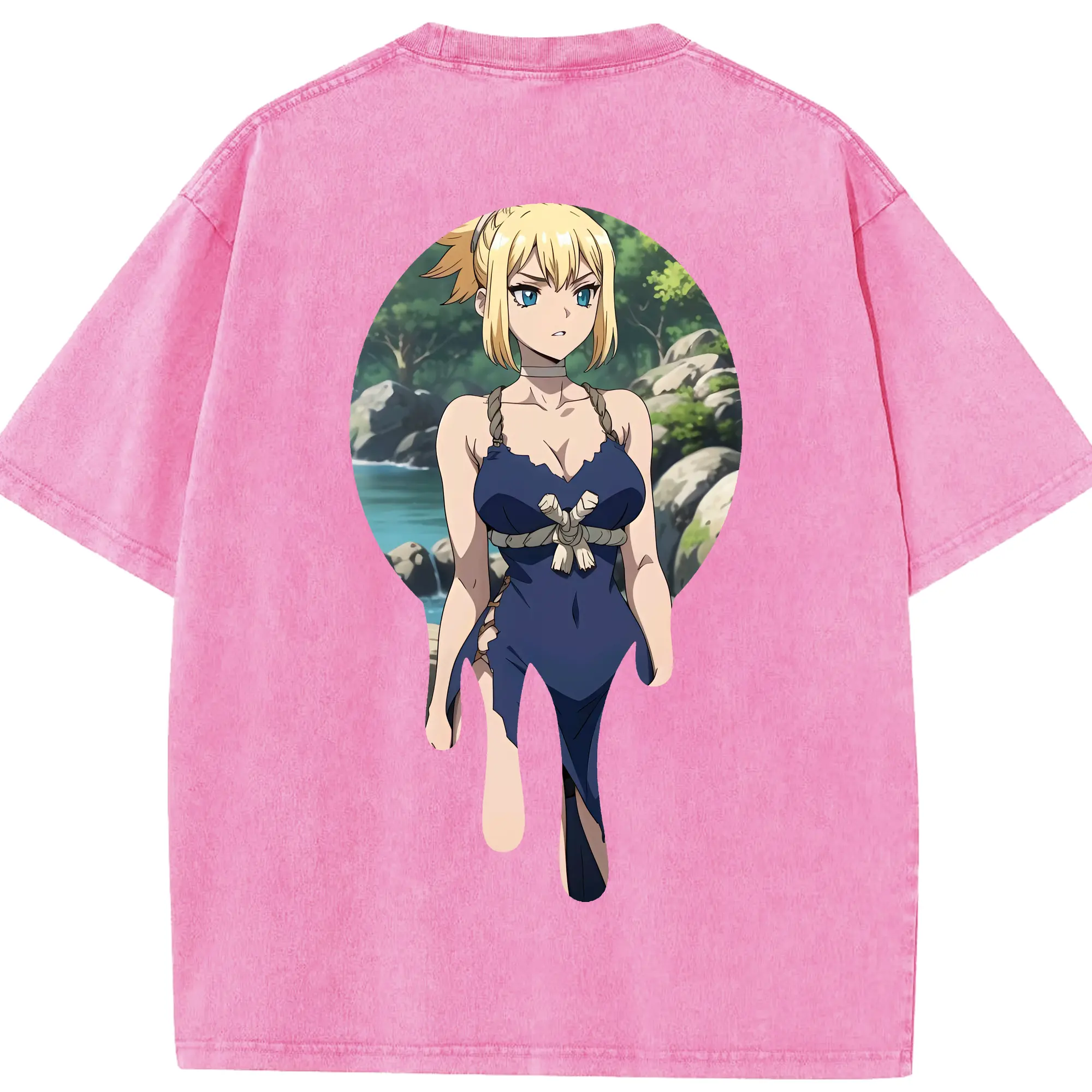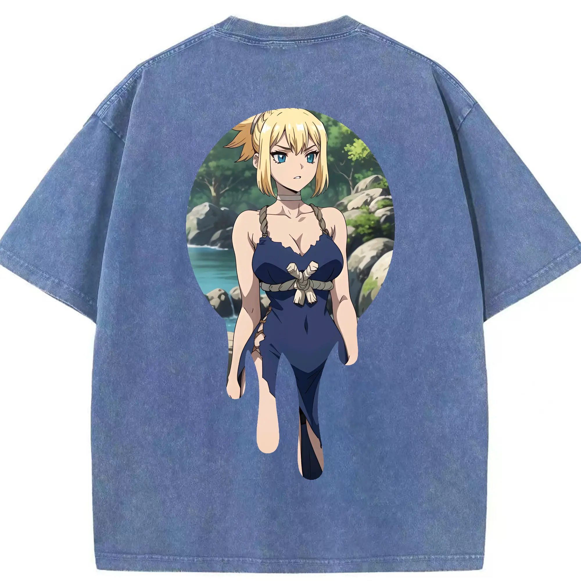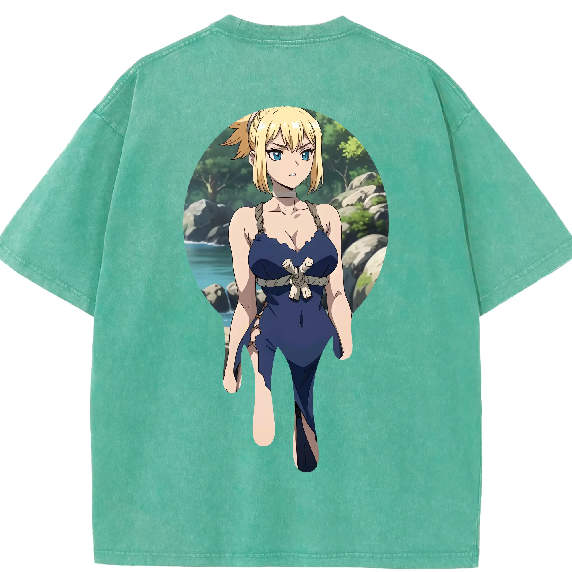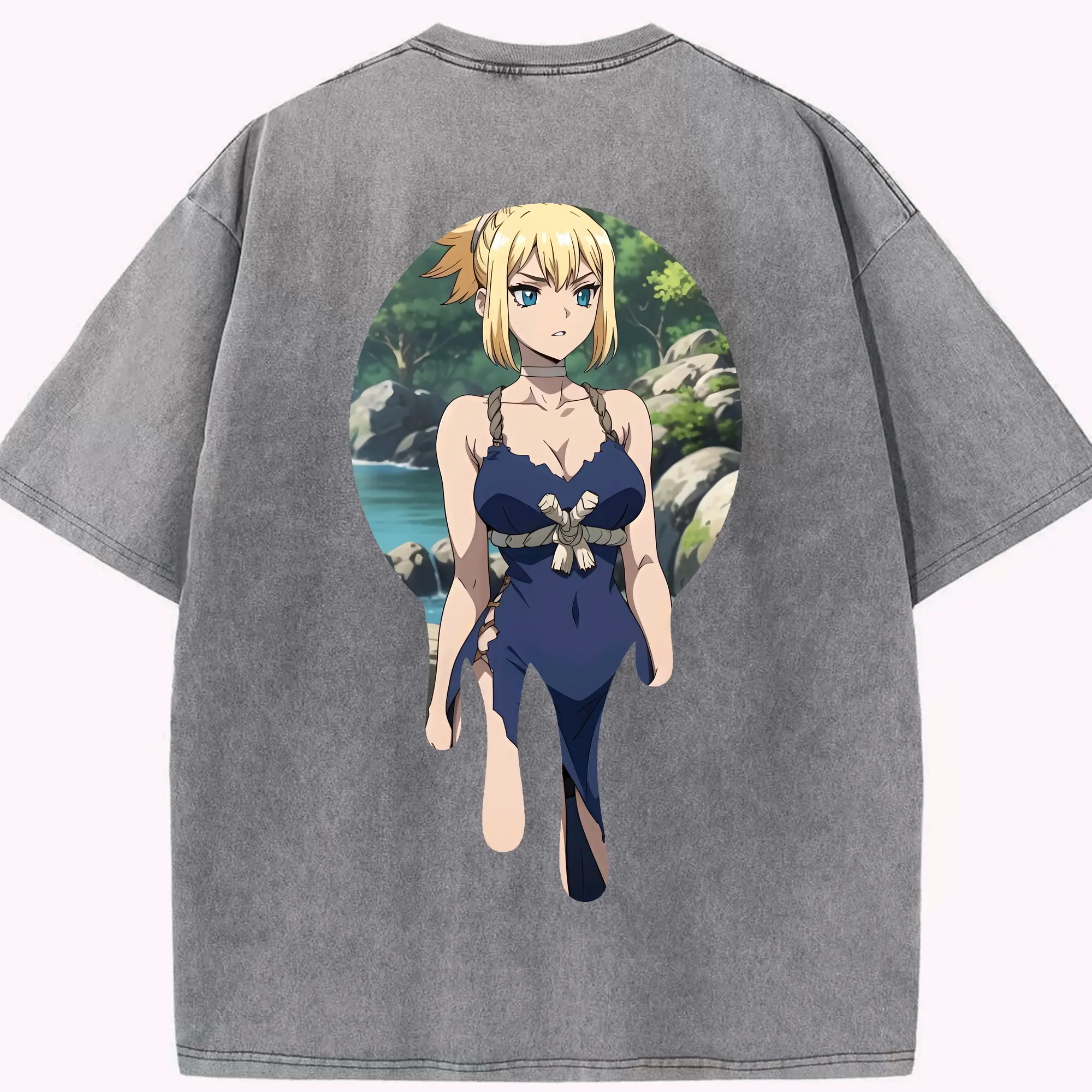ドクターストーン グッズ,コハク - 綿100% ヴィンテージ風 半袖Tシャツ ・ フロントプリント ・ 柔らか肌触り ・ 通気性 快適 ・ スポーツ カジュアル 外出用