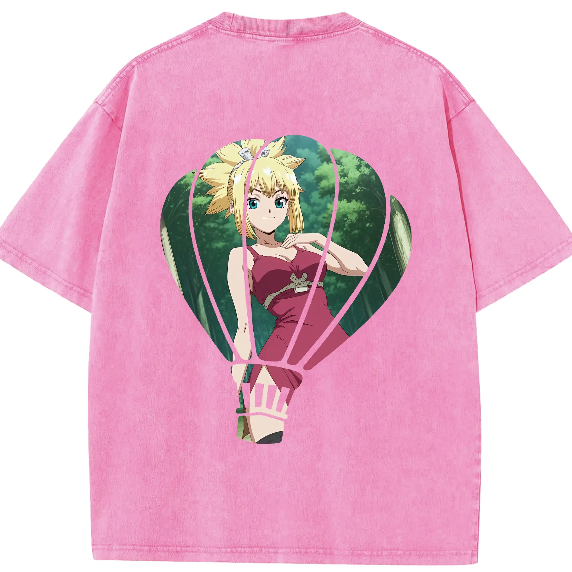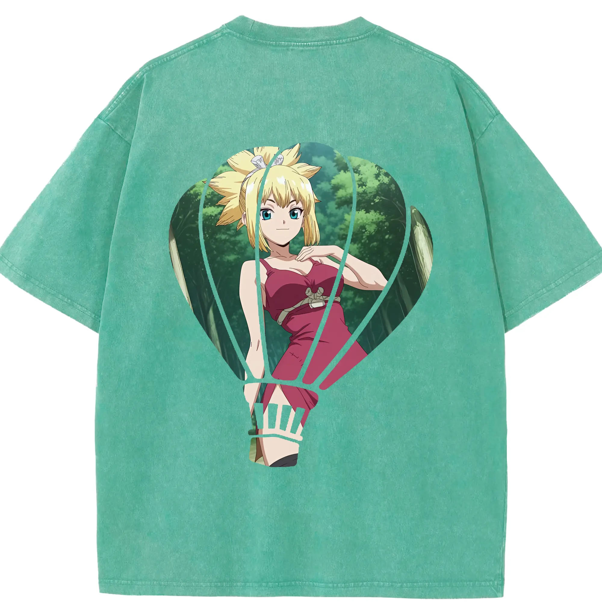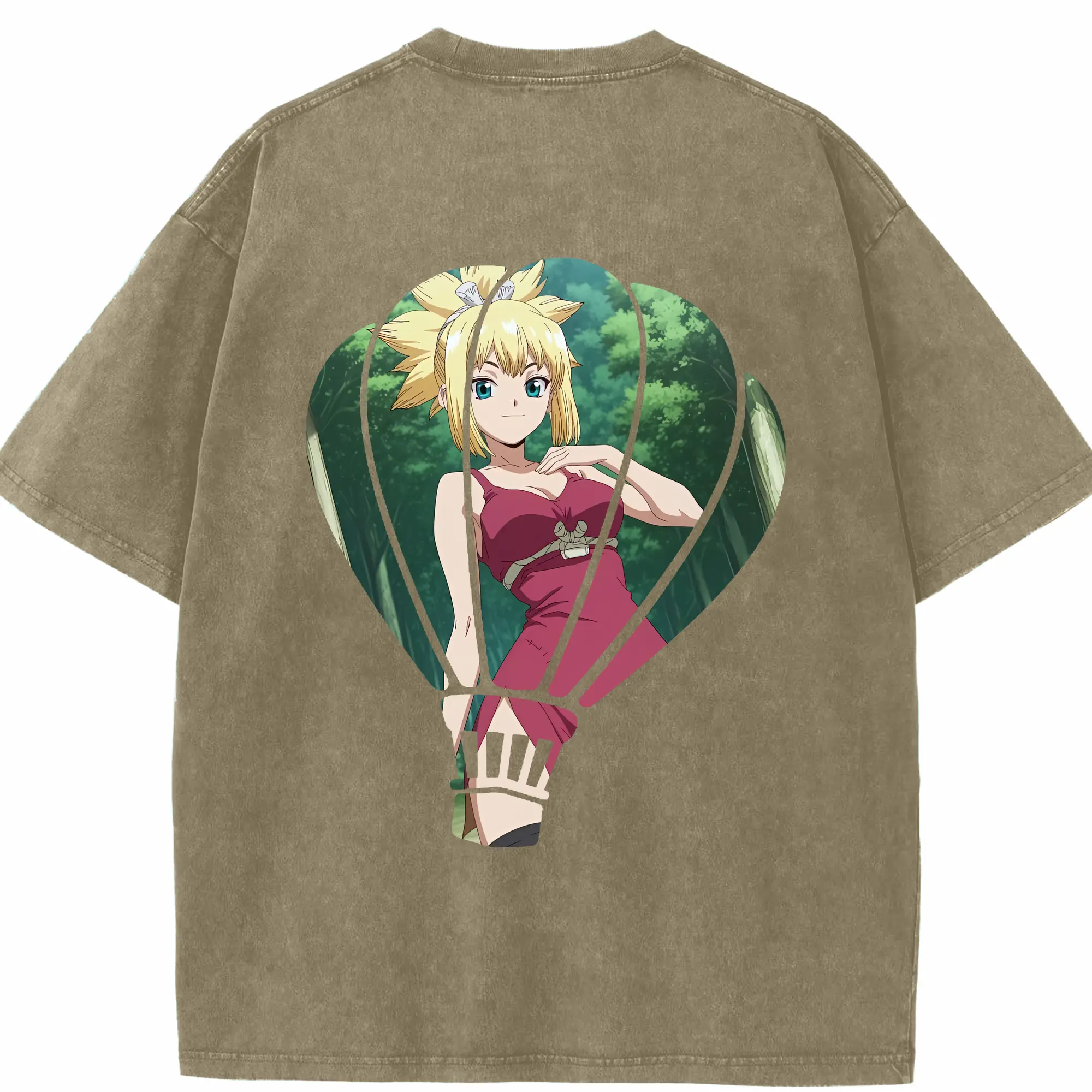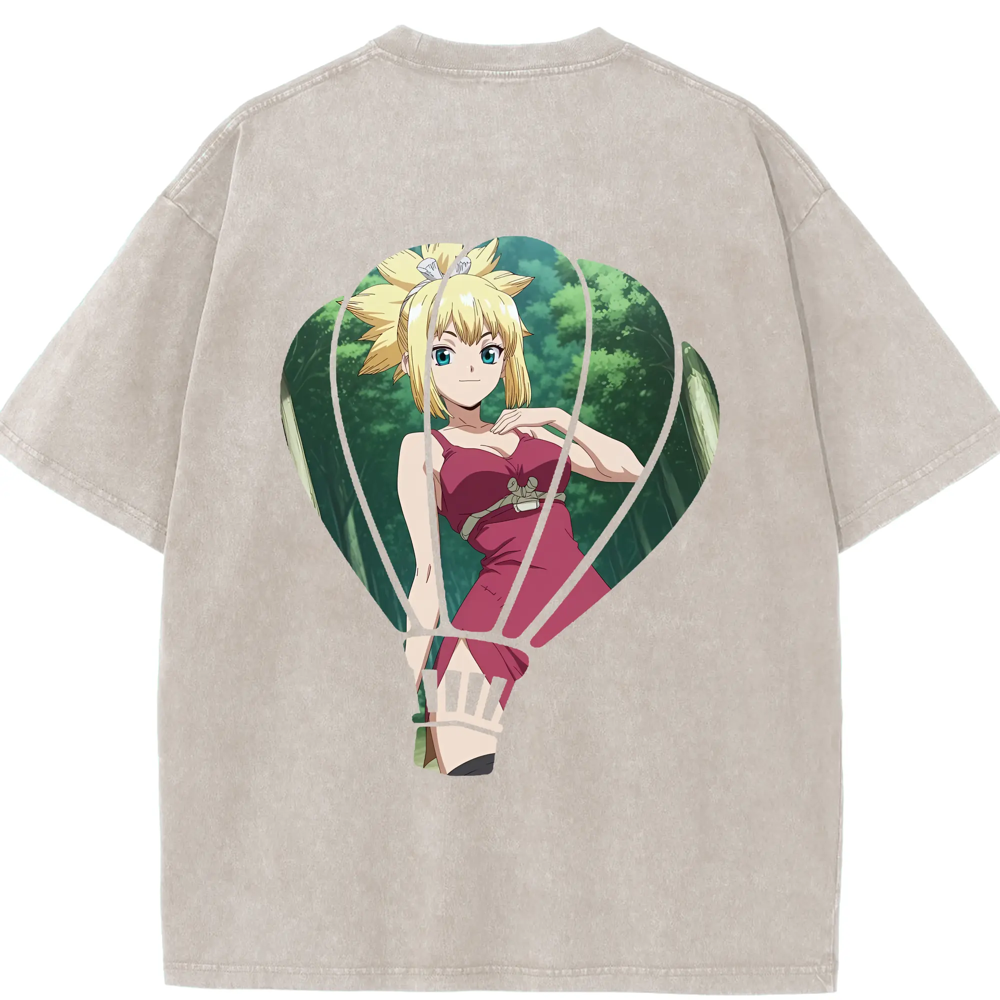 ドクターストーン グッズ,コハク - 綿100% ヴィンテージ風 半袖Tシャツ ・ フロントプリント ・ 柔らか肌触り ・ 通気性 快適 ・ スポーツ カジュアル 外出用