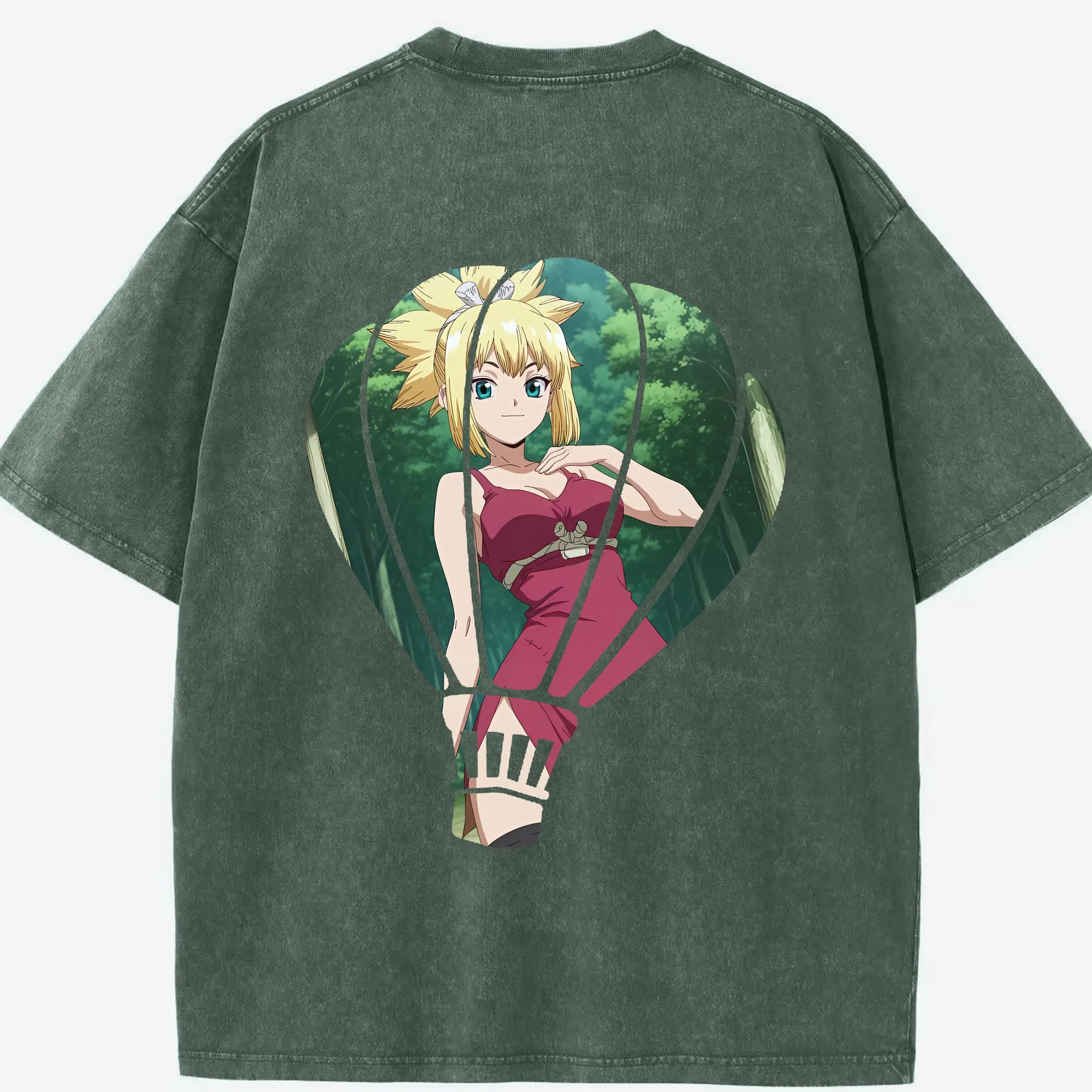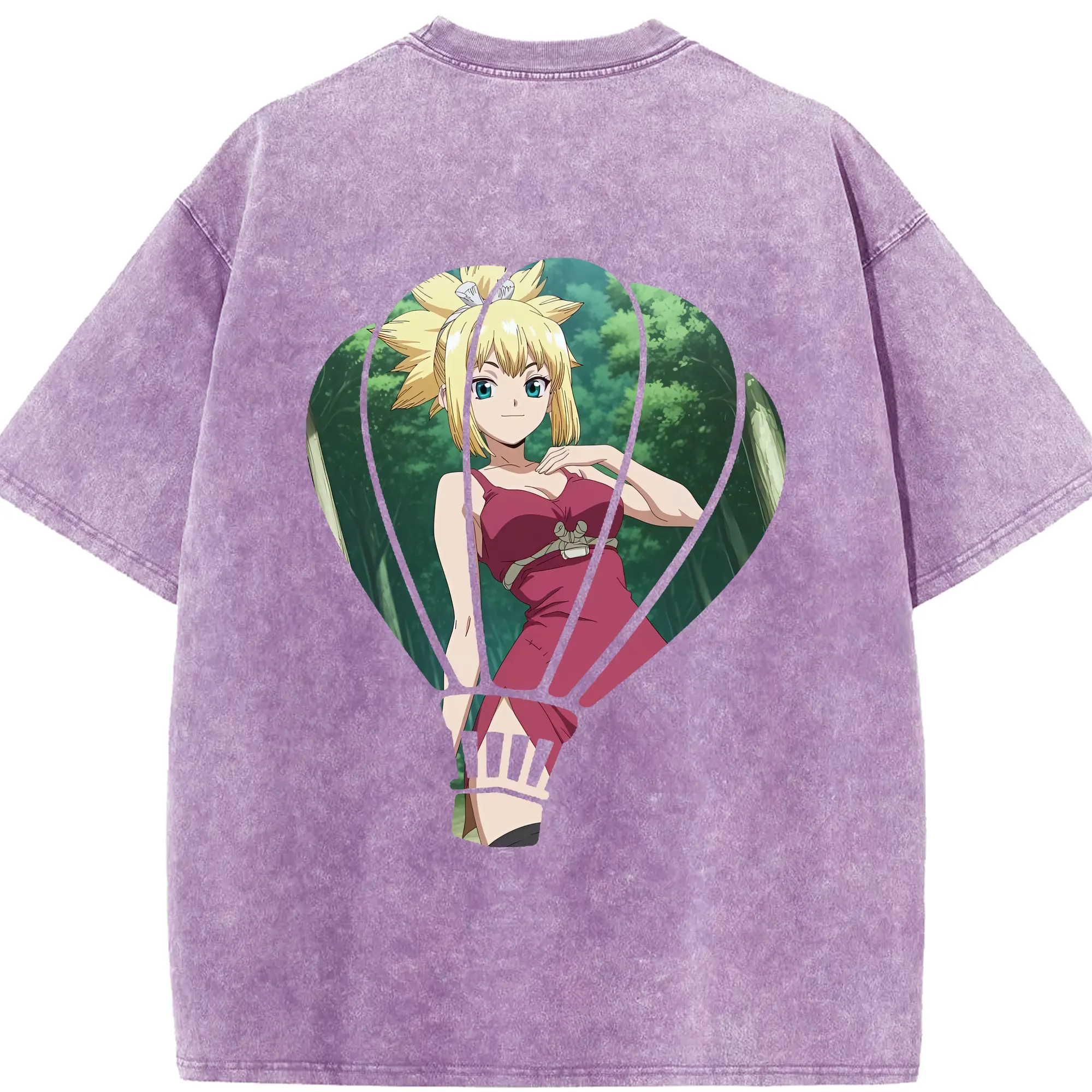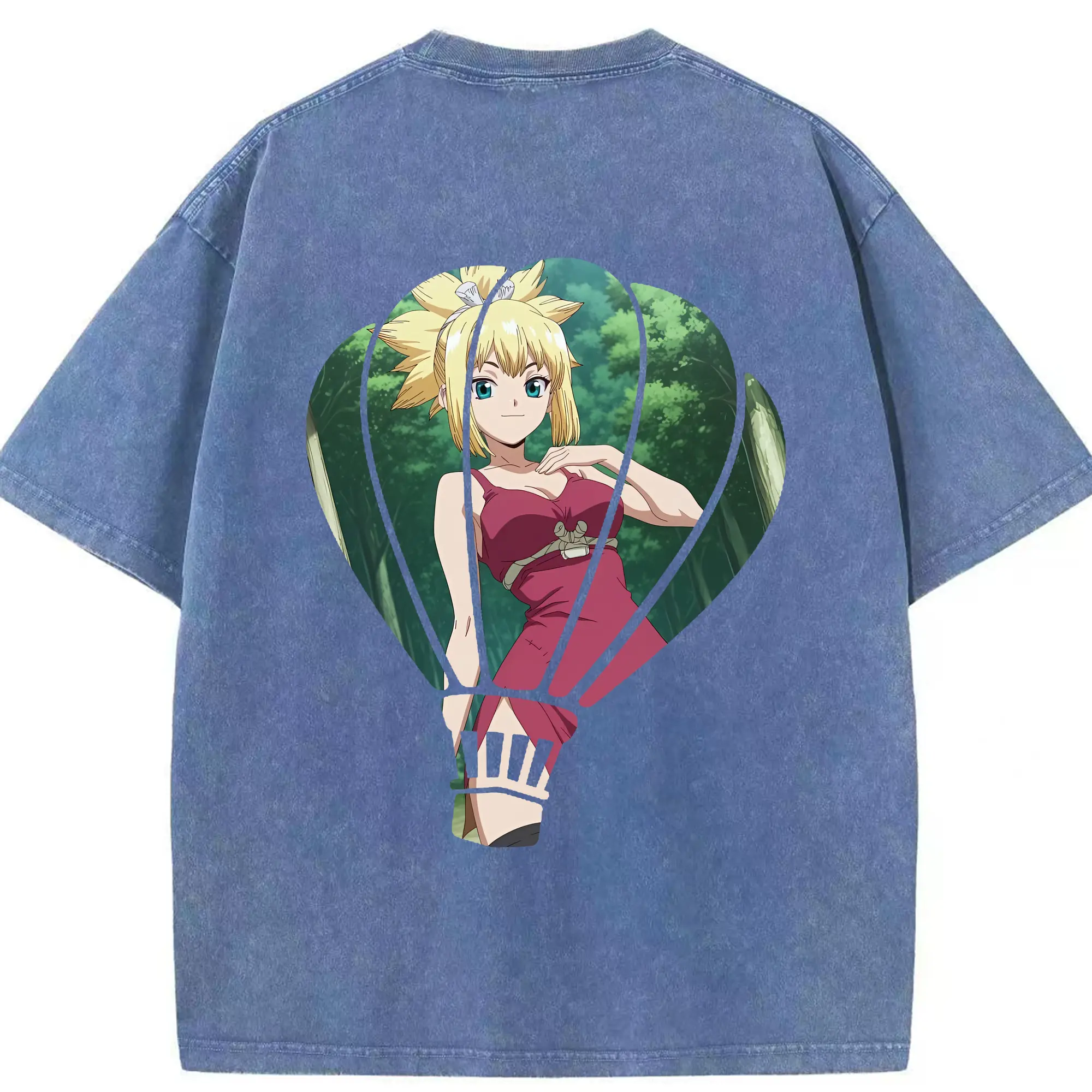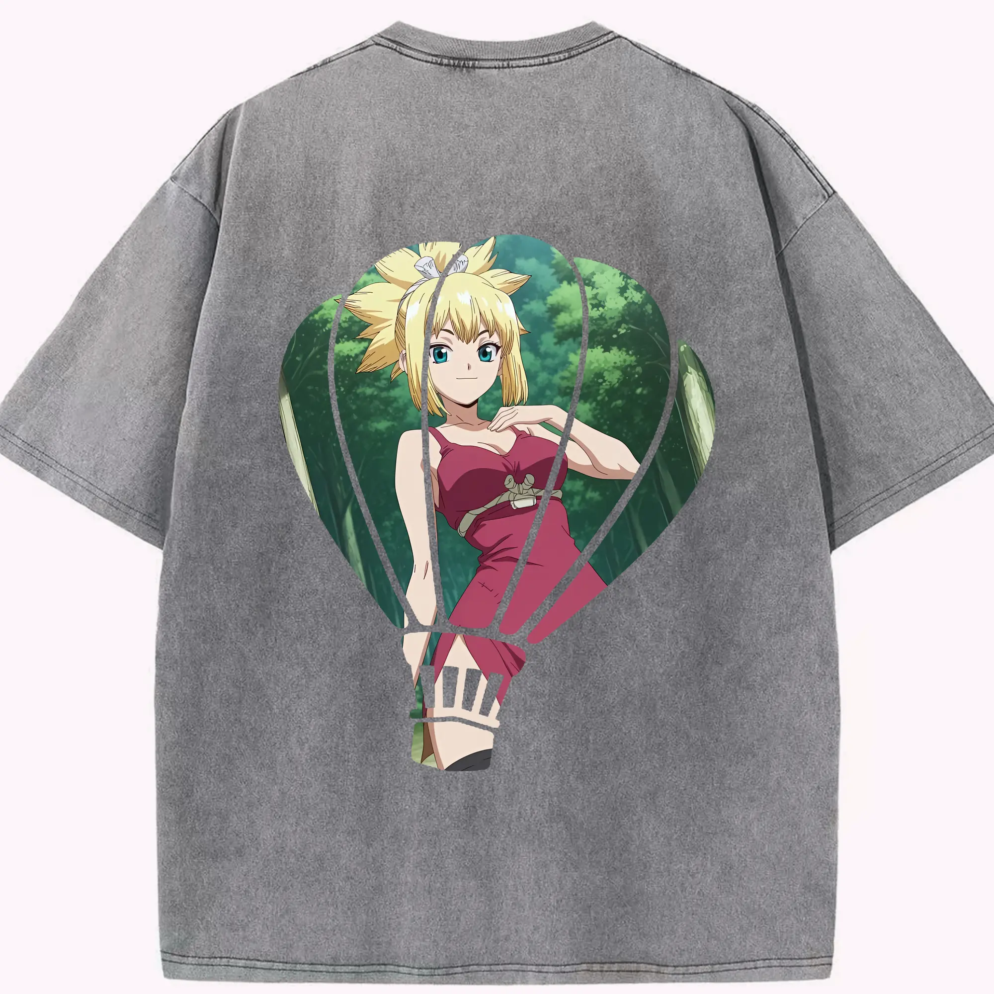 ドクターストーン グッズ,コハク - 綿100% ヴィンテージ風 半袖Tシャツ ・ フロントプリント ・ 柔らか肌触り ・ 通気性 快適 ・ スポーツ カジュアル 外出用
