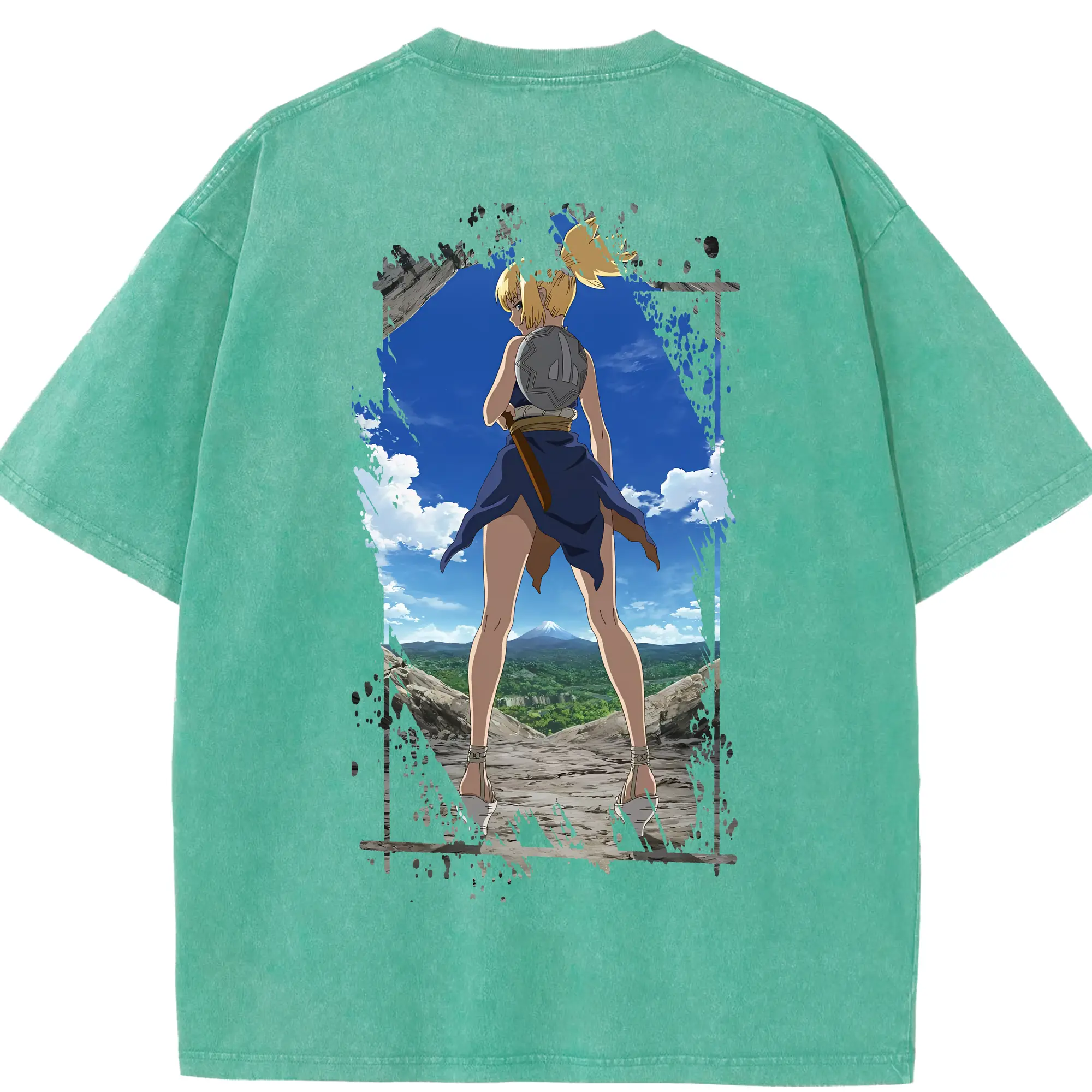 ドクターストーン グッズ,コハク - 綿100% ヴィンテージ風 半袖Tシャツ ・ フロントプリント ・ 柔らか肌触り ・ 通気性 快適 ・ スポーツ カジュアル 外出用