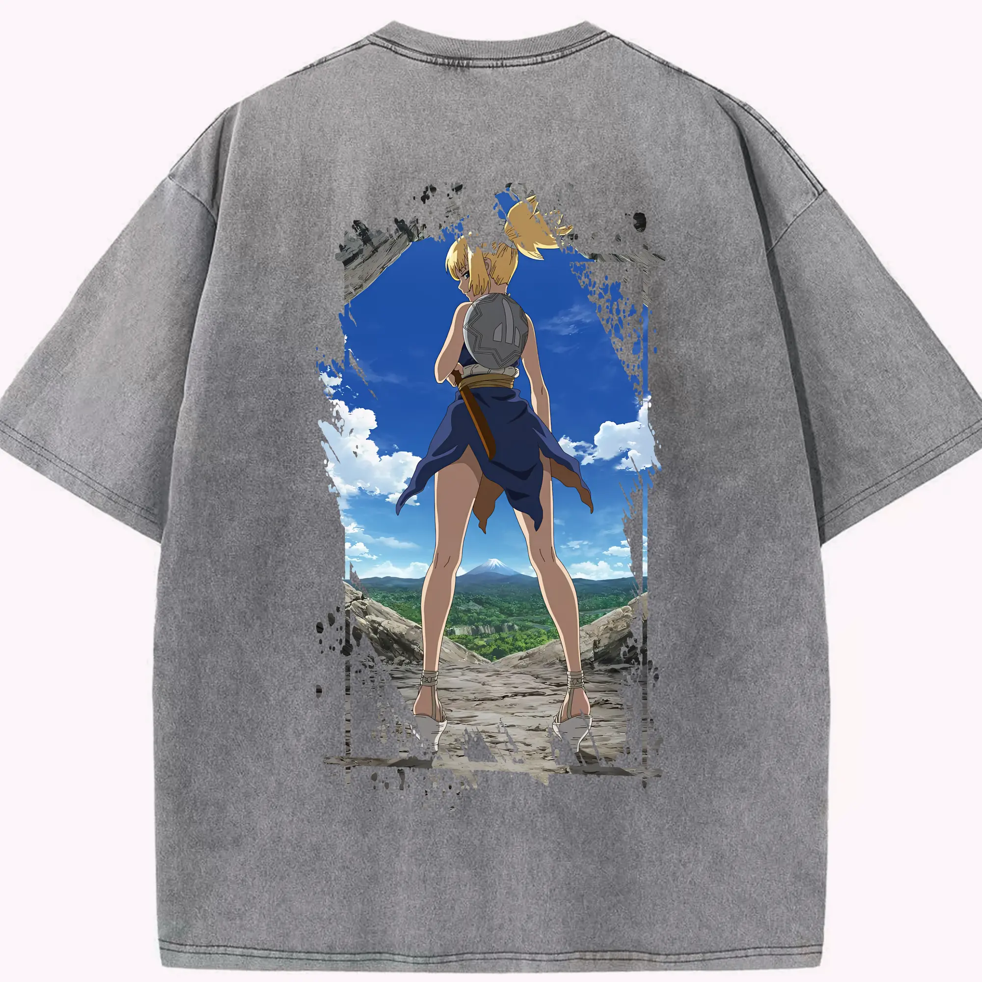 フェアリーテイル グッズ グレイ・フルバスター - 綿100% ヴィンテージ風 半袖Tシャツ ・ 背面プリント ・ 柔らか肌触り ・ 通気性 快適 ・ スポーツ カジュアル 外出用