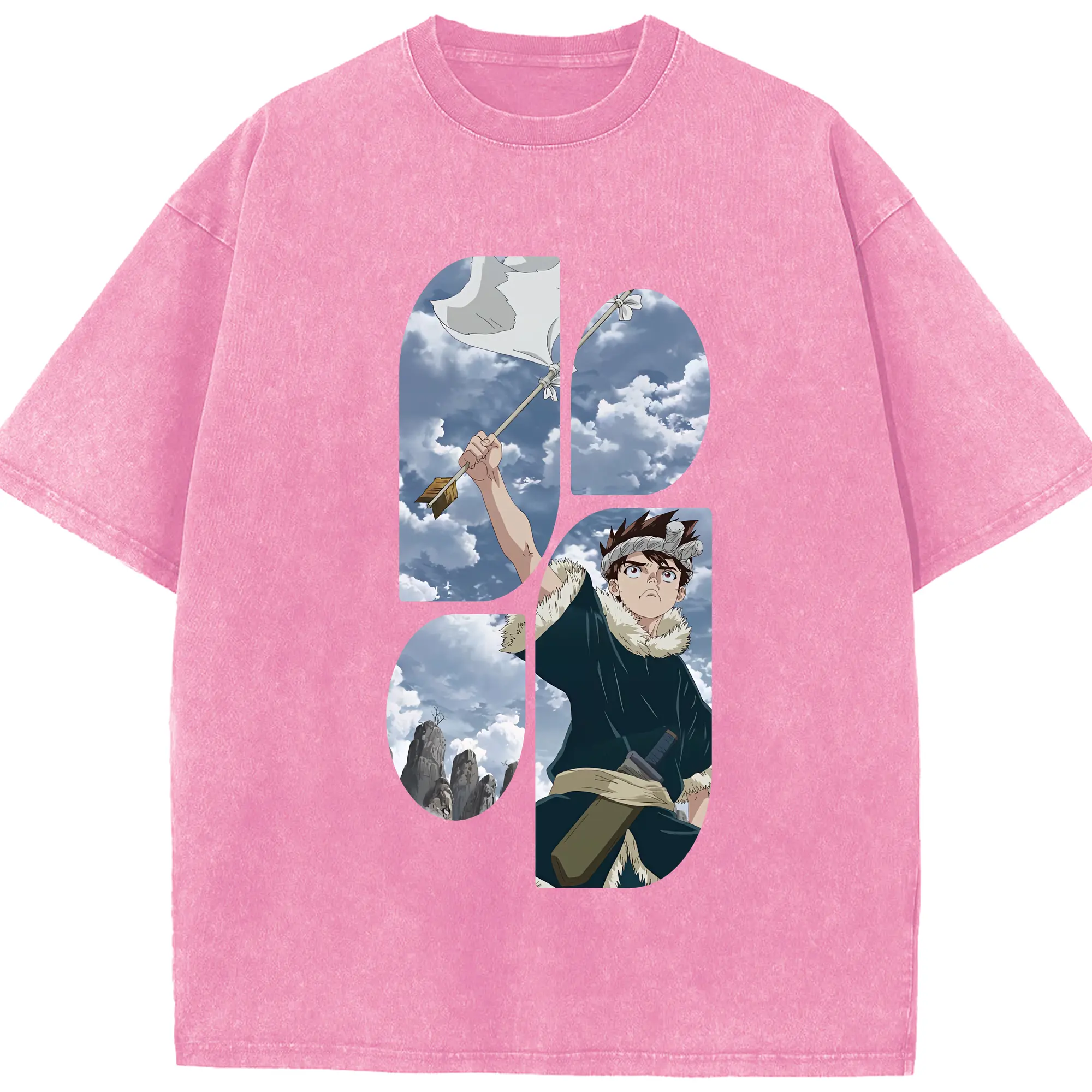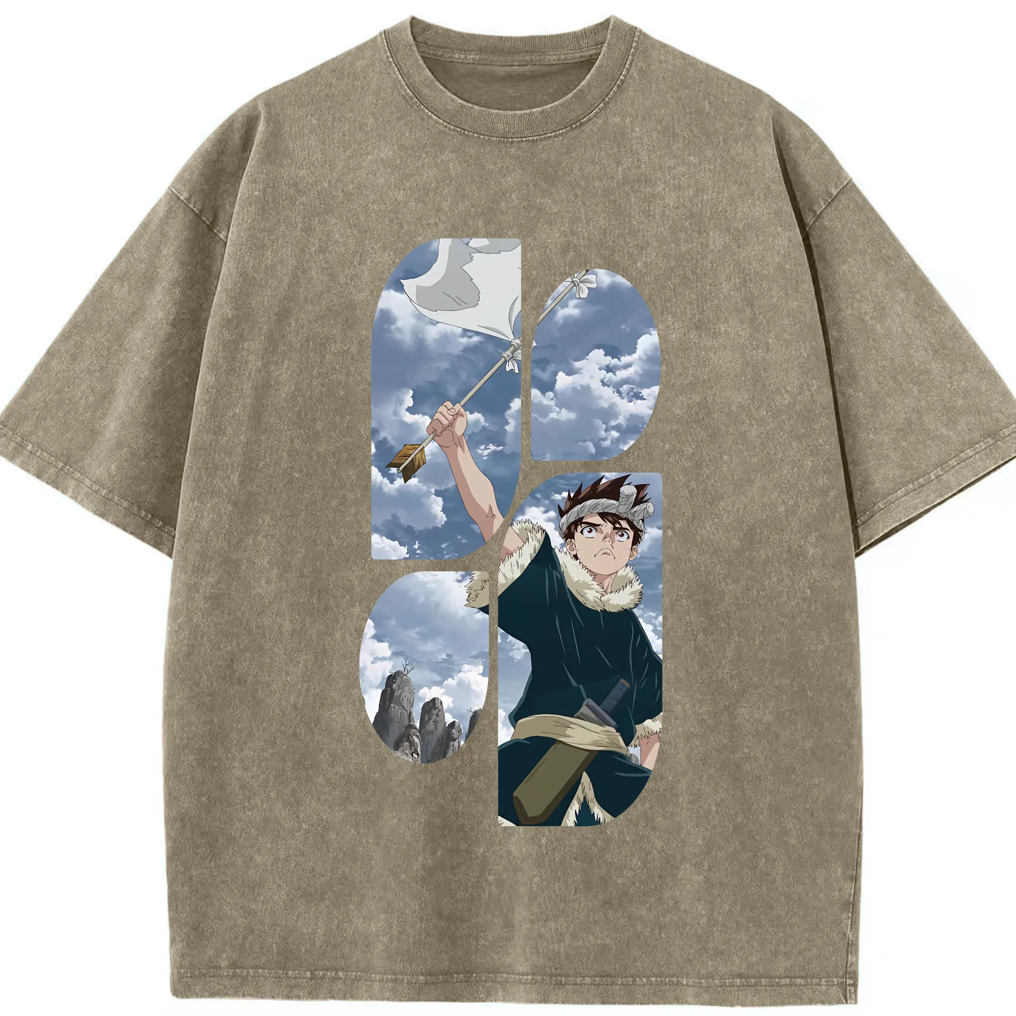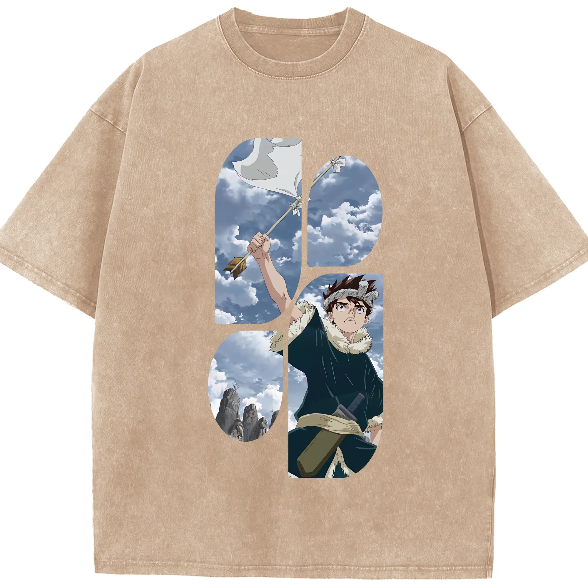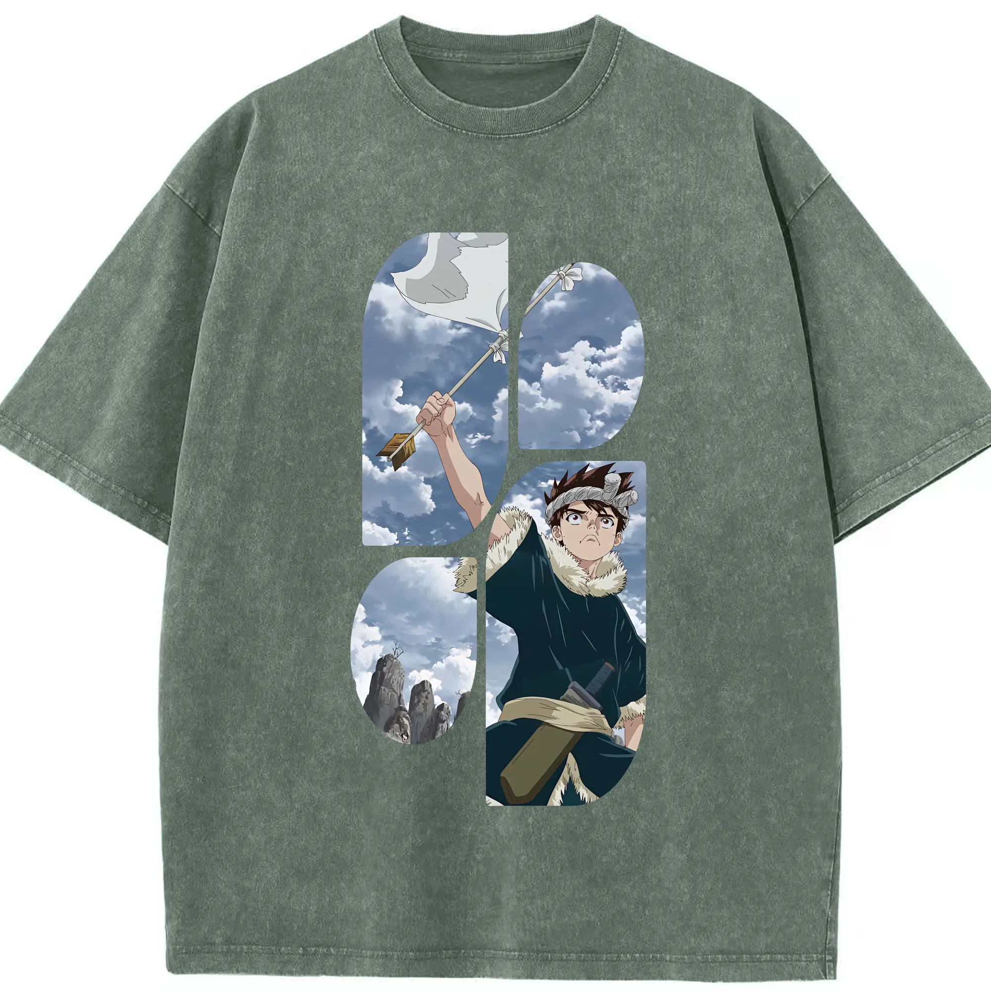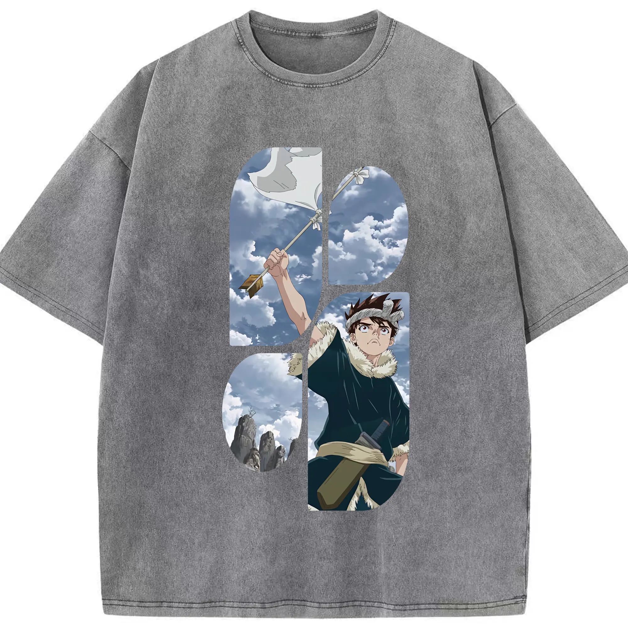 ドクターストーン グッズ,クロム - 綿100% ヴィンテージ風 半袖Tシャツ ・ 背面プリント ・ 柔らか肌触り ・ 通気性 快適 ・ スポーツ カジュアル 外出用