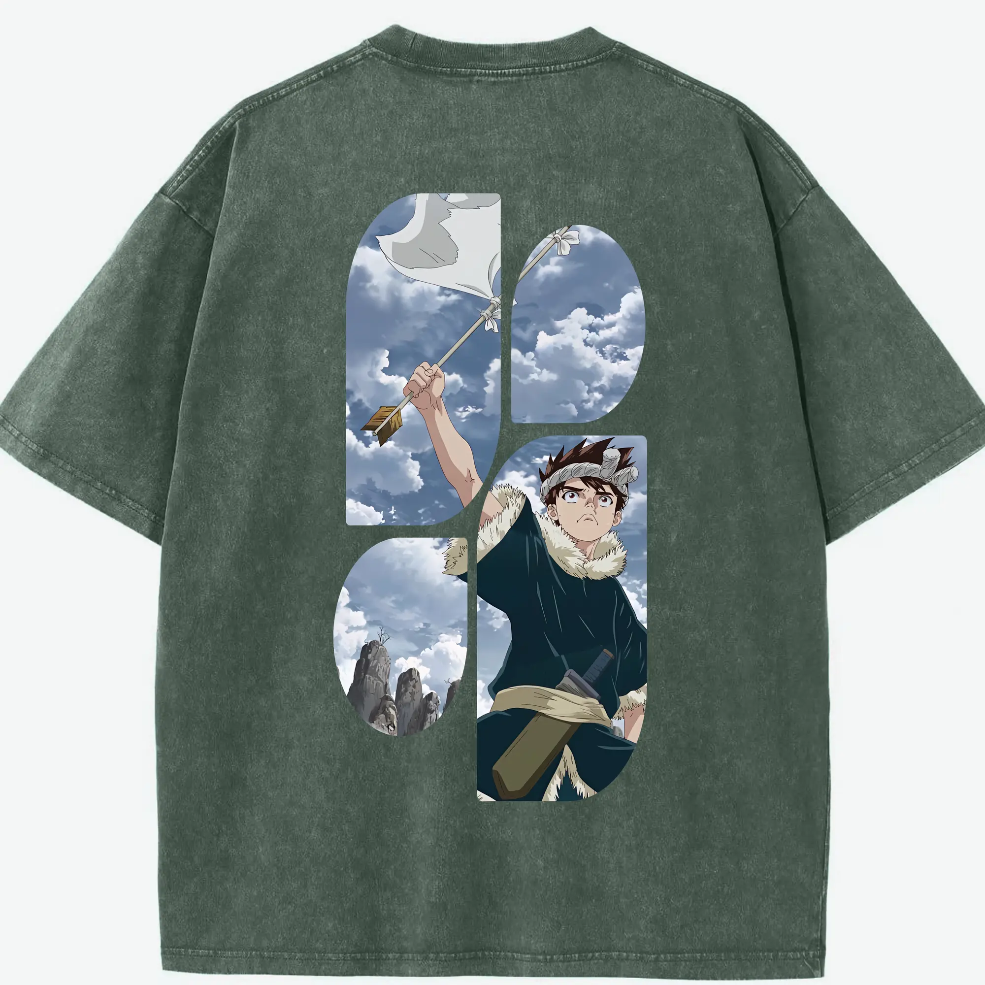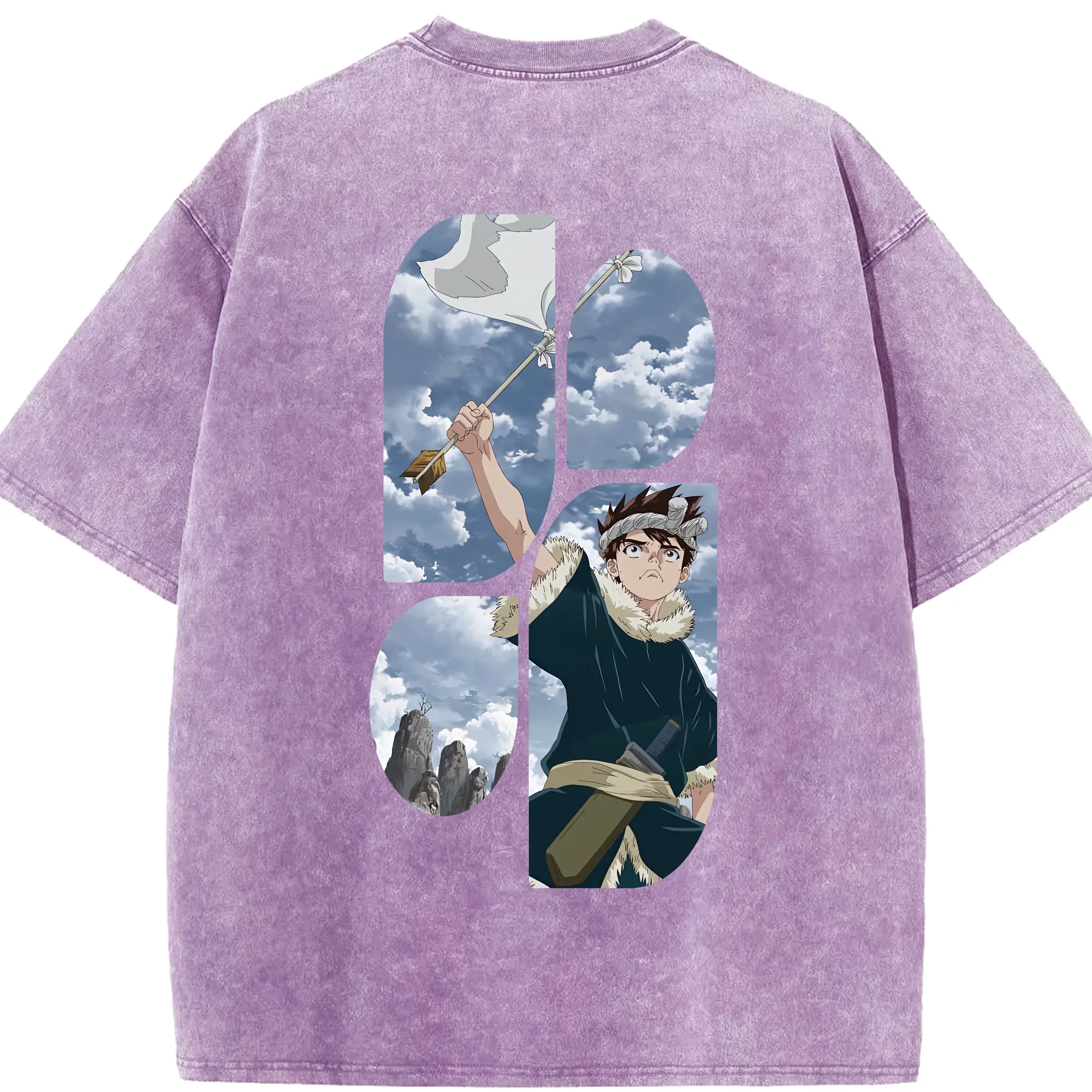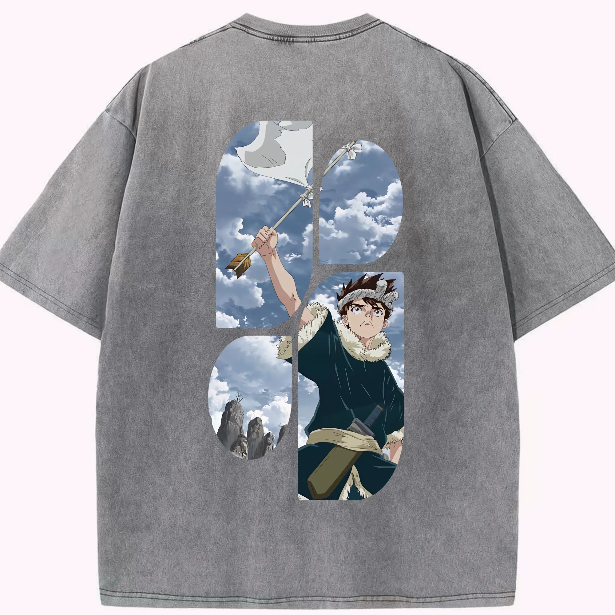 ドクターストーン グッズ,クロム - 綿100% ヴィンテージ風 半袖Tシャツ ・ フロントプリント ・ 柔らか肌触り ・ 通気性 快適 ・ スポーツ カジュアル 外出用