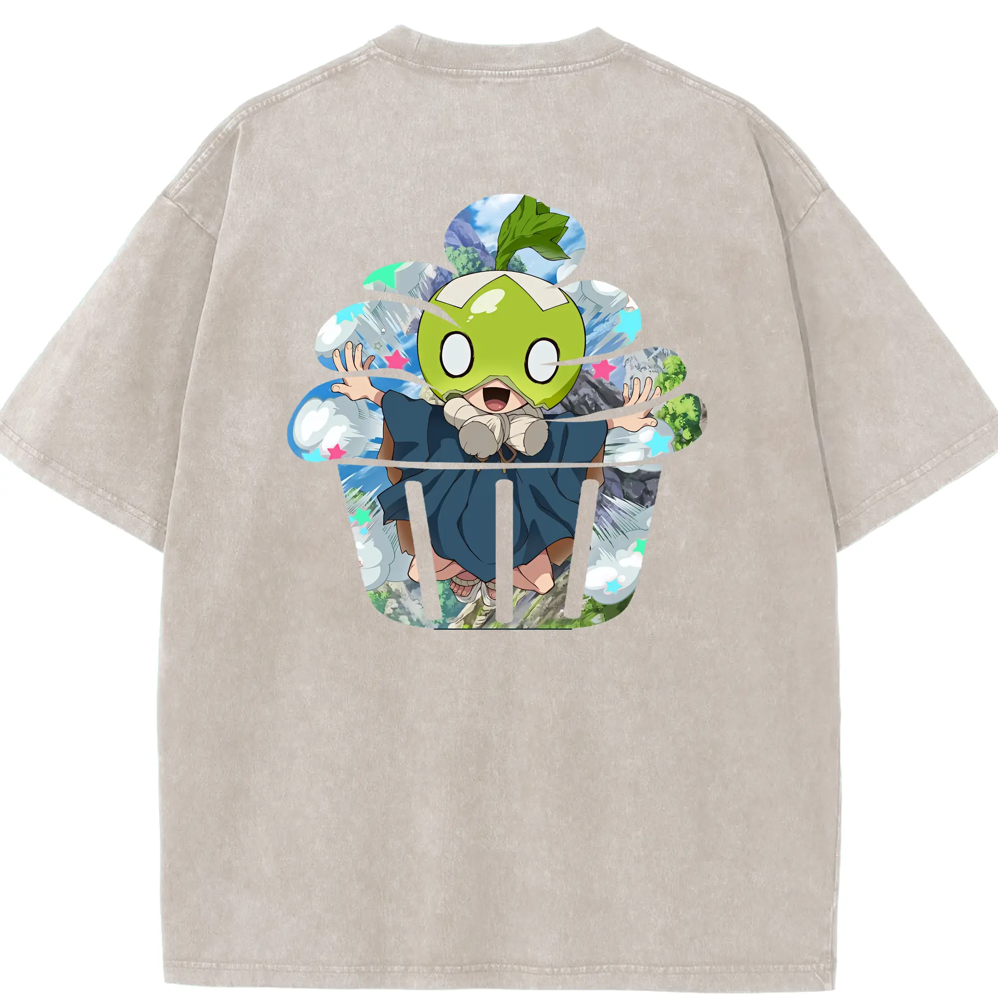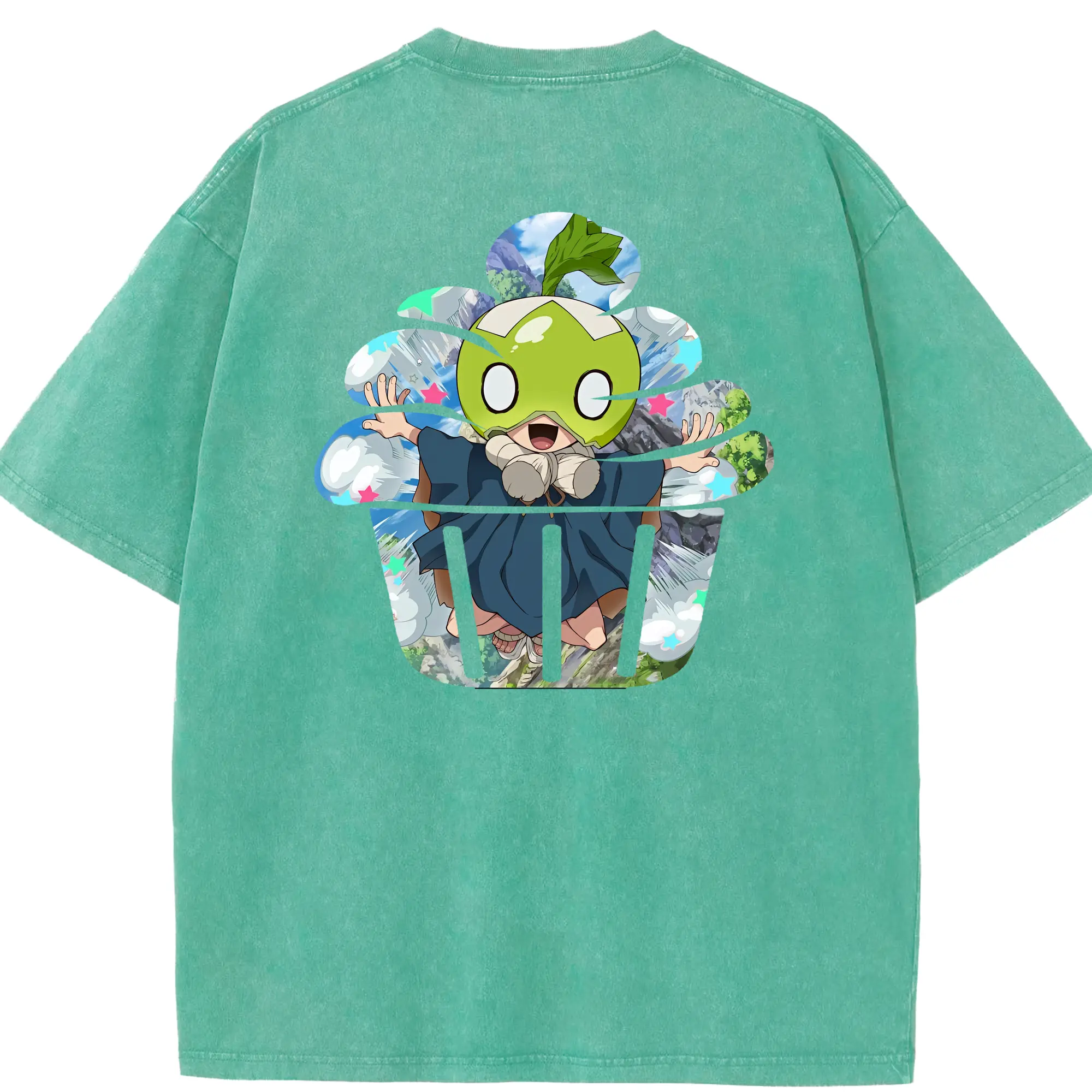 ドクターストーン グッズ,スイカ - 綿100% ヴィンテージ風 半袖Tシャツ ・ フロントプリント ・ 柔らか肌触り ・ 通気性 快適 ・ スポーツ カジュアル 外出用