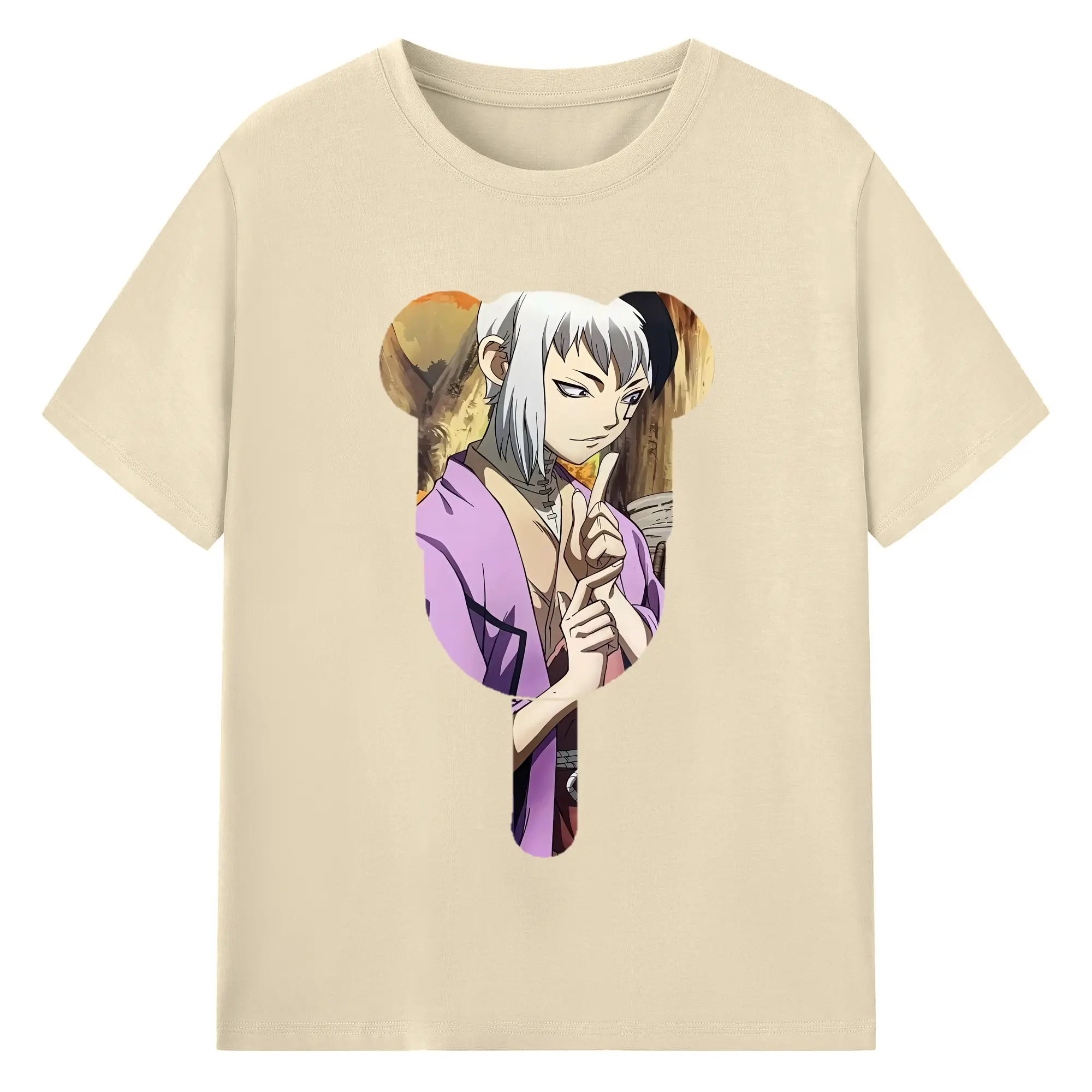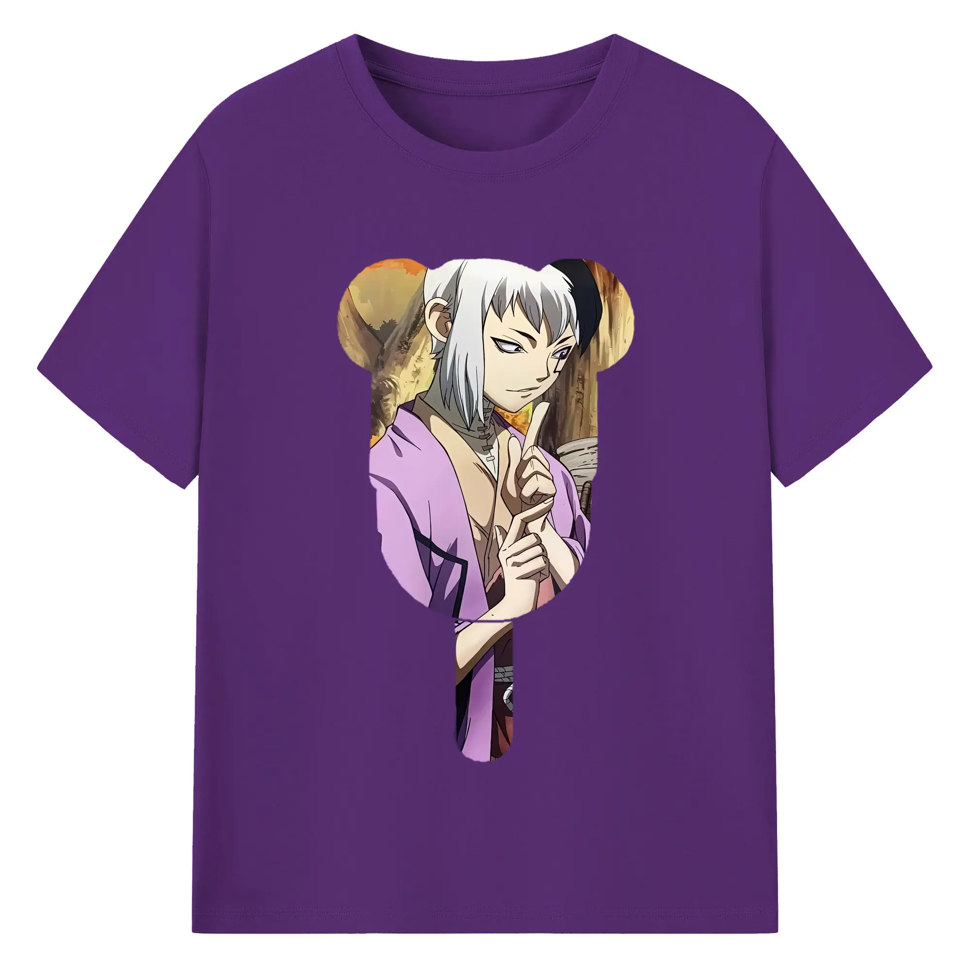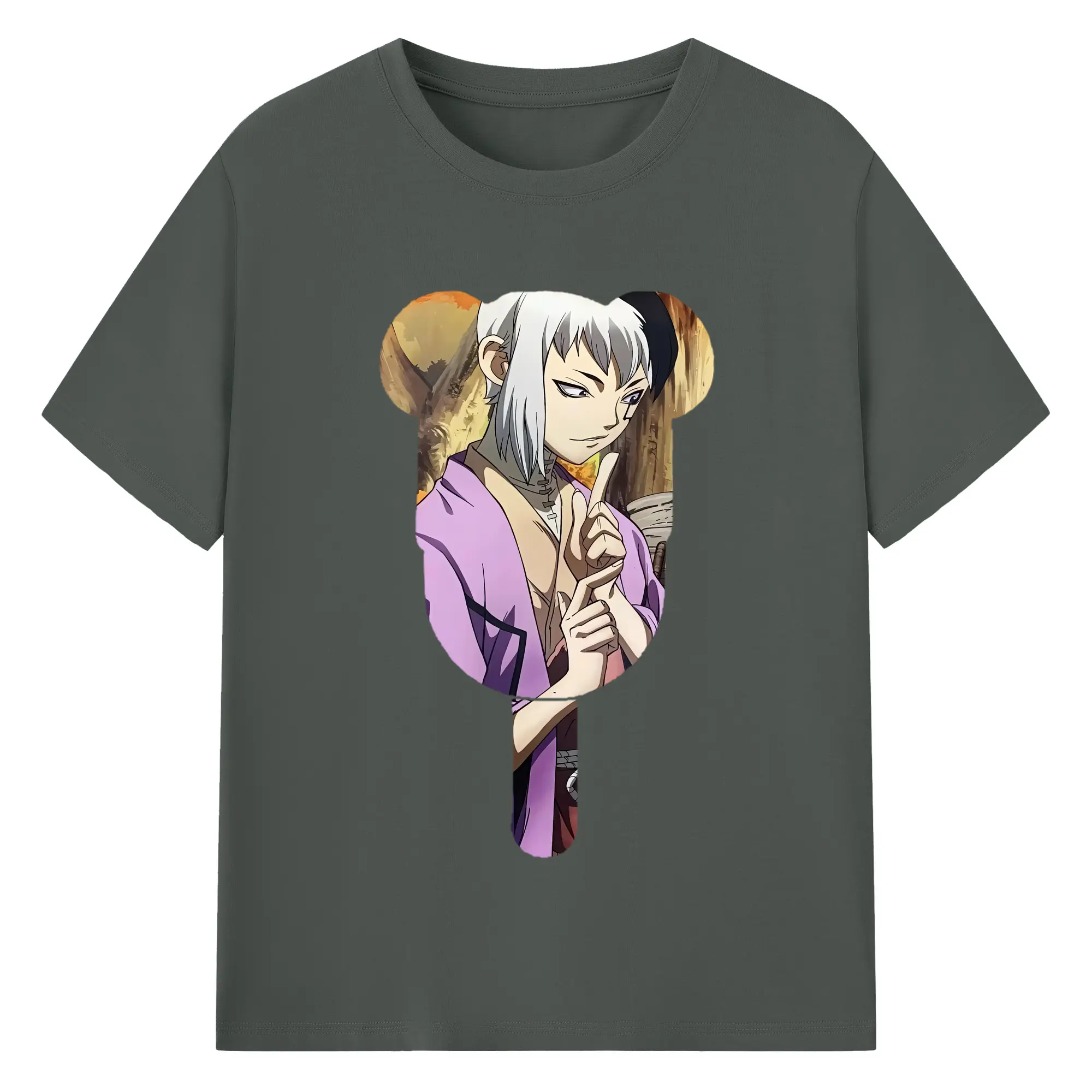 ドクターストーン グッズ,ゲン 銀狼 - 綿100% 半袖Tシャツ ・ バックプリント ・ 快適 通気性 ・ 日常使い 散歩 スポーツ用