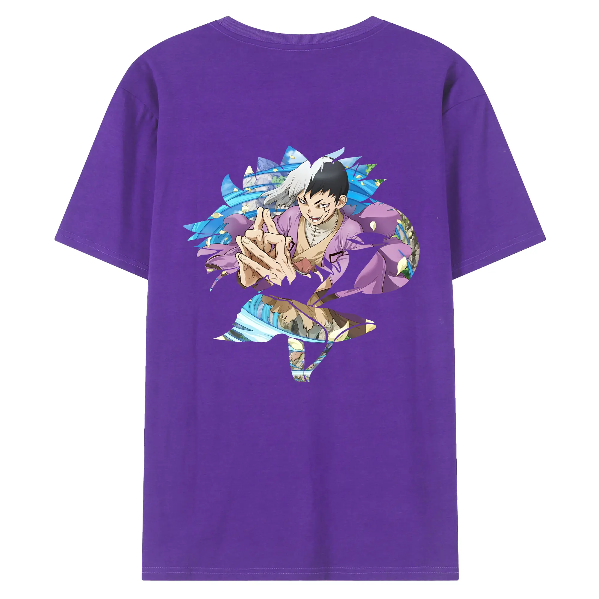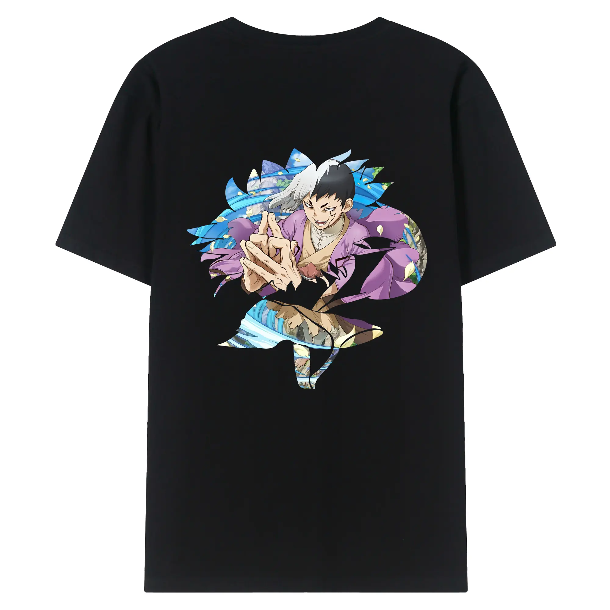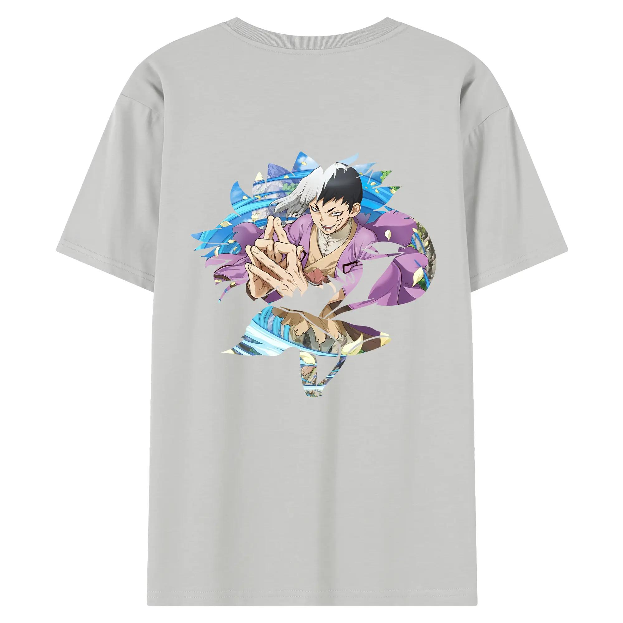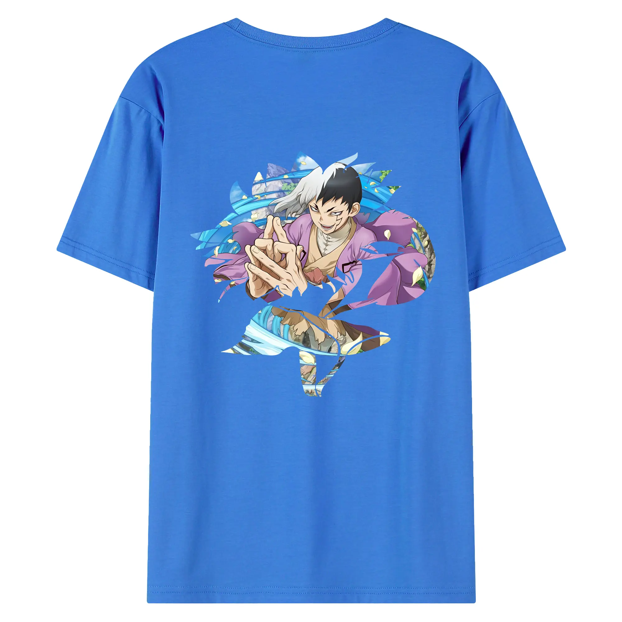 ドクターストーン グッズ,ゲン 銀狼 - 綿100% 半袖Tシャツ ・ フロントプリント ・ 快適 通気性 ・ 日常使い 散歩 スポーツ用
