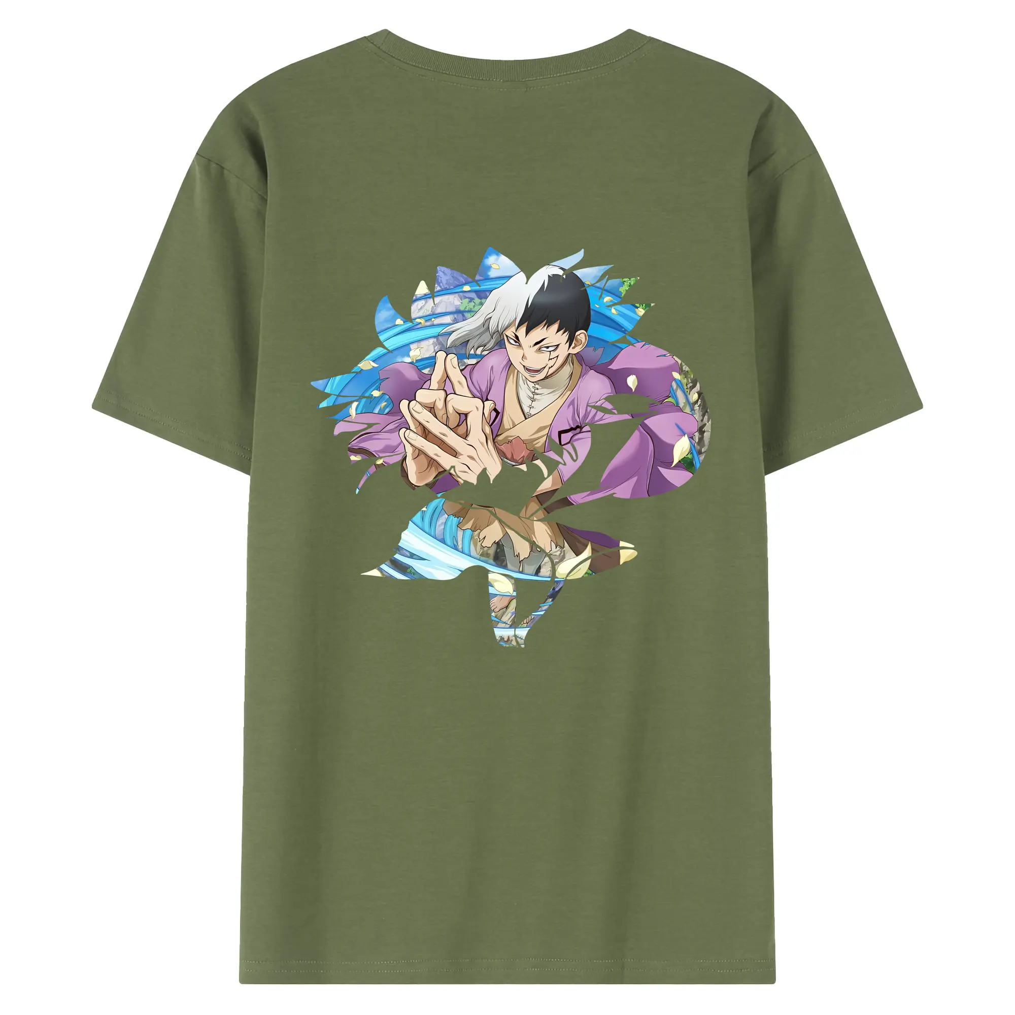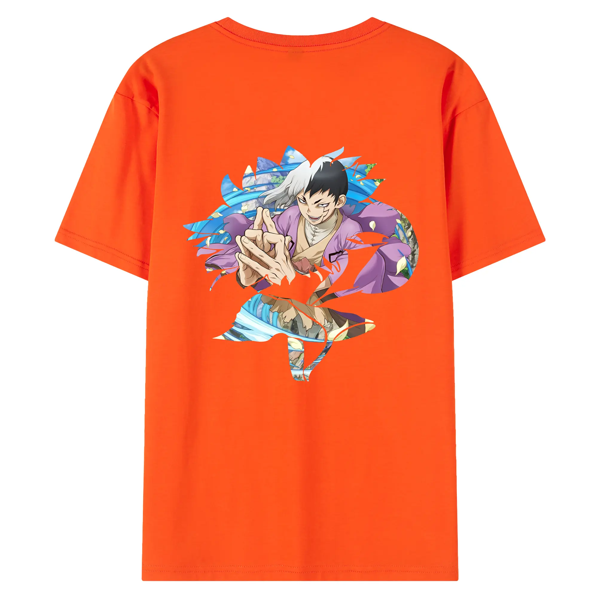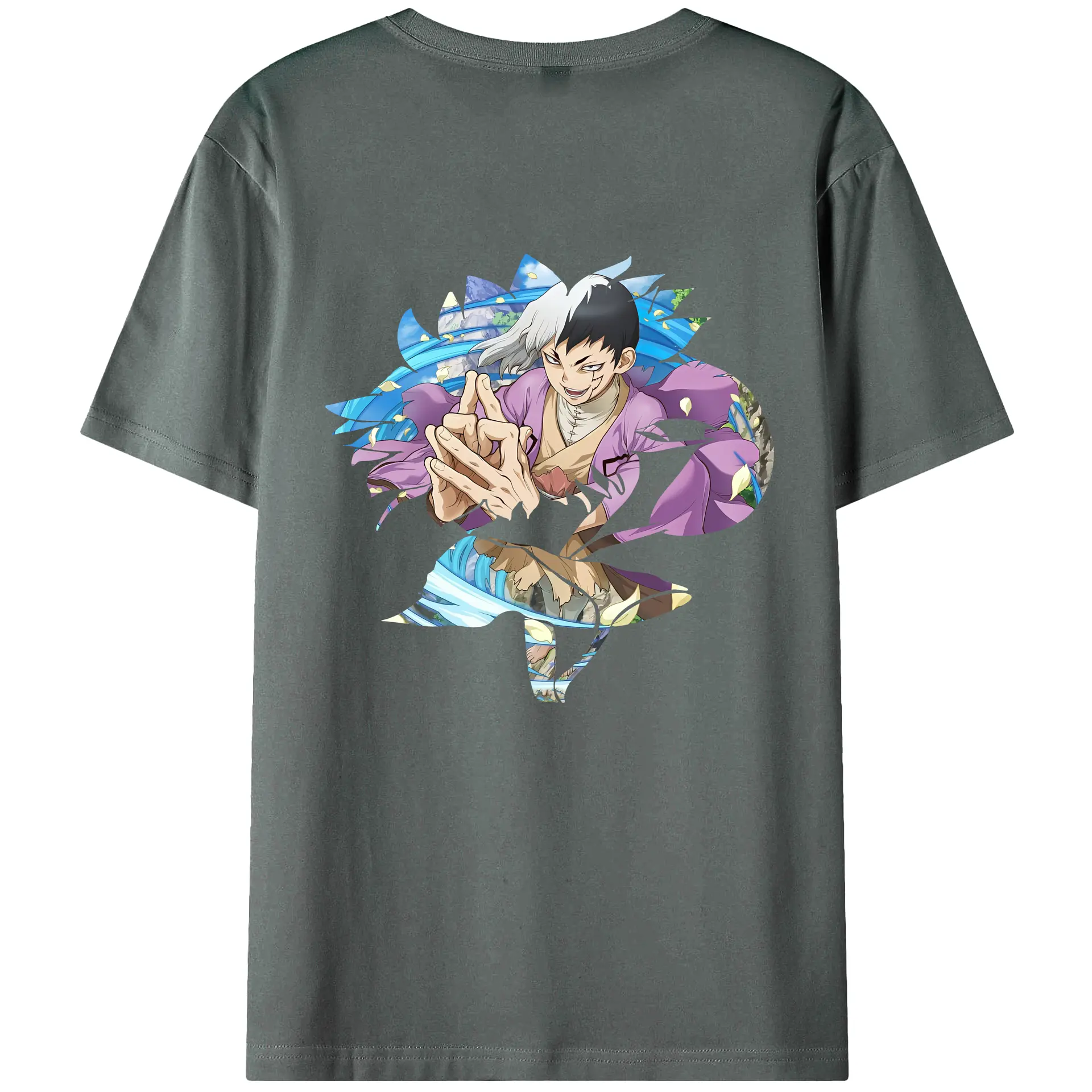 ドクターストーン グッズ,ゲン 銀狼 - 綿100% 半袖Tシャツ ・ フロントプリント ・ 快適 通気性 ・ 日常使い 散歩 スポーツ用