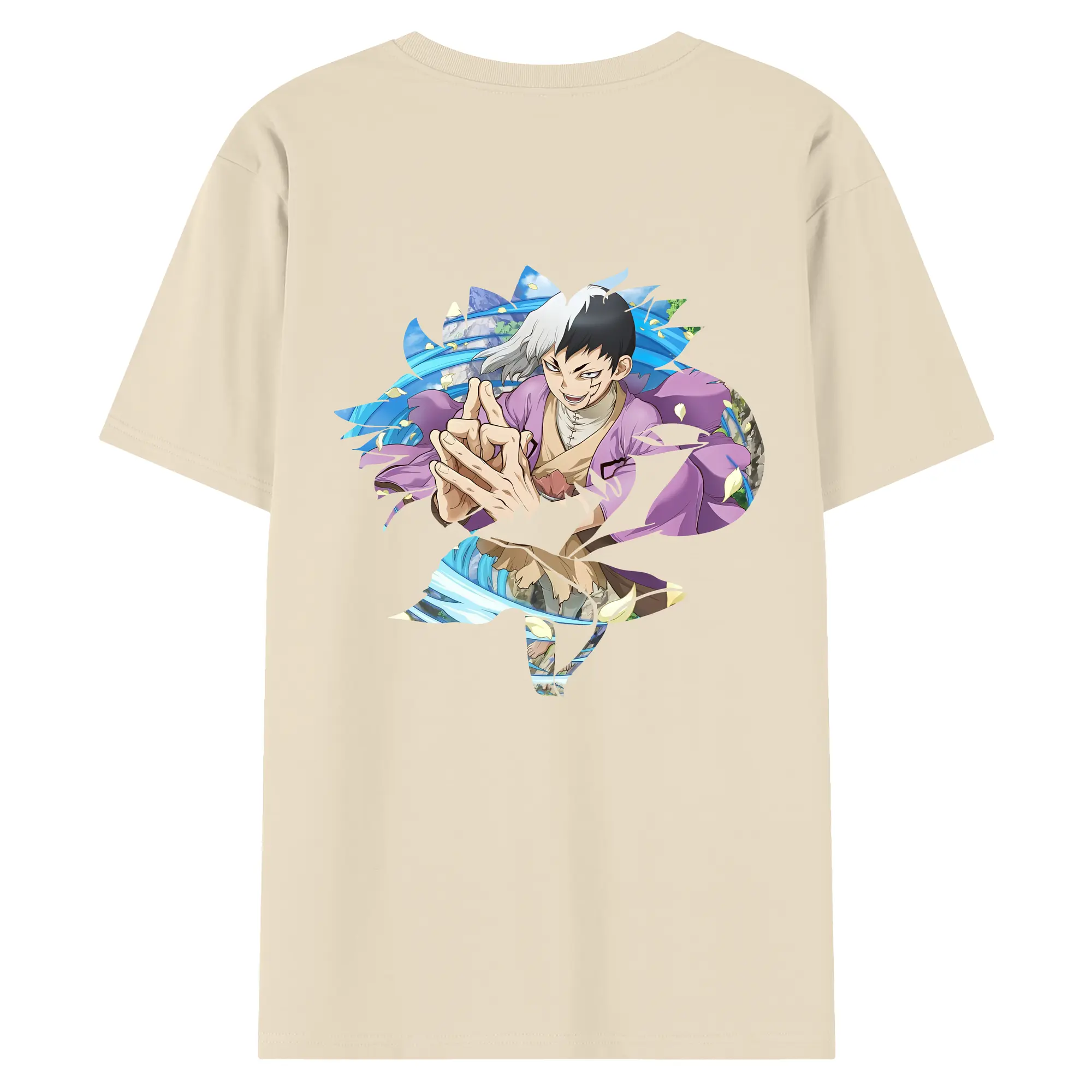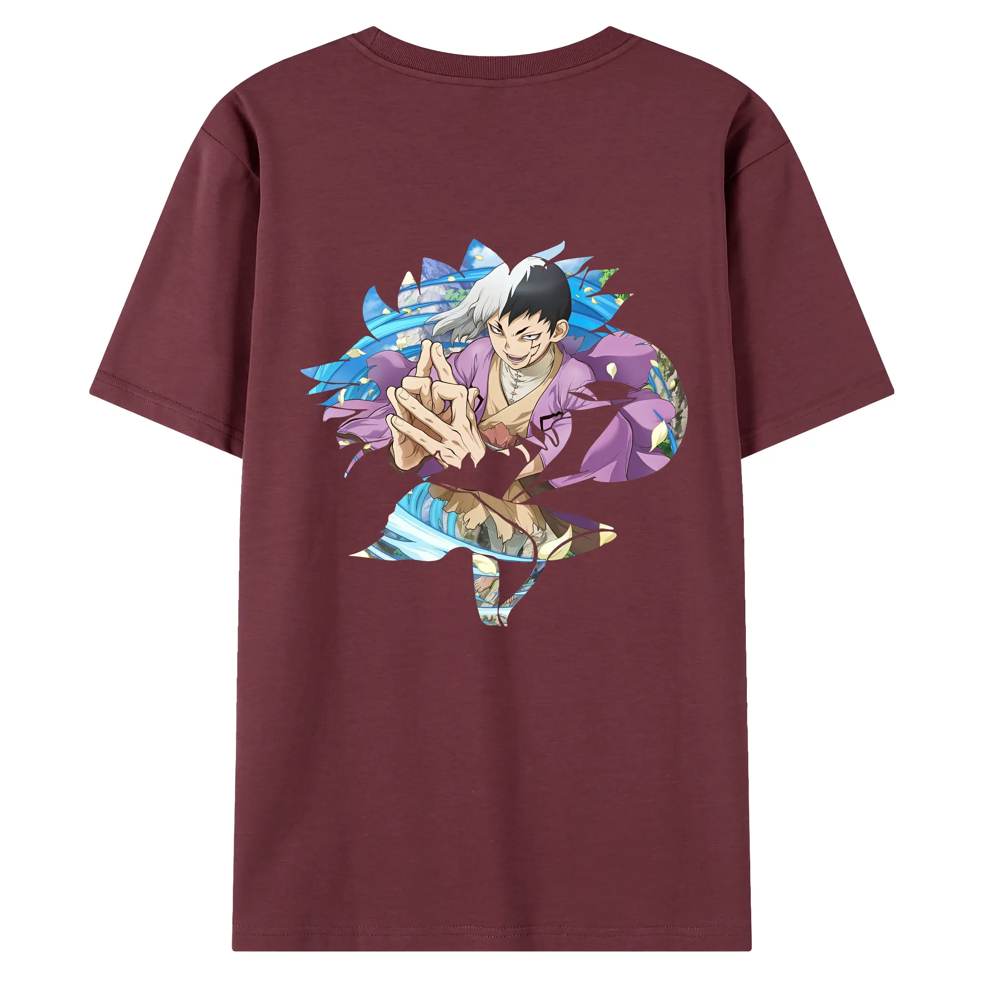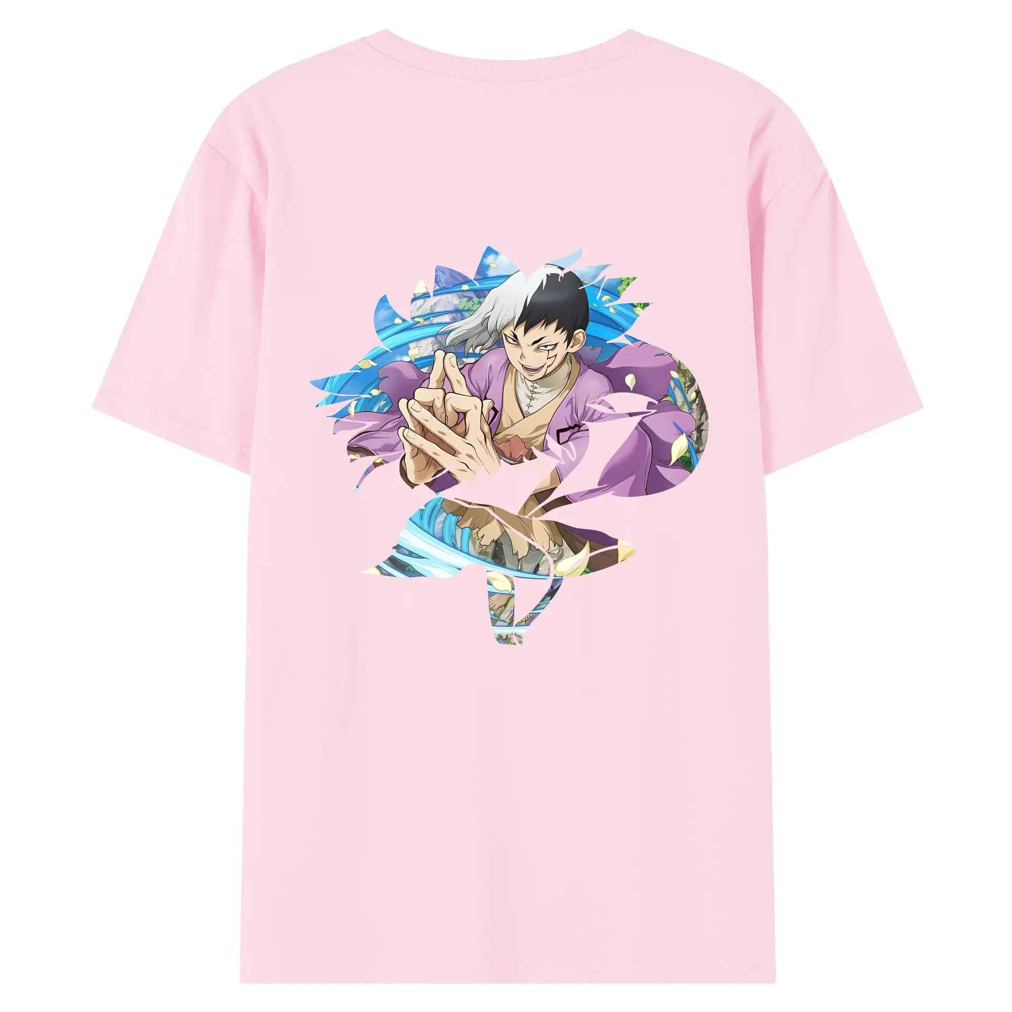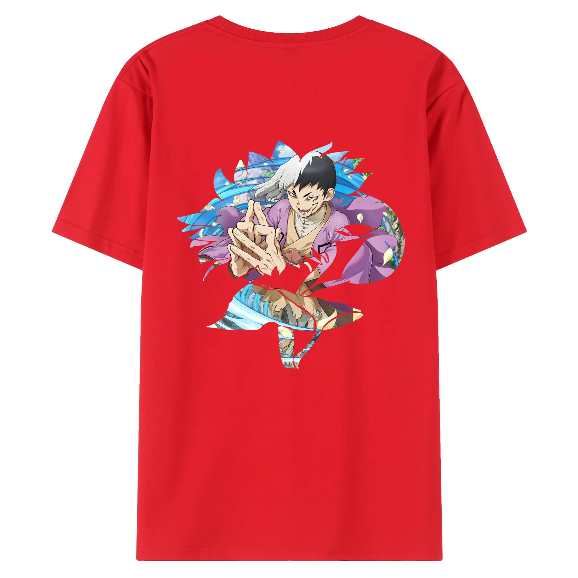 ドクターストーン グッズ,ゲン 銀狼 - 綿100% 半袖Tシャツ ・ フロントプリント ・ 快適 通気性 ・ 日常使い 散歩 スポーツ用