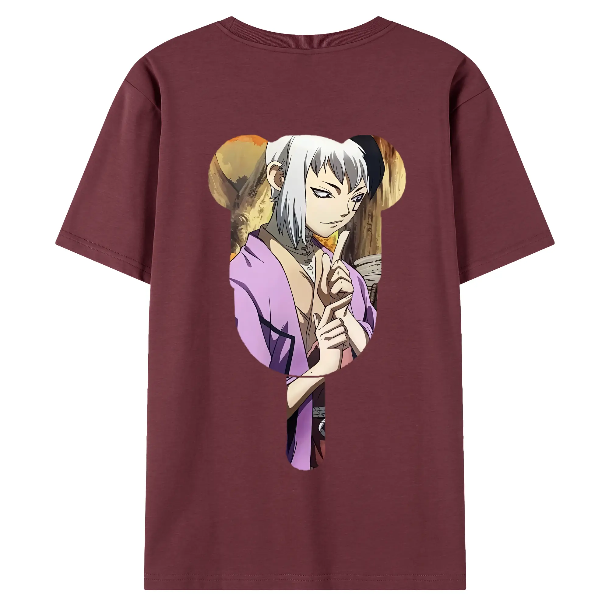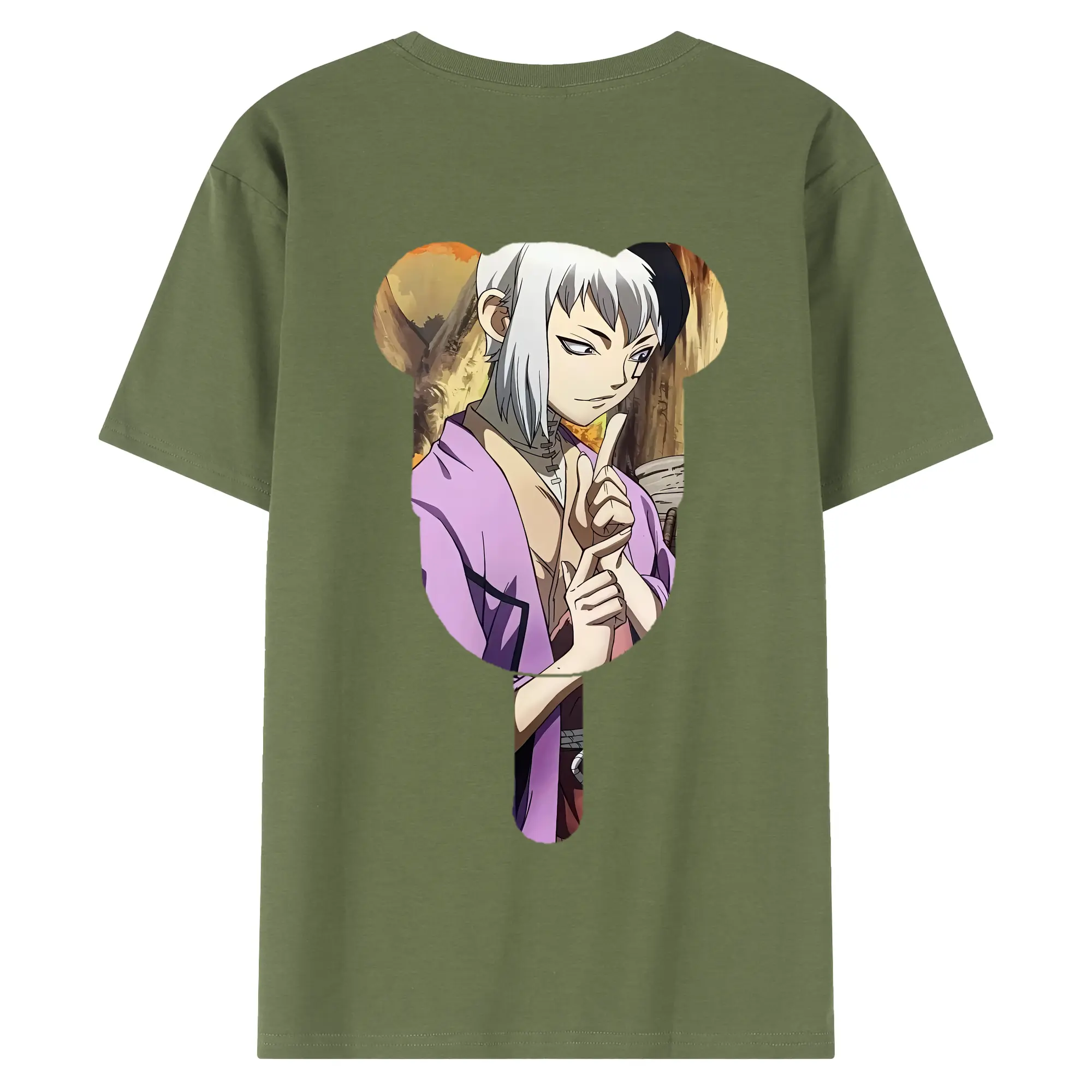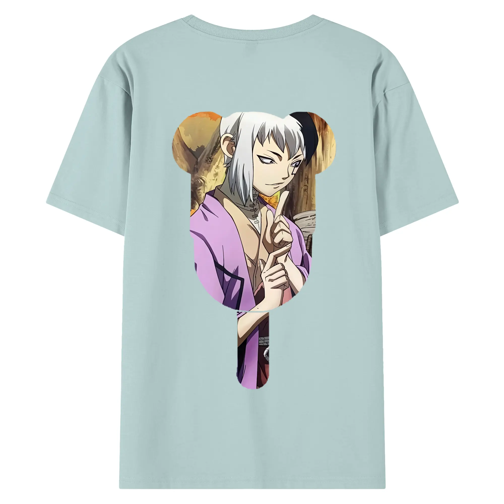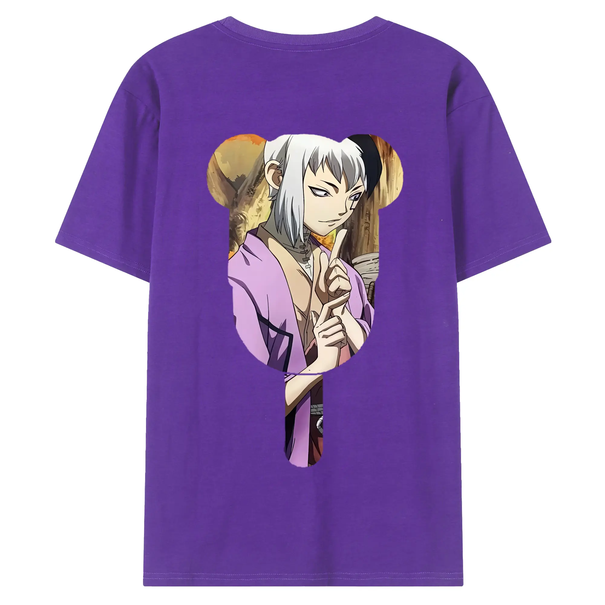 ドクターストーン グッズ,ゲン 銀狼 - 綿100% 半袖Tシャツ ・ フロントプリント ・ 快適 通気性 ・ 日常使い 散歩 スポーツ用