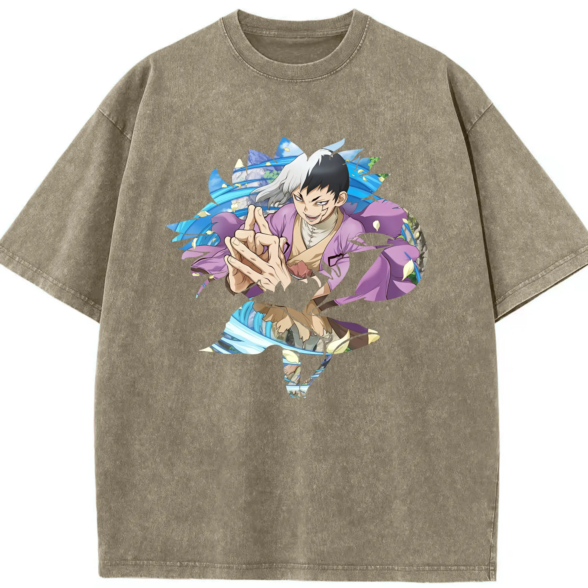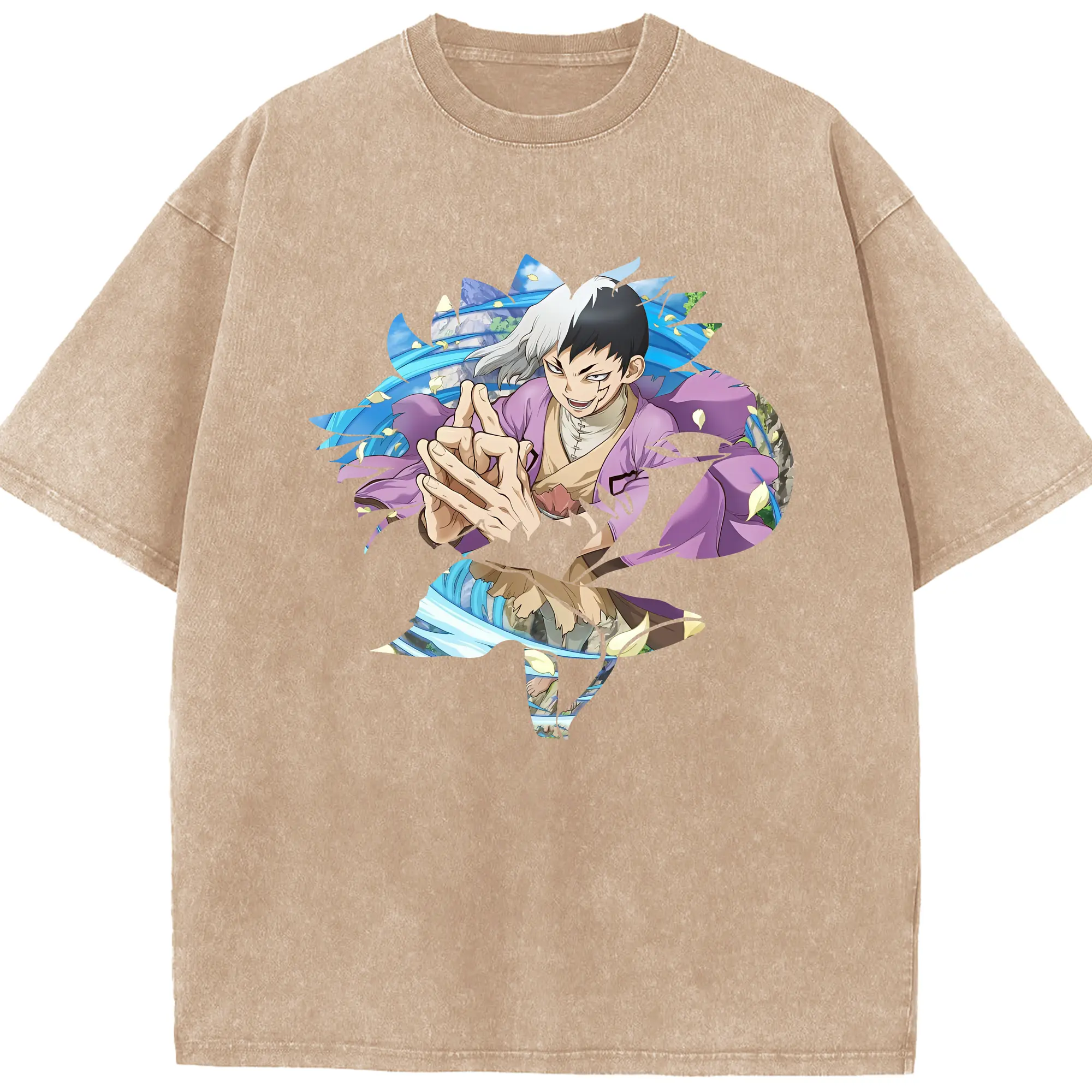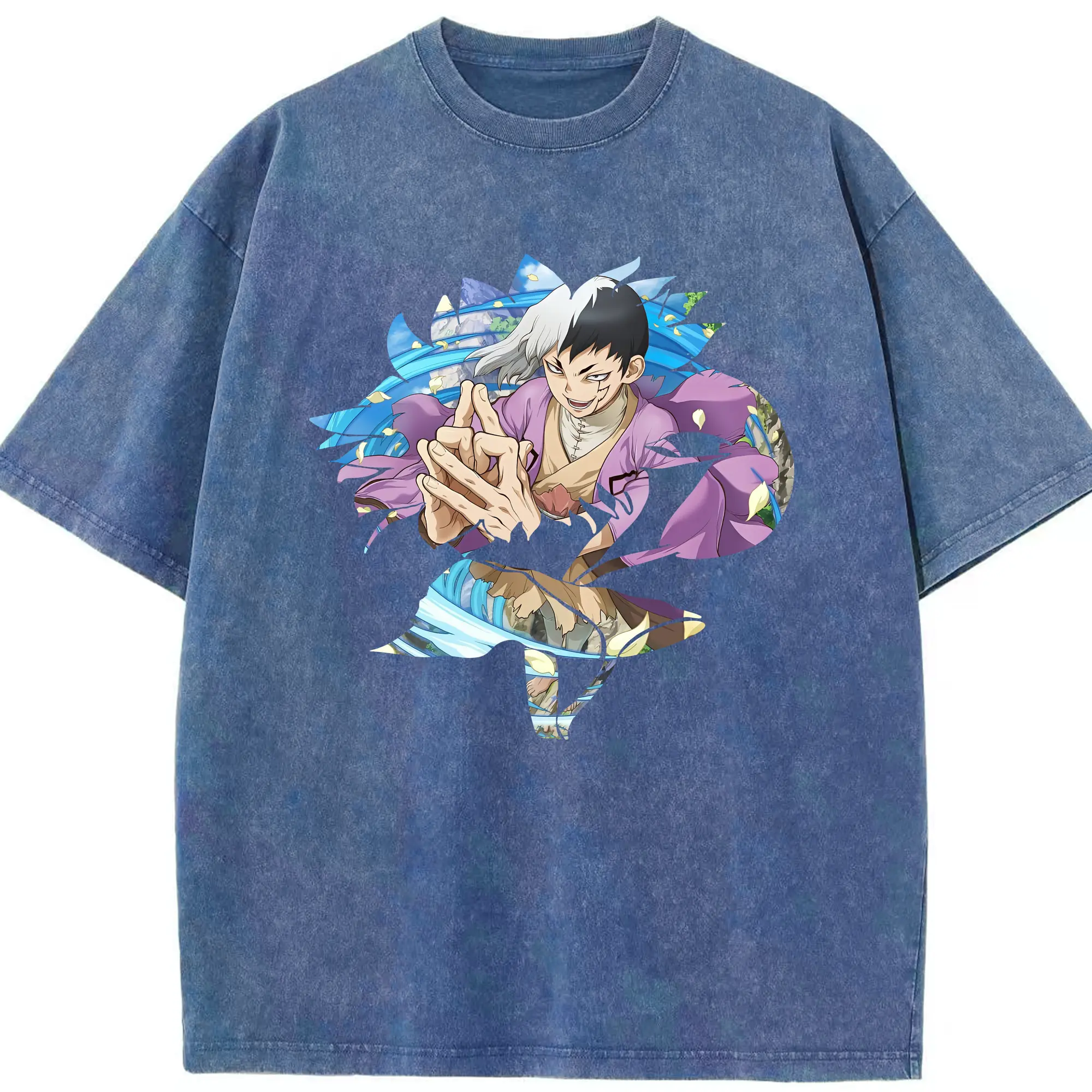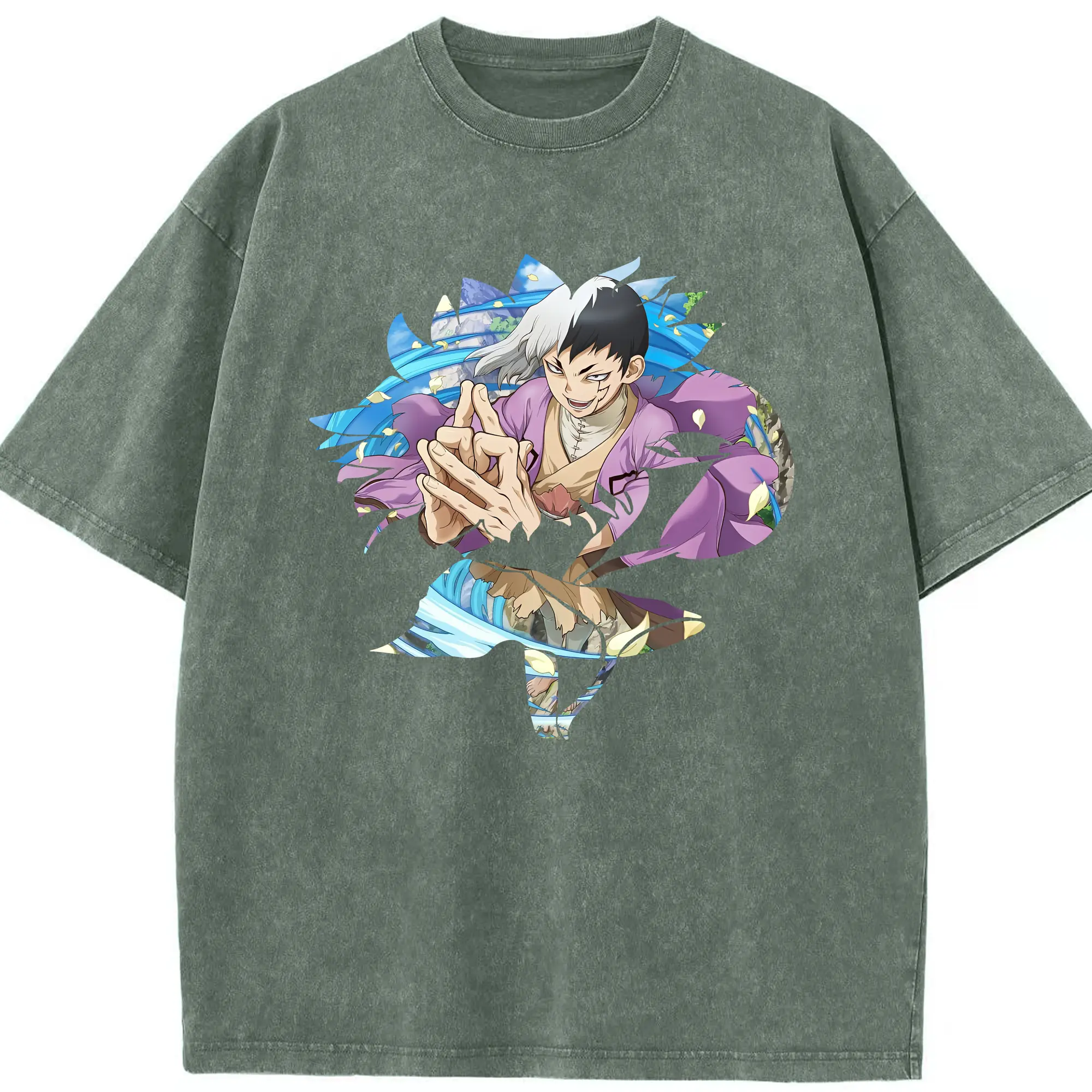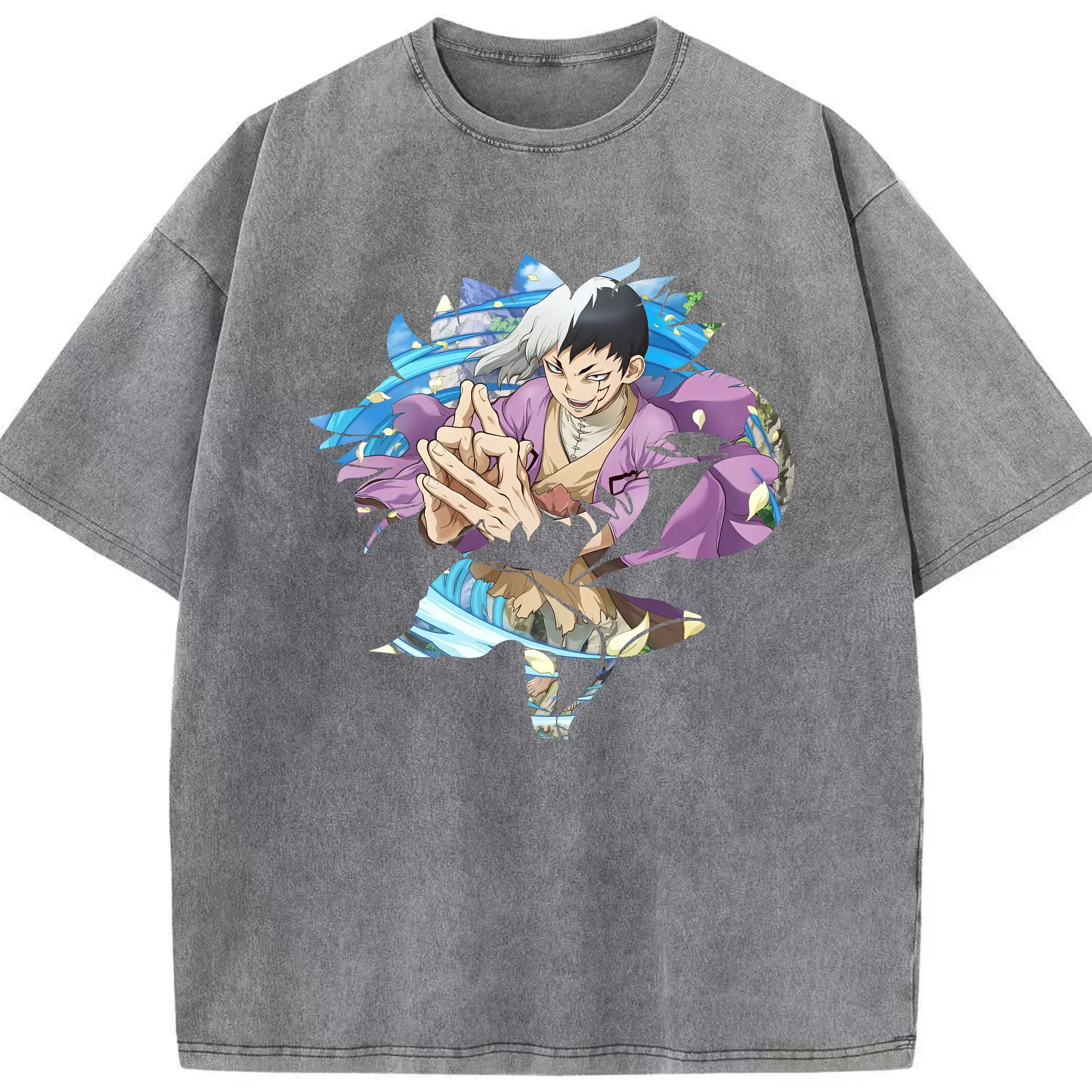ドクターストーン グッズ,ゲン 銀狼 - 綿100% ヴィンテージ風 半袖Tシャツ ・ 背面プリント ・ 柔らか肌触り ・ 通気性 快適 ・ スポーツ カジュアル 外出用