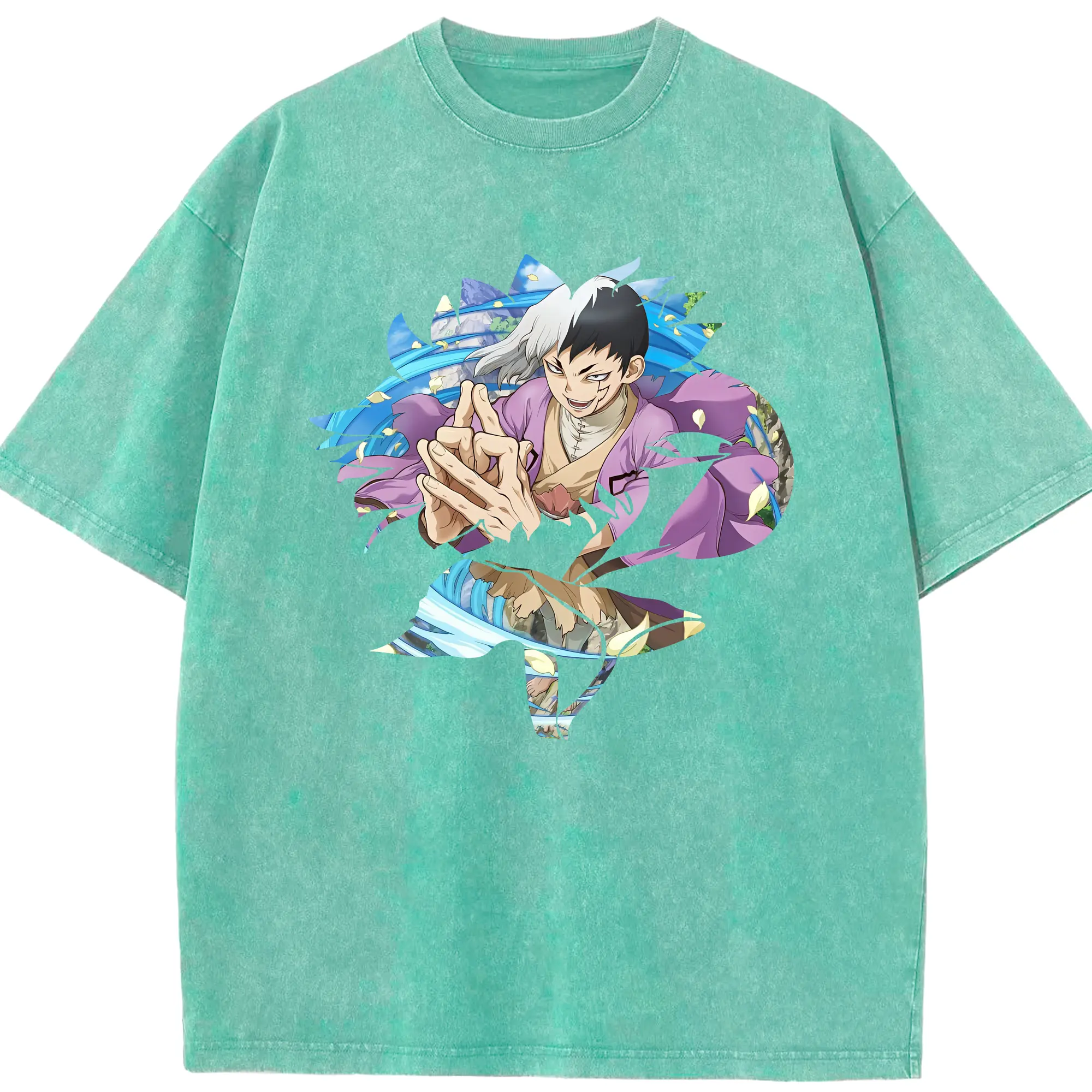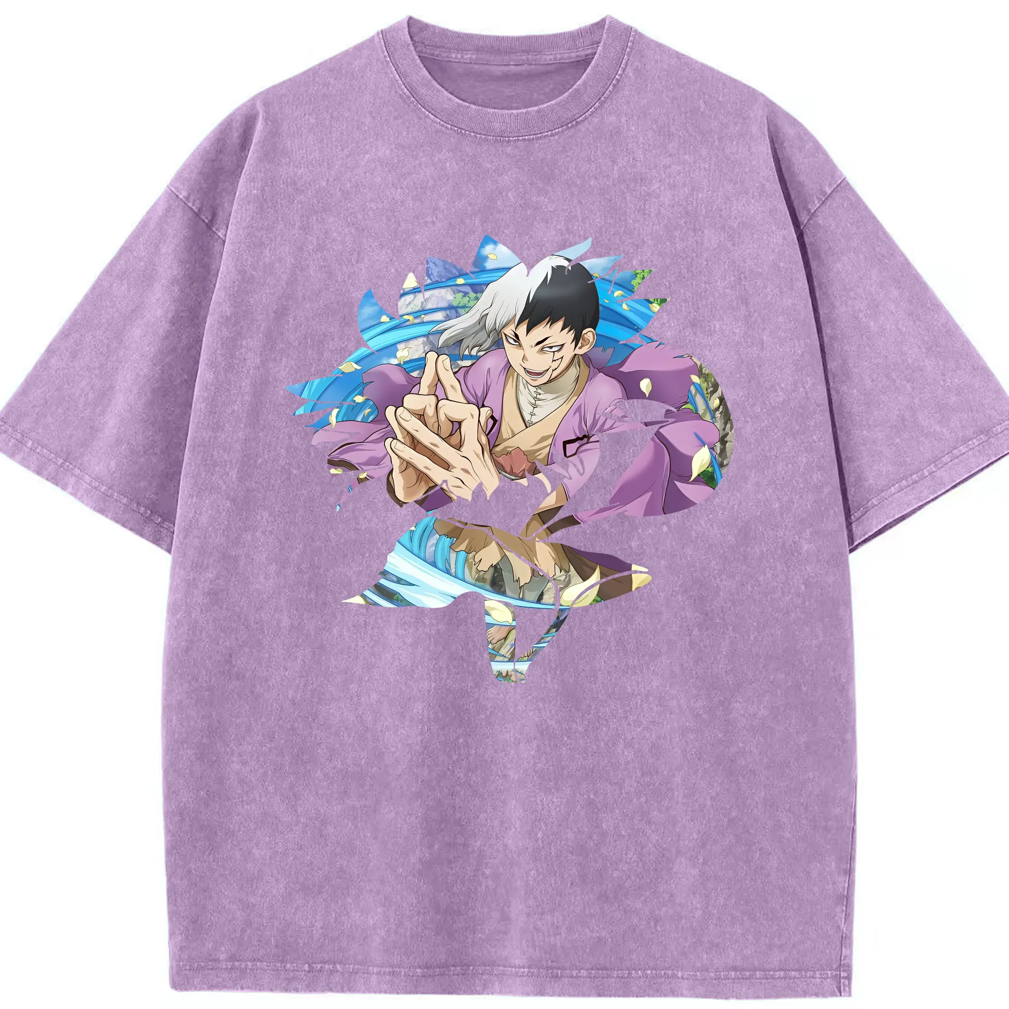 ドクターストーン グッズ,ゲン 銀狼 - 綿100% 半袖Tシャツ ・ バックプリント ・ 快適 通気性 ・ 日常使い 散歩 スポーツ用