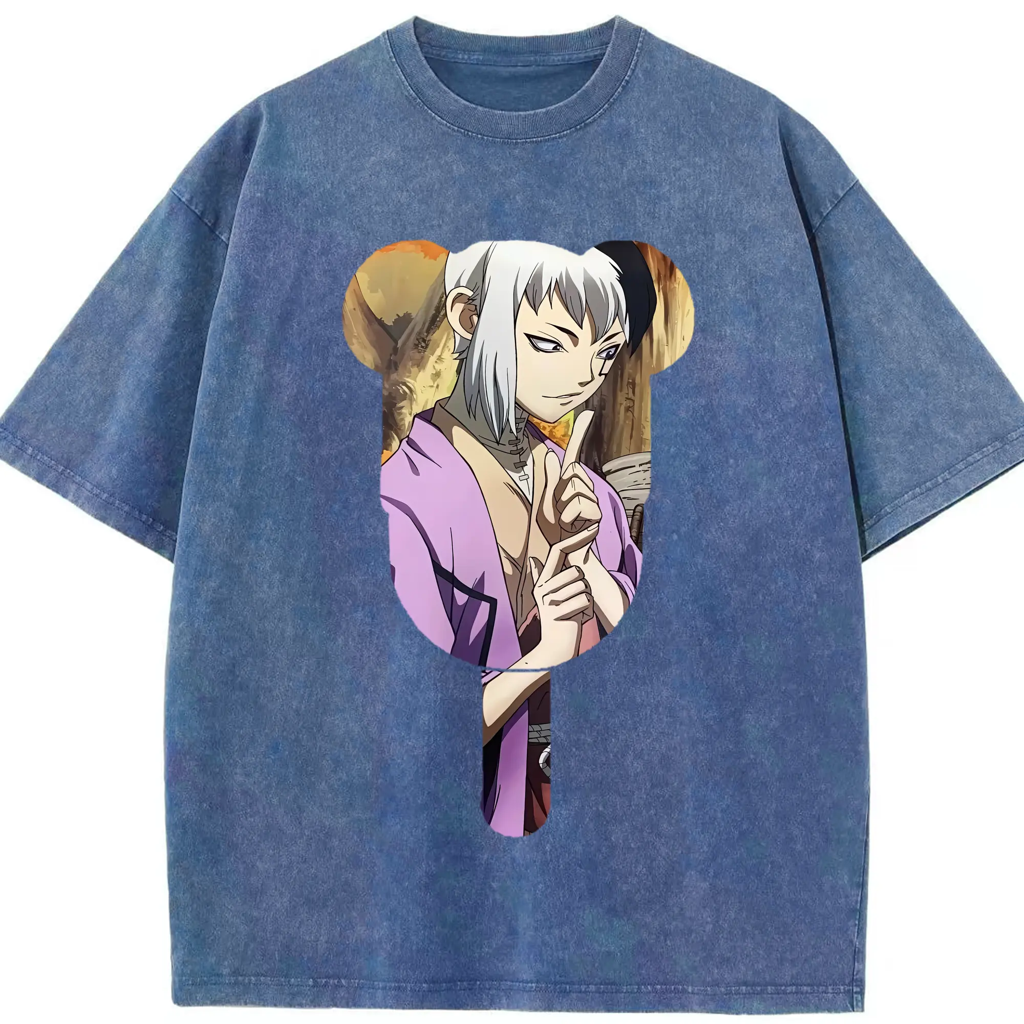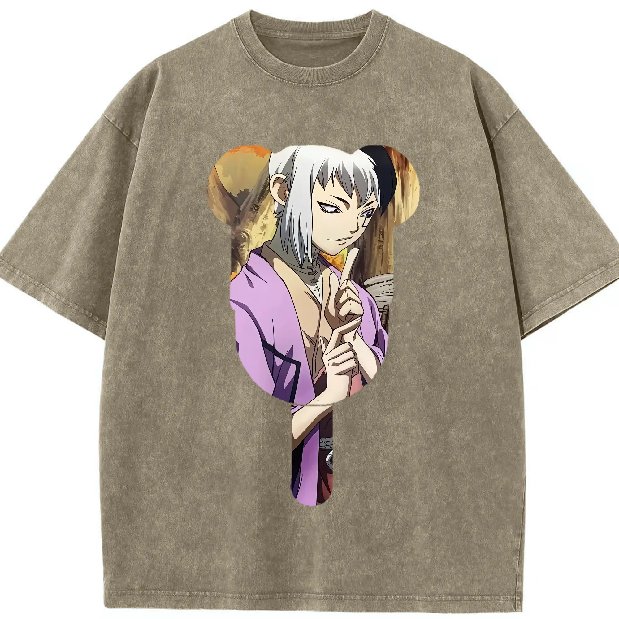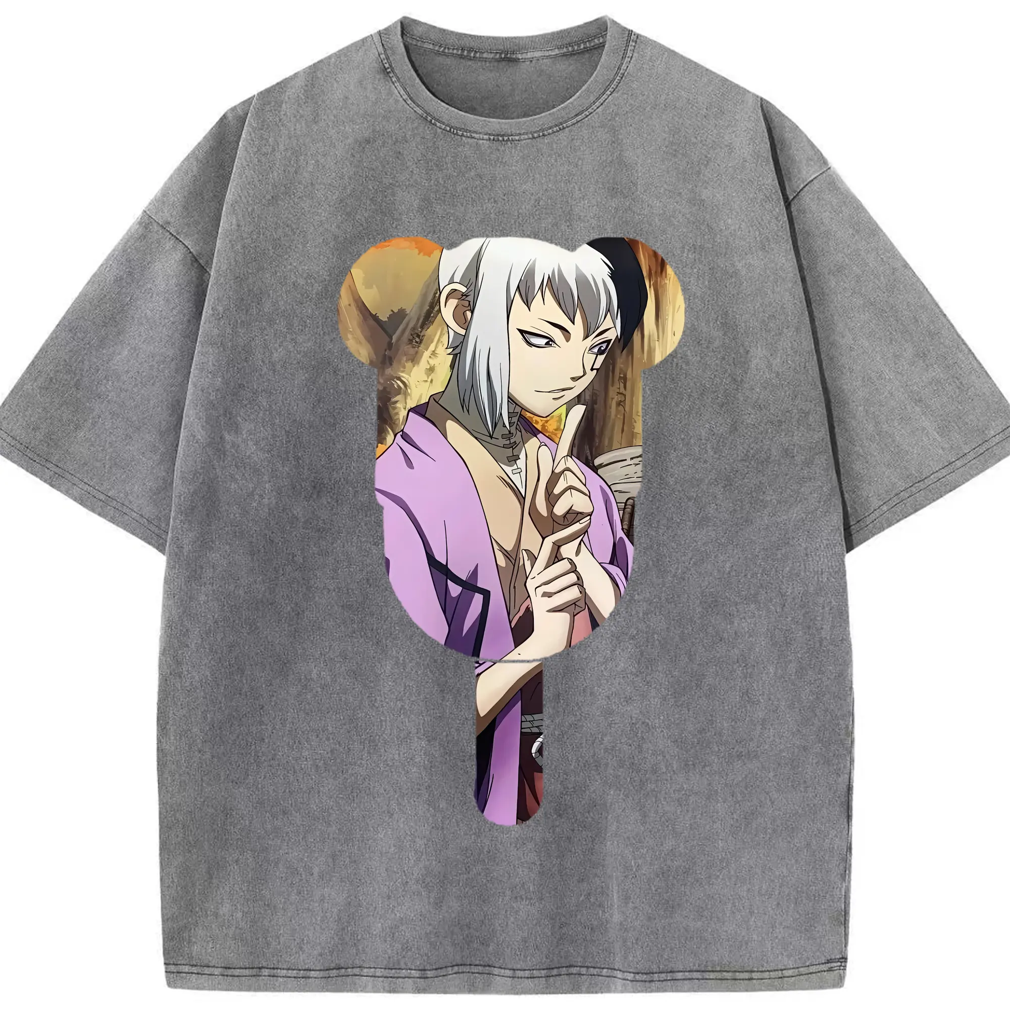 ドクターストーン グッズ,ゲン 銀狼 - 綿100% ヴィンテージ風 半袖Tシャツ ・ 背面プリント ・ 柔らか肌触り ・ 通気性 快適 ・ スポーツ カジュアル 外出用