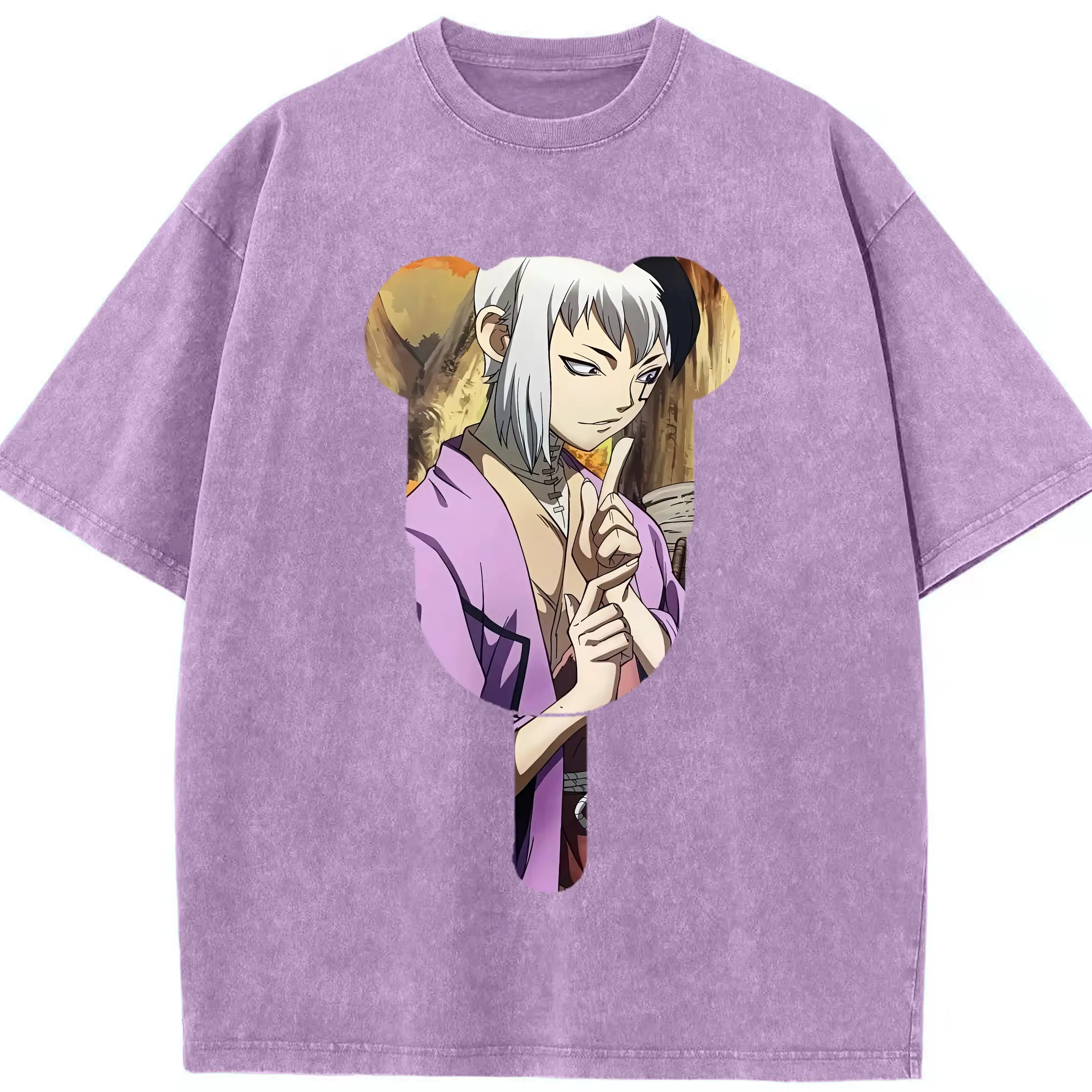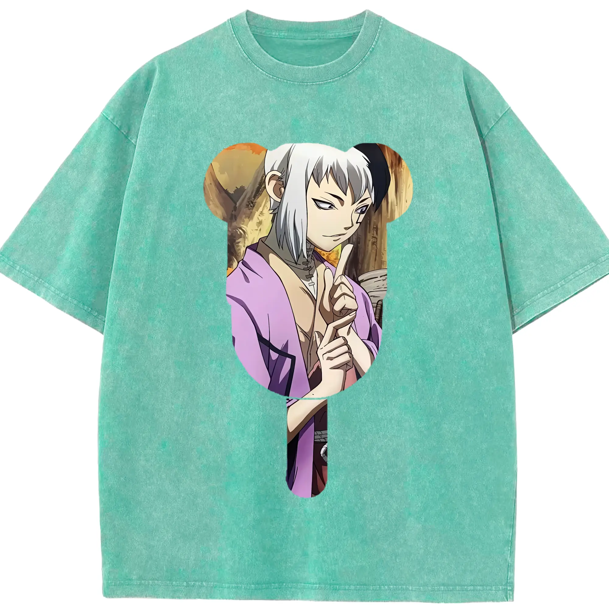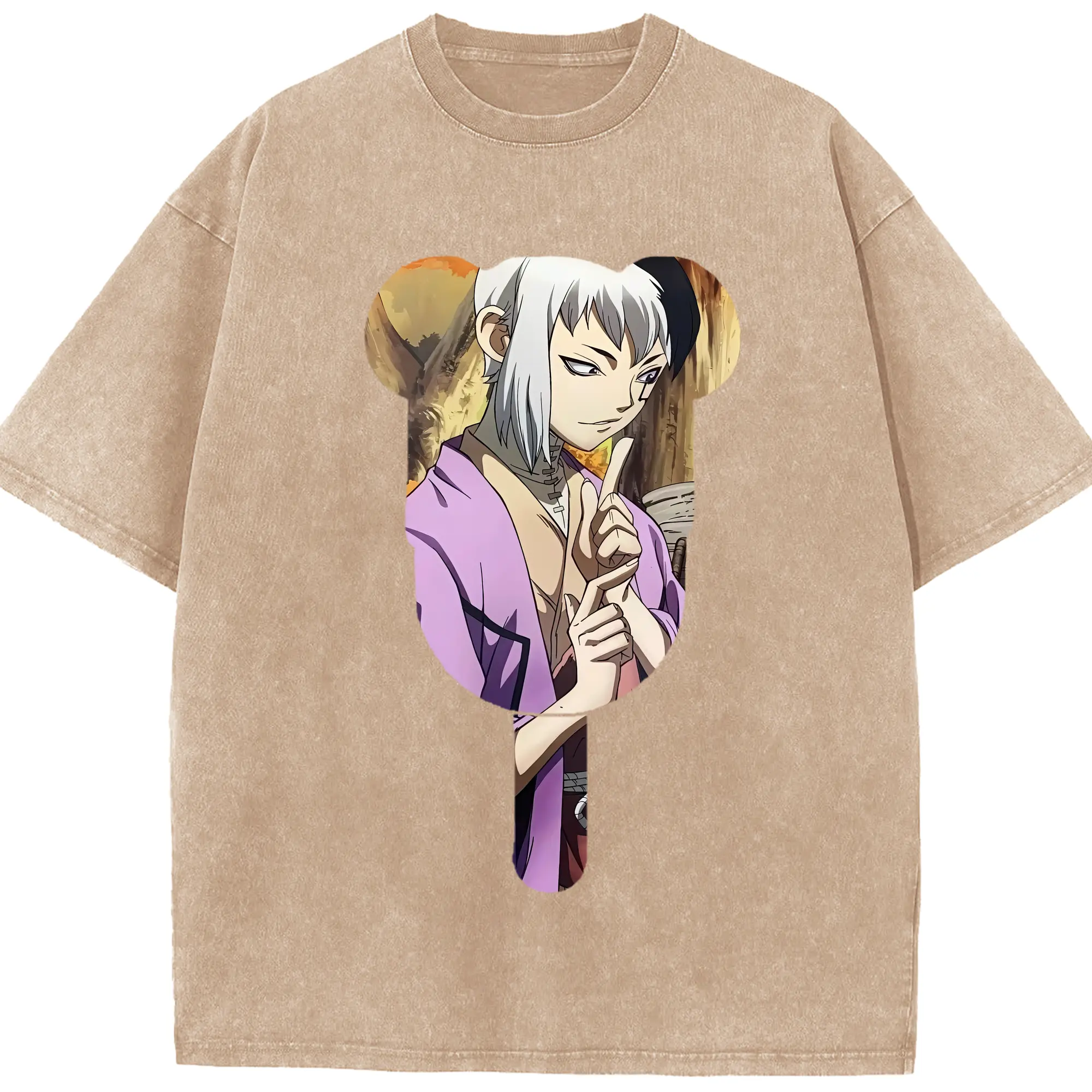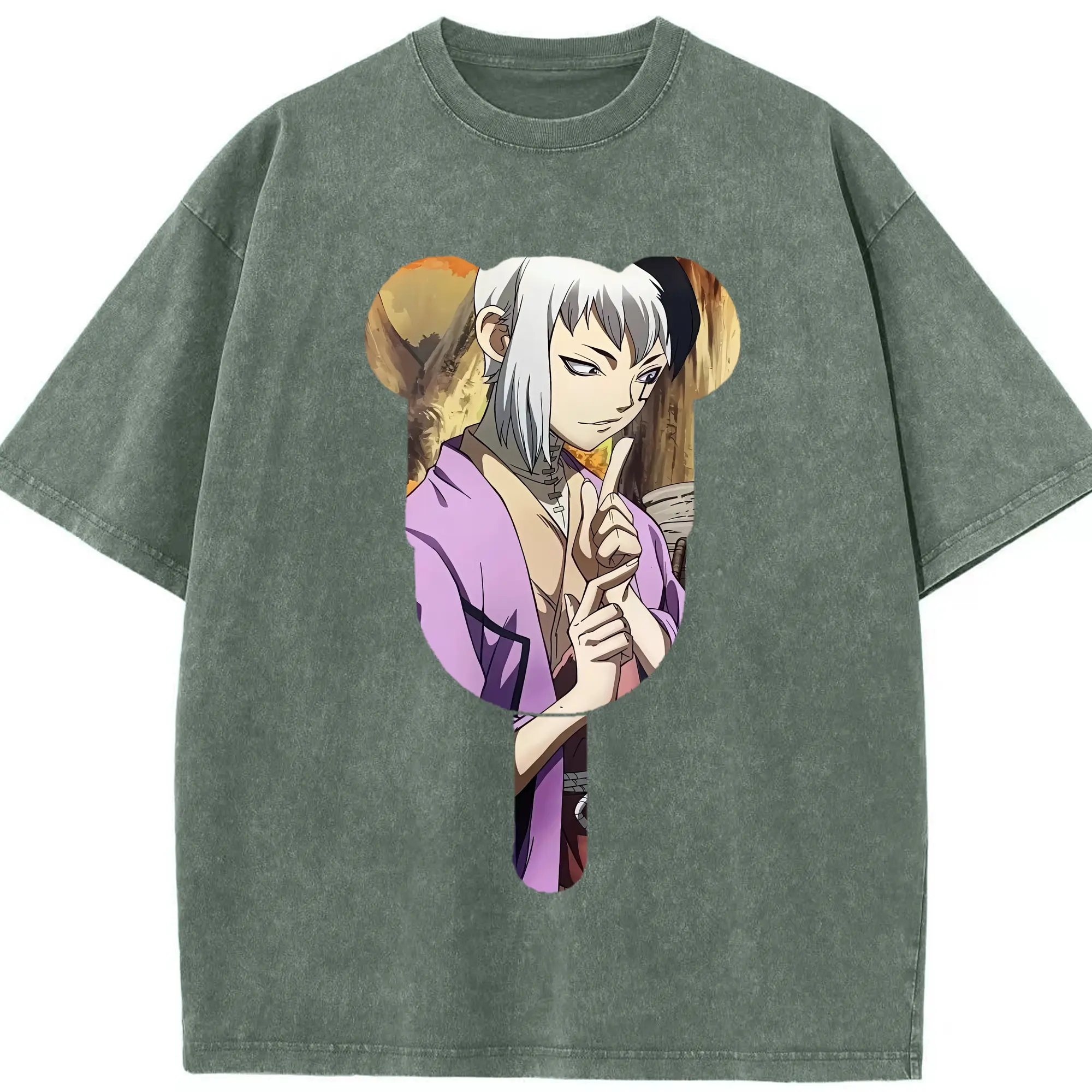 ドクターストーン グッズ,ゲン 銀狼 - 綿100% ヴィンテージ風 半袖Tシャツ ・ 背面プリント ・ 柔らか肌触り ・ 通気性 快適 ・ スポーツ カジュアル 外出用