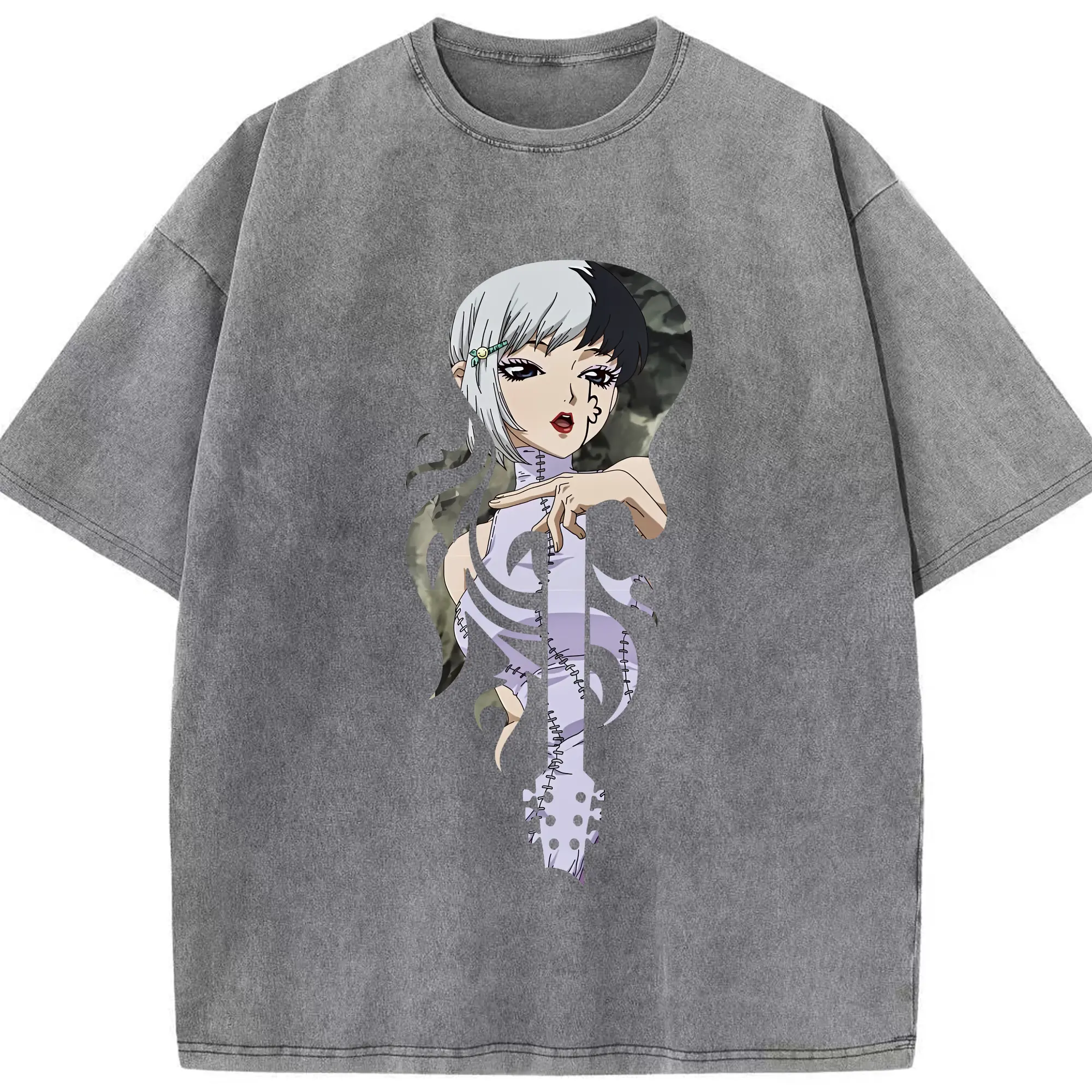 ドクターストーン グッズ,ゲン 銀狼 - 綿100% ヴィンテージ風 半袖Tシャツ ・ 背面プリント ・ 柔らか肌触り ・ 通気性 快適 ・ スポーツ カジュアル 外出用
