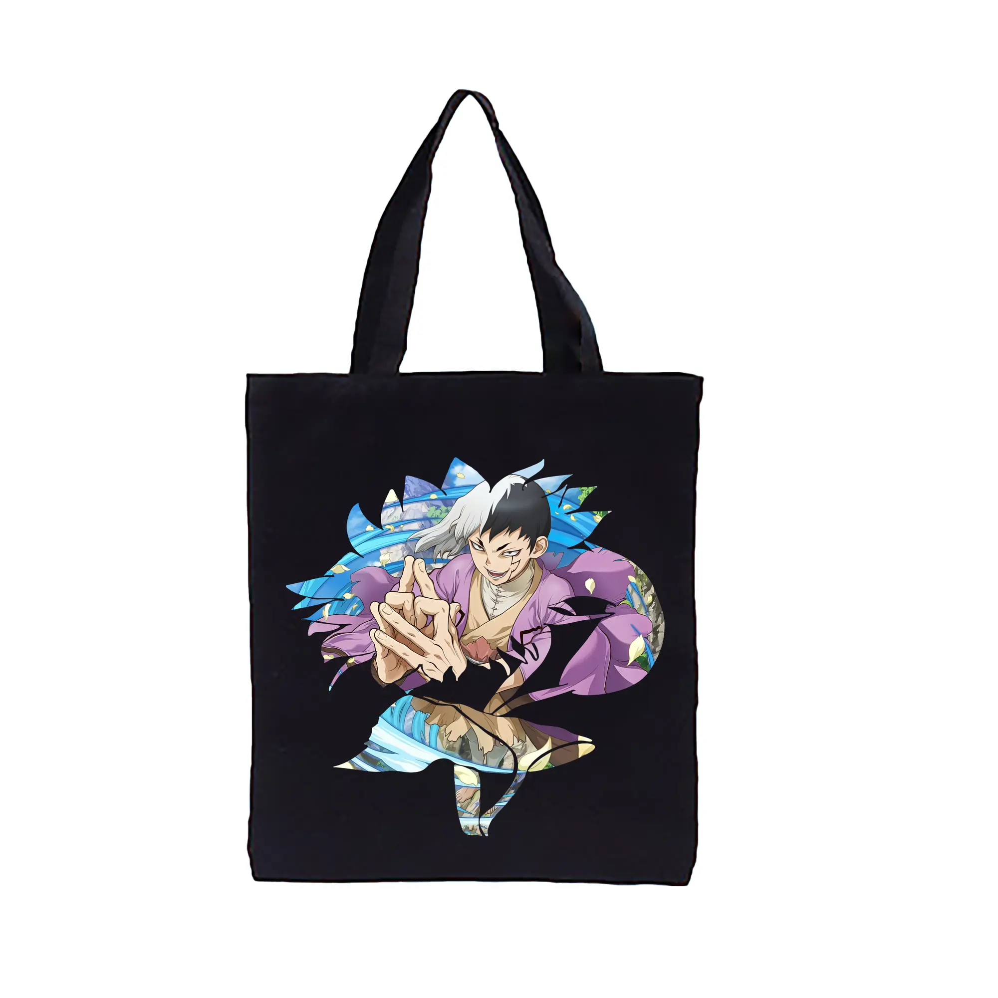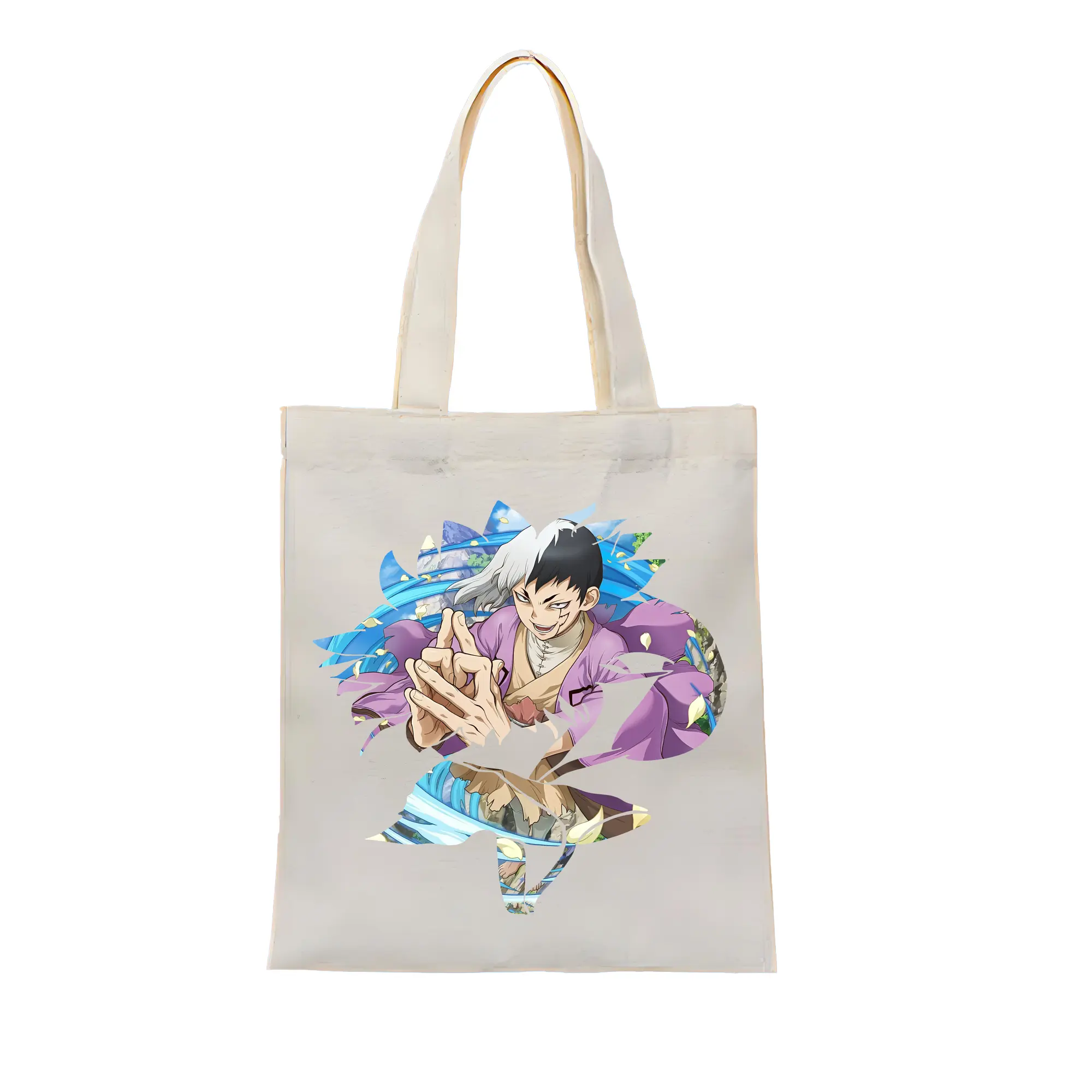 ドクターストーン グッズ,ゲン 銀狼 - 縦型キャンバス手提げバッグ(トートバッグ) ・ キャンバス素材 ・ ショッピング用 ・ 軽量 丈夫 お手入れ簡単
