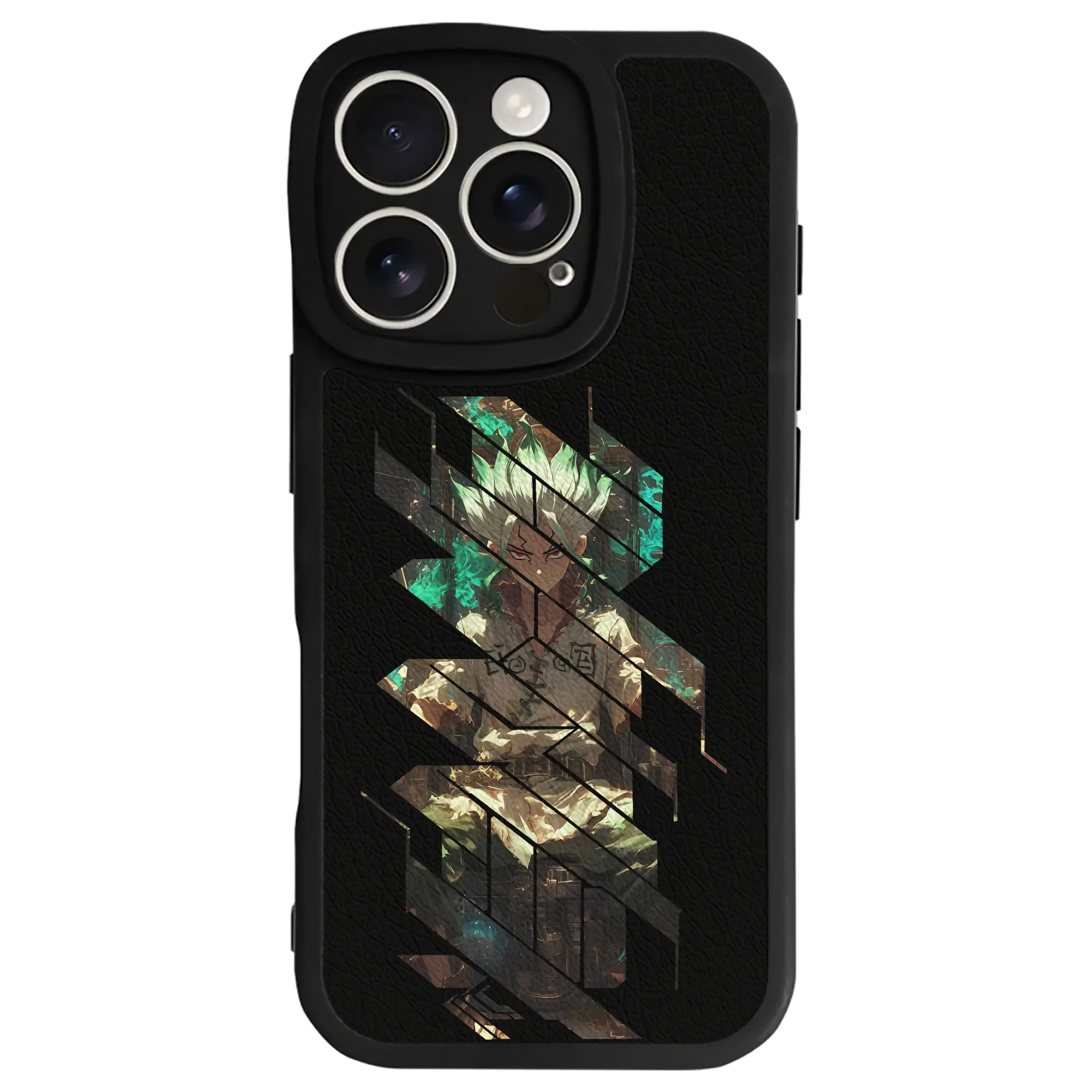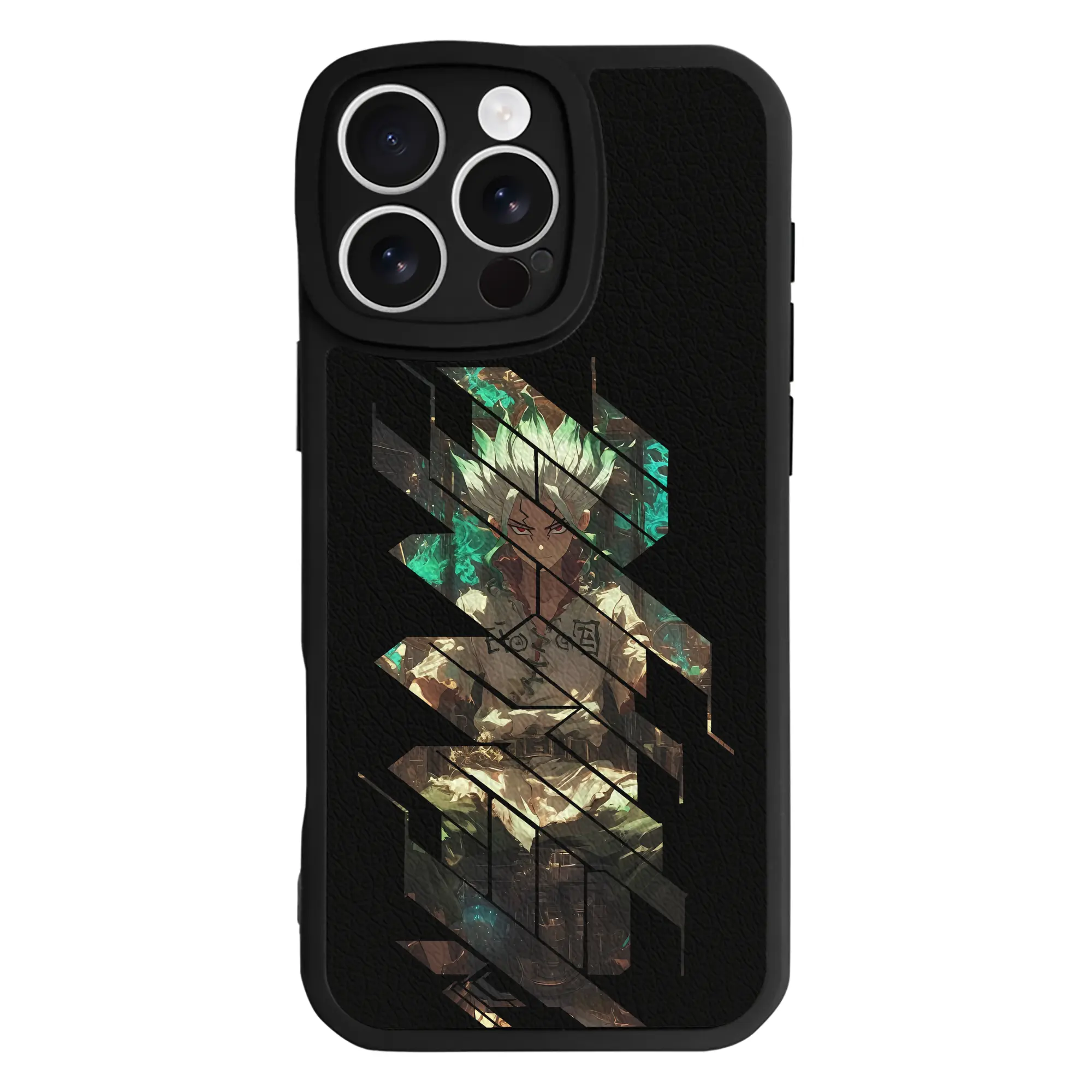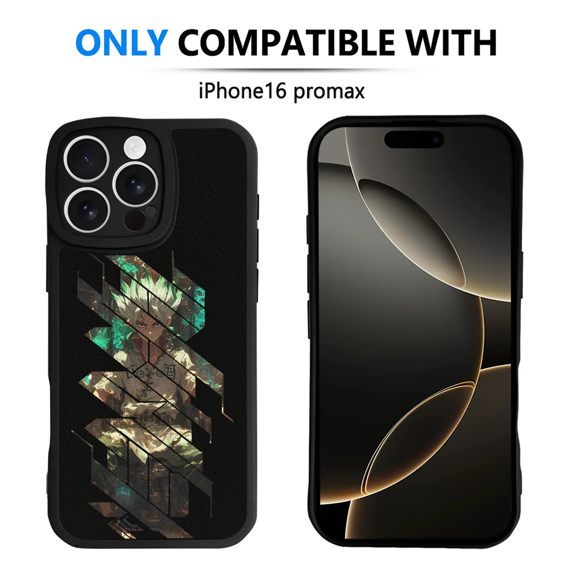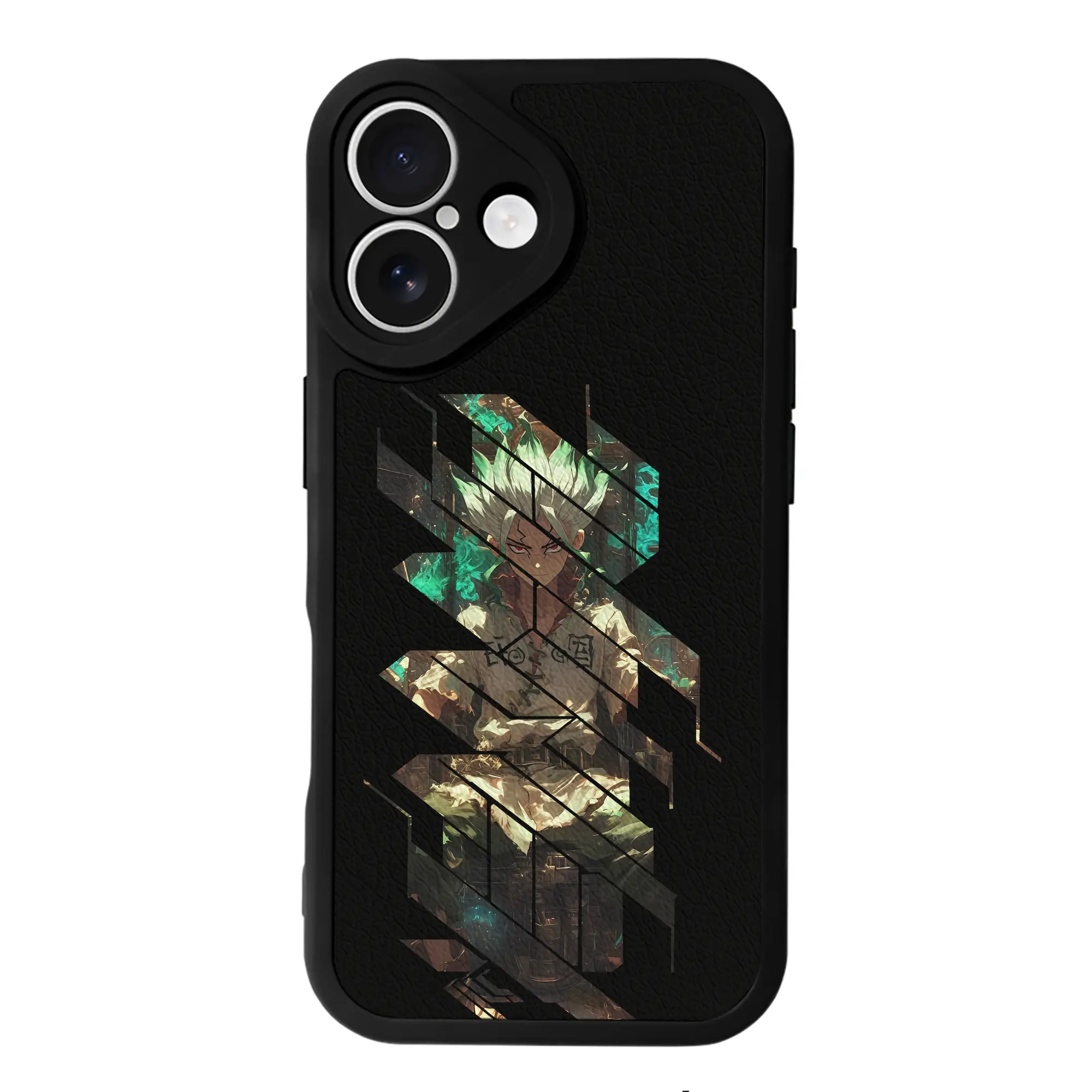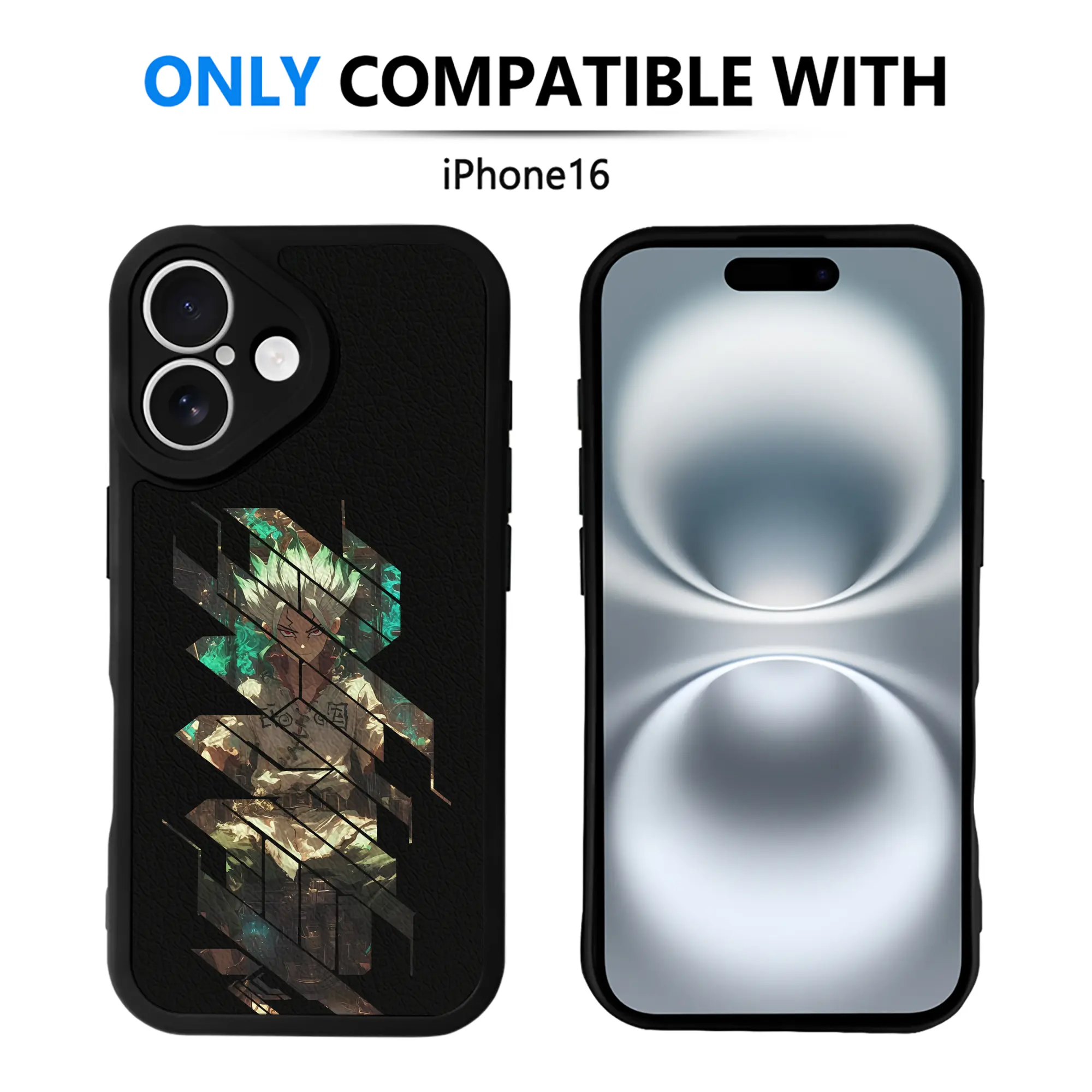 ドクターストーン グッズ,石神千空 - IPhone 16シリーズ対応 ・ シリコンスマホケース ・ レザー調 ・ 高精度フィット ・ 耐衝撃 ・ ワイヤレス充電対応 ・ 精密カット