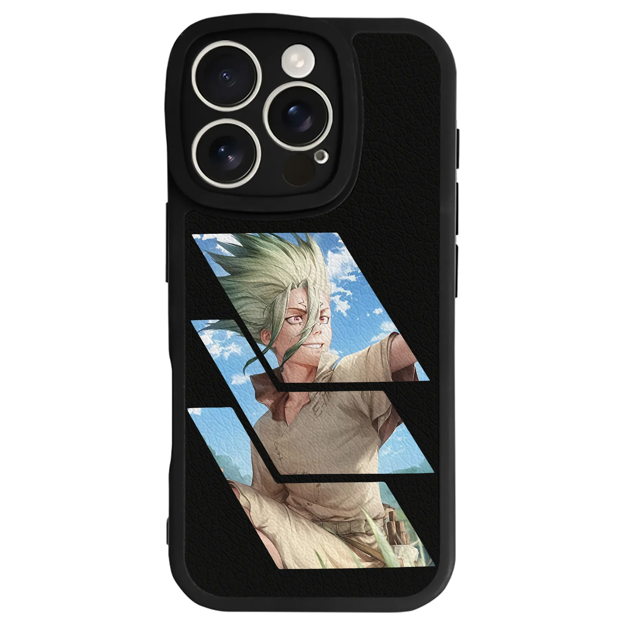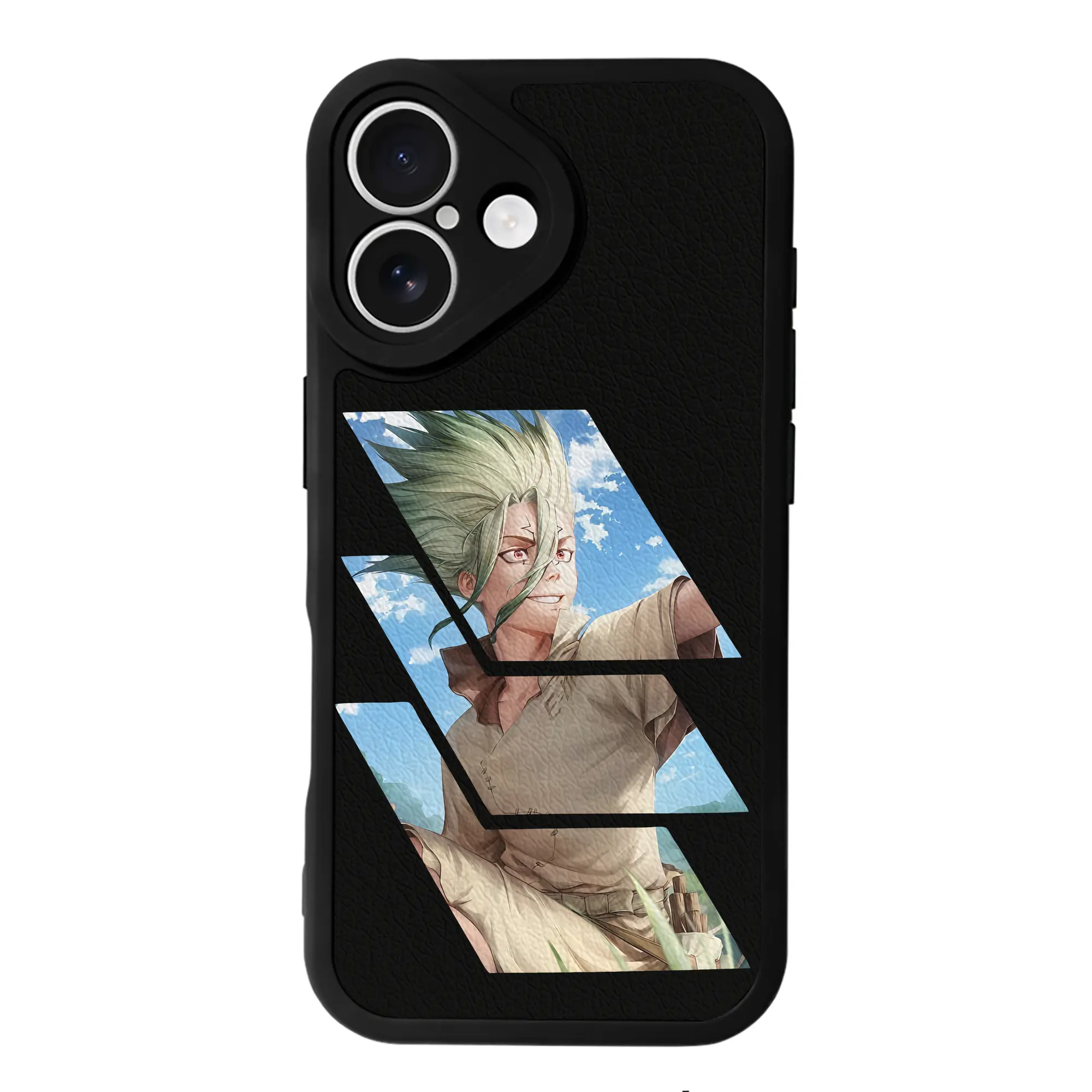 ドクターストーン グッズ,石神千空 - IPhone 16シリーズ対応 ・ シリコンスマホケース ・ レザー調 ・ 高精度フィット ・ 耐衝撃 ・ ワイヤレス充電対応 ・ 精密カット