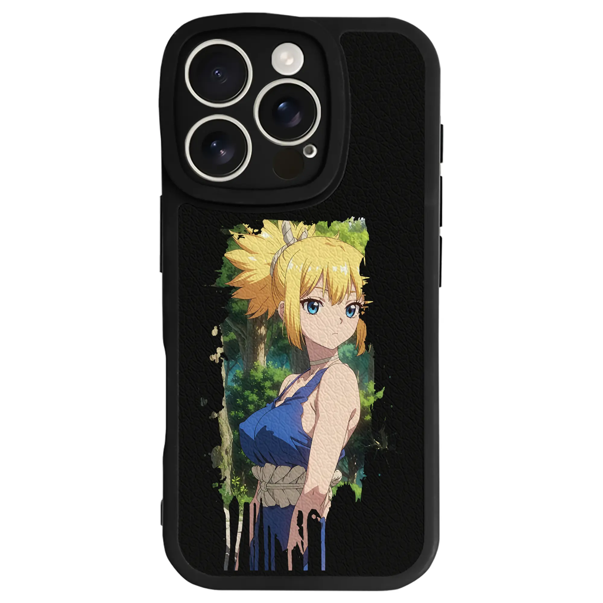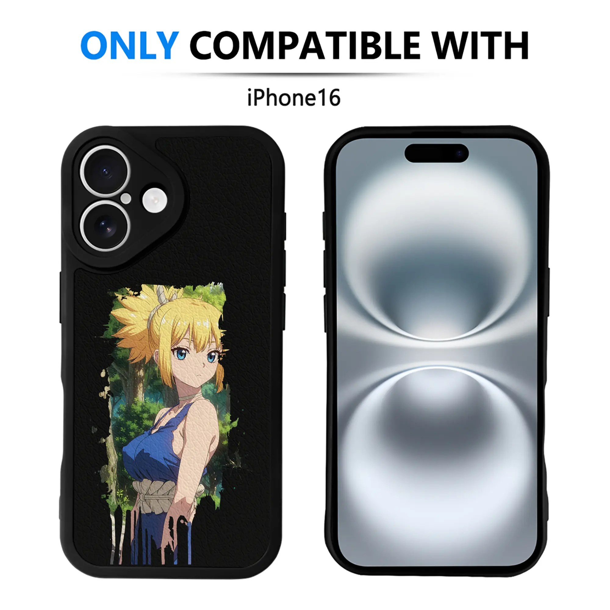 ドクターストーン グッズ,コハク - IPhone 16シリーズ対応 ・ シリコンスマホケース ・ レザー調 ・ 高精度フィット ・ 耐衝撃 ・ ワイヤレス充電対応 ・ 精密カット
