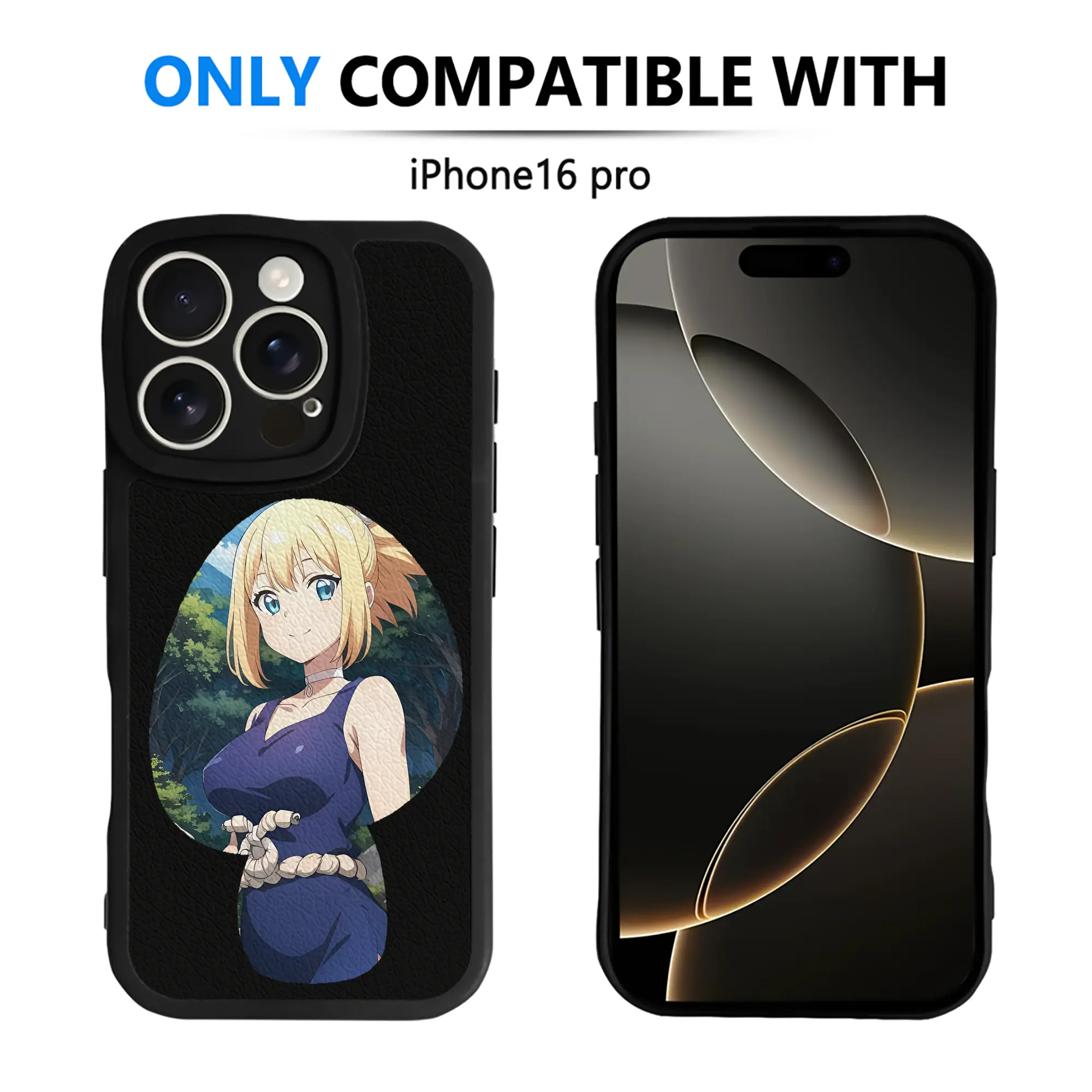 ドクターストーン グッズ,コハク - IPhone 16シリーズ対応 ・ シリコンスマホケース ・ レザー調 ・ 高精度フィット ・ 耐衝撃 ・ ワイヤレス充電対応 ・ 精密カット