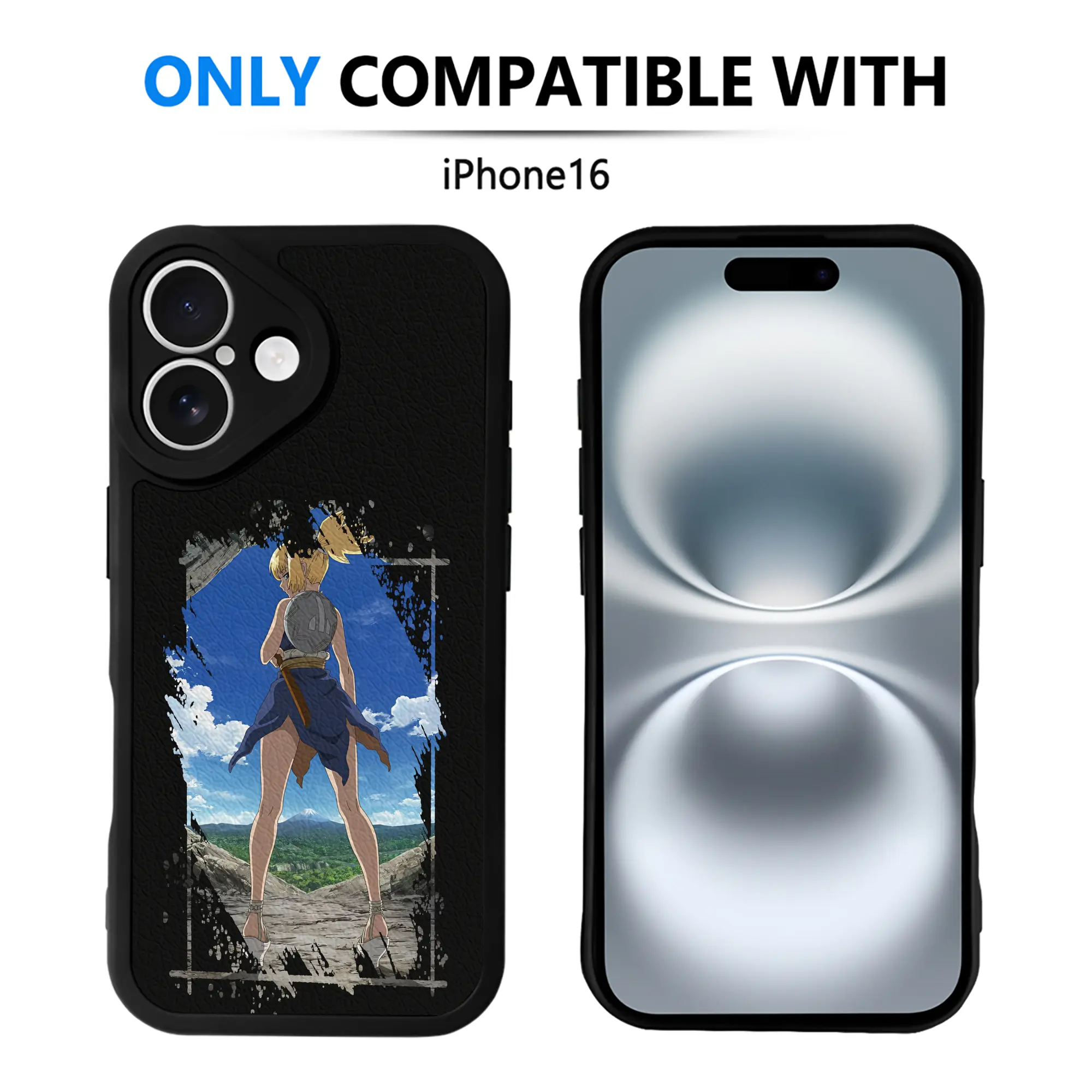 ドクターストーン グッズ,コハク - IPhone 16シリーズ対応 ・ シリコンスマホケース ・ レザー調 ・ 高精度フィット ・ 耐衝撃 ・ ワイヤレス充電対応 ・ 精密カット