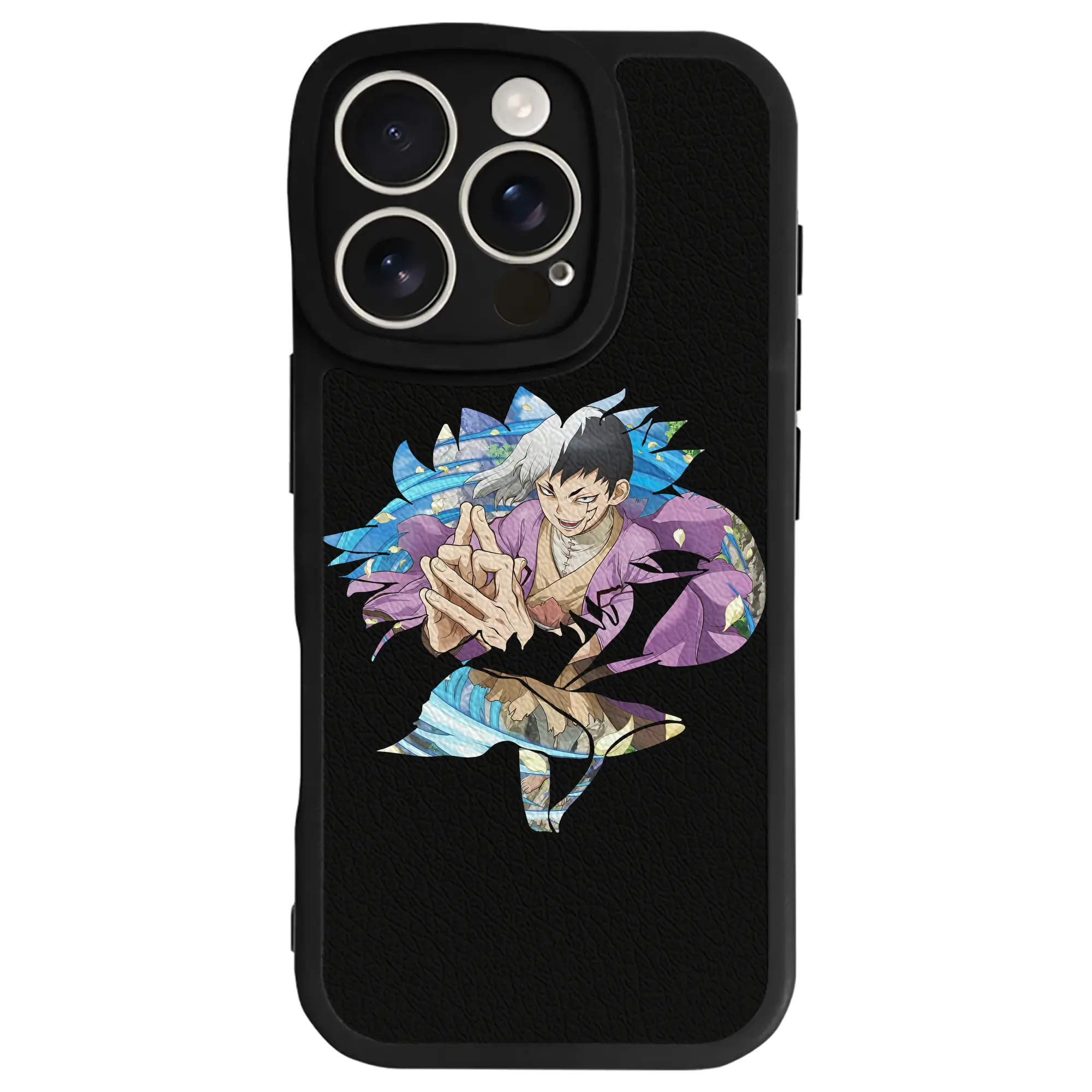 ドクターストーン グッズ,ゲン 銀狼 - IPhone 16シリーズ対応 ・ シリコンスマホケース ・ レザー調 ・ 高精度フィット ・ 耐衝撃 ・ ワイヤレス充電対応 ・ 精密カット