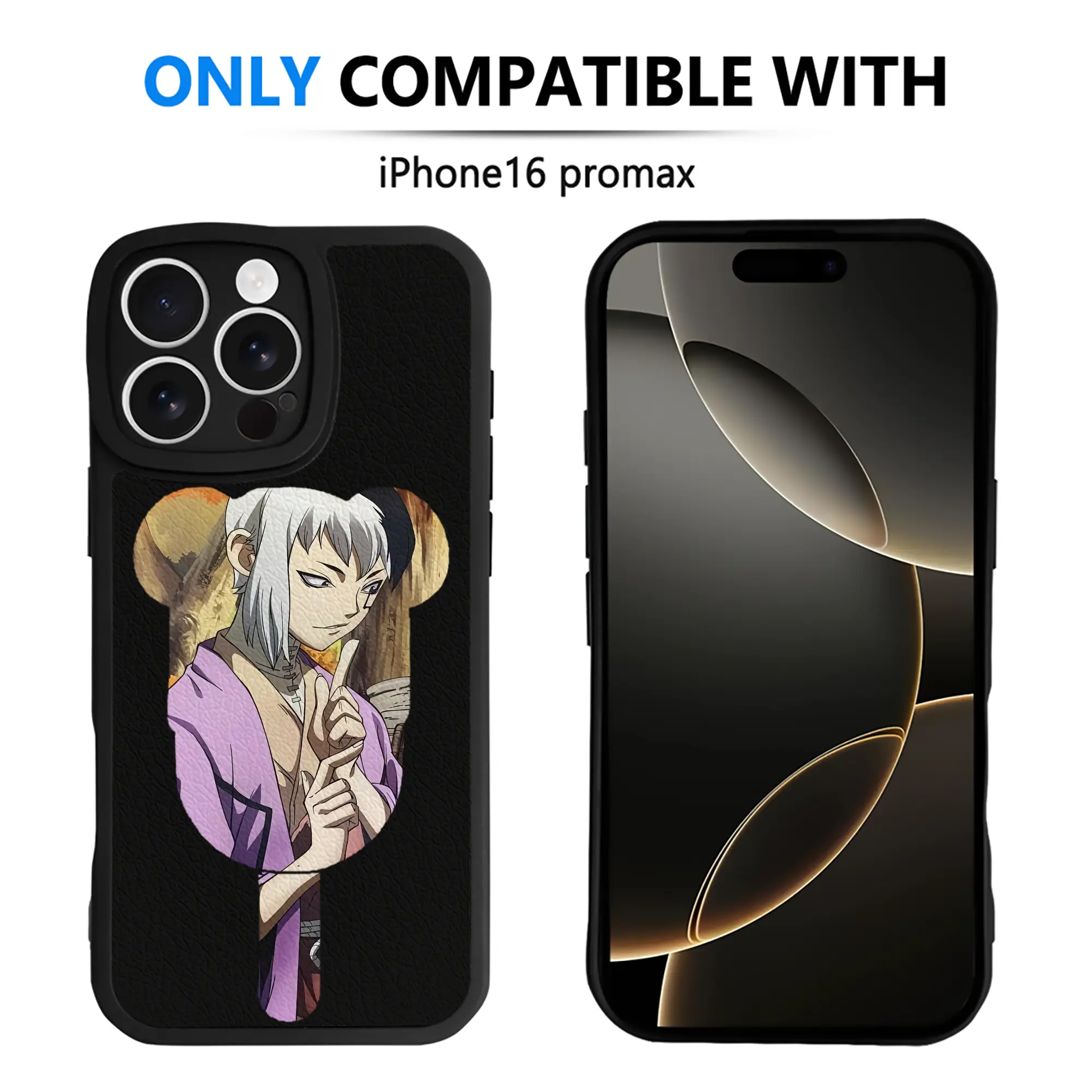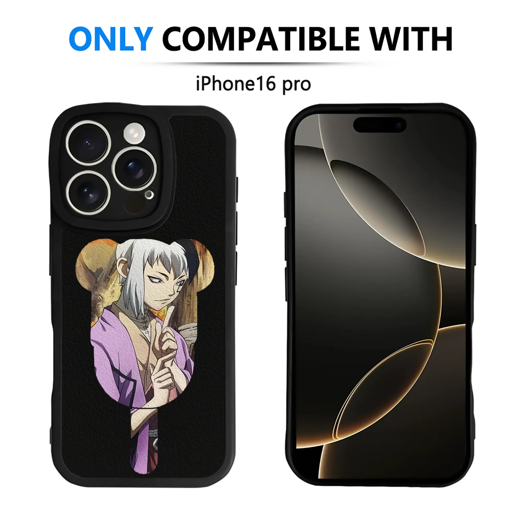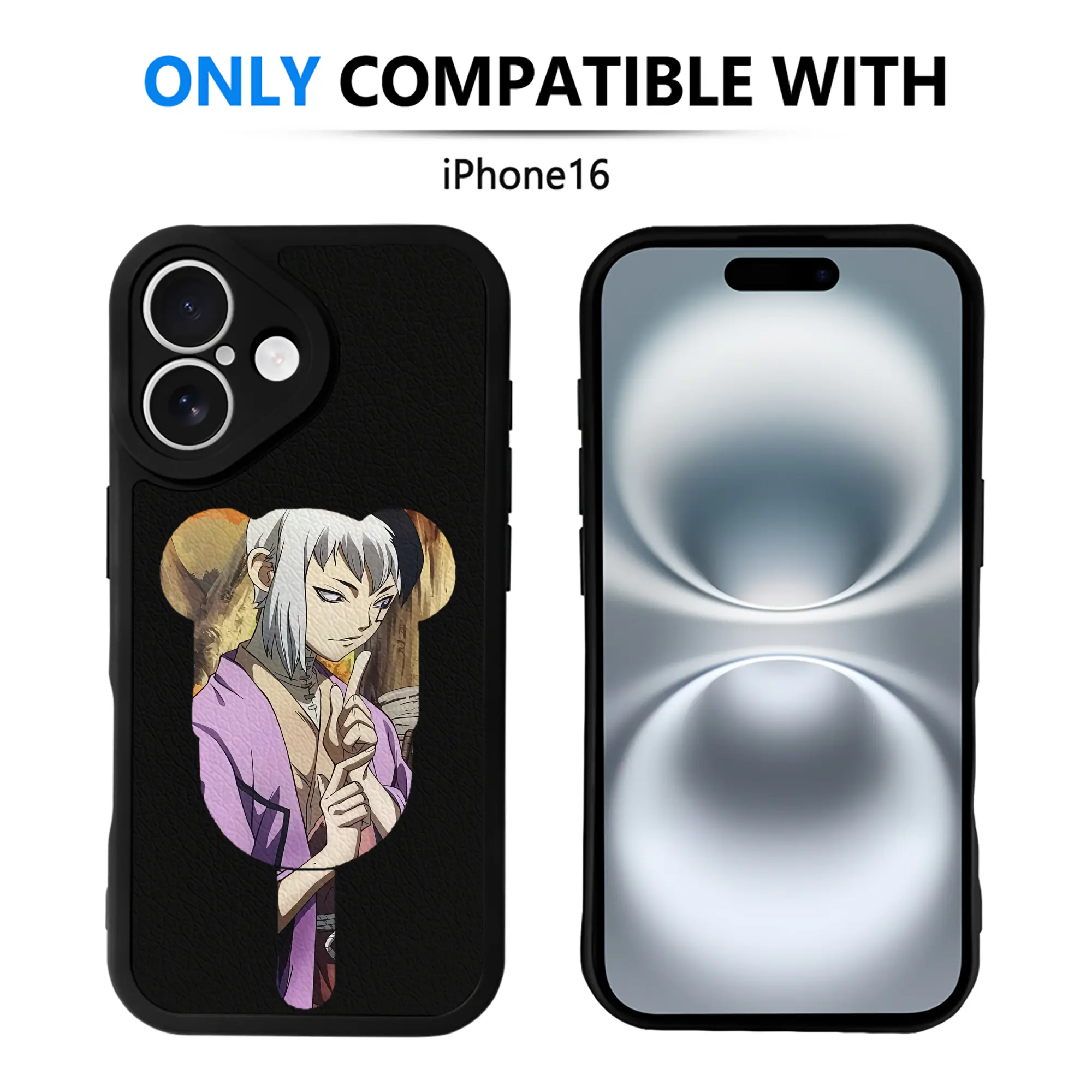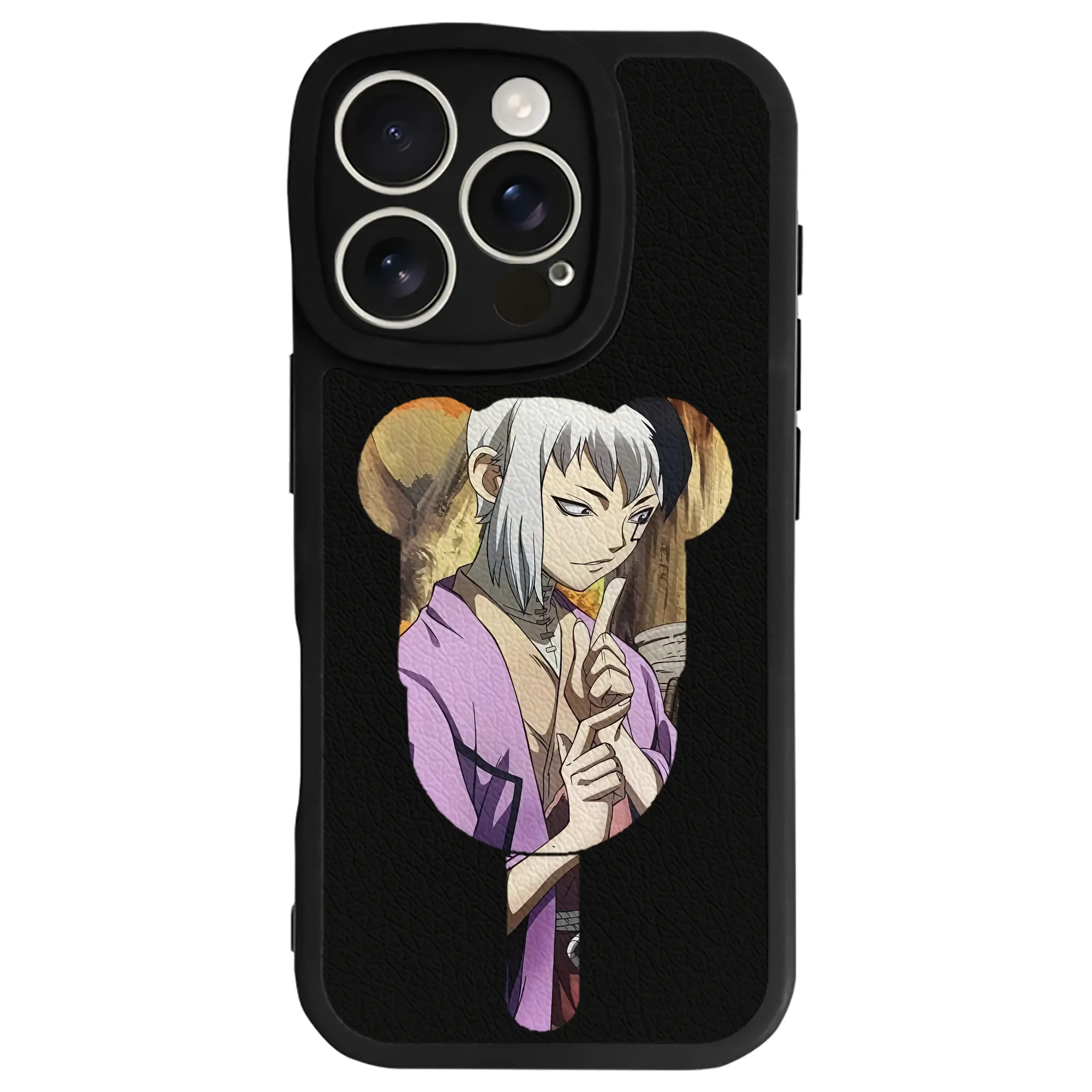 ドクターストーン グッズ,ゲン 銀狼 - IPhone 16シリーズ対応 ・ シリコンスマホケース ・ レザー調 ・ 高精度フィット ・ 耐衝撃 ・ ワイヤレス充電対応 ・ 精密カット