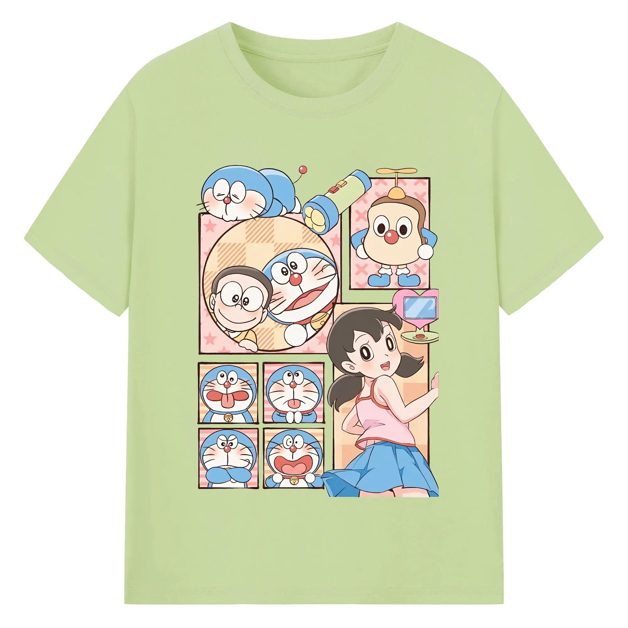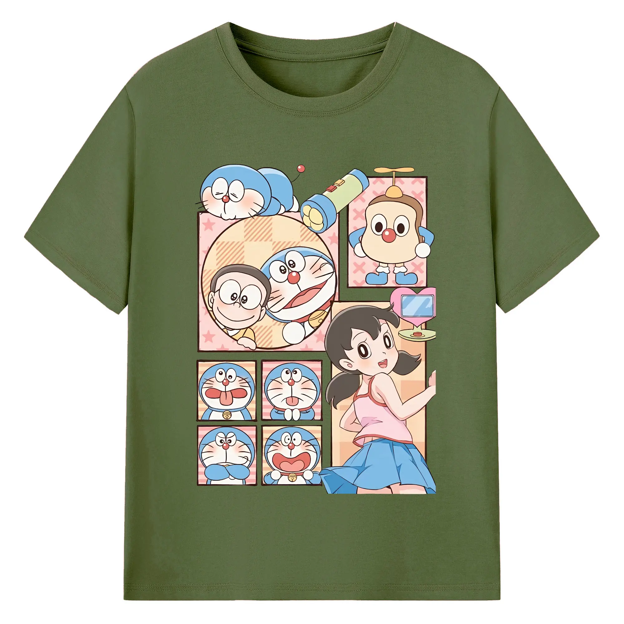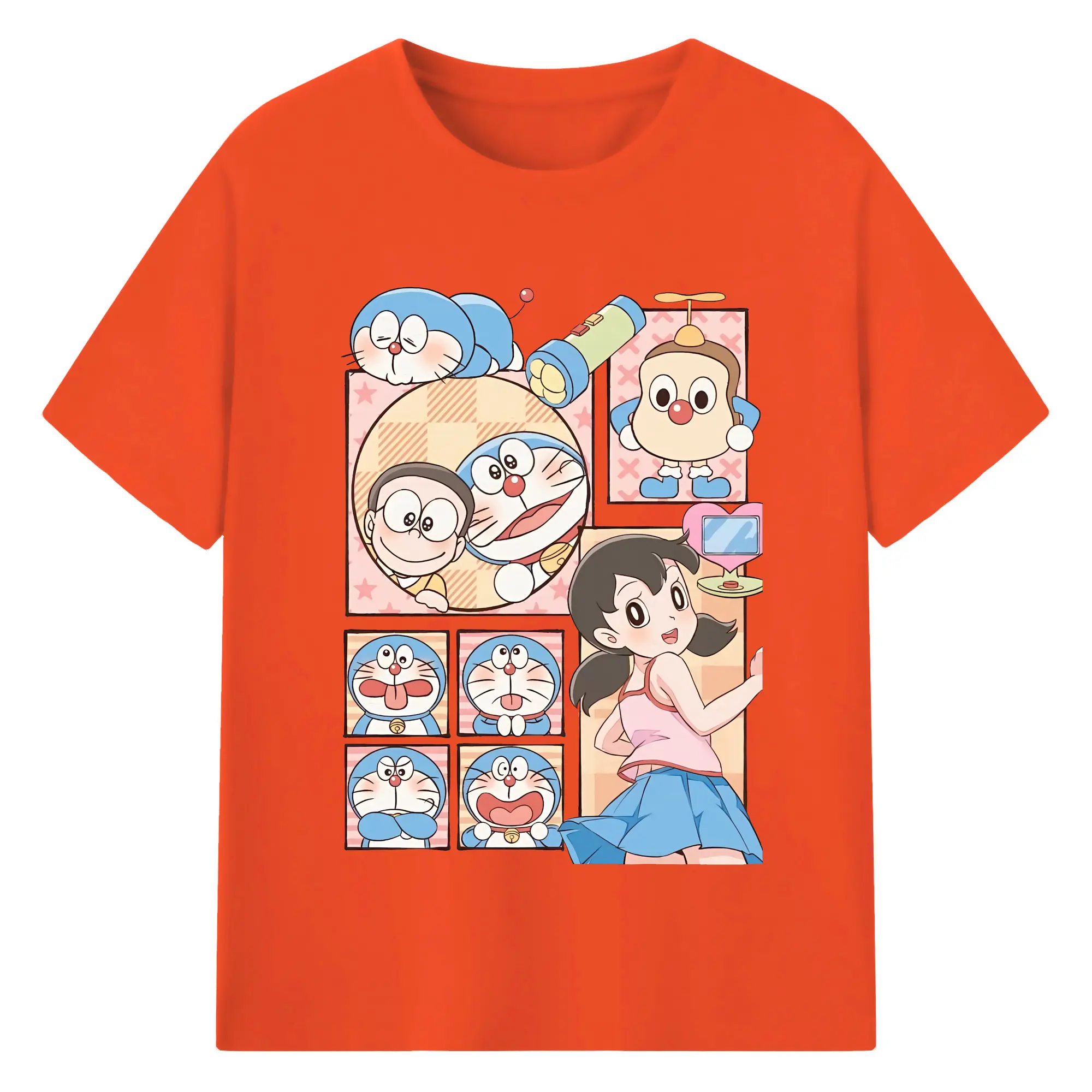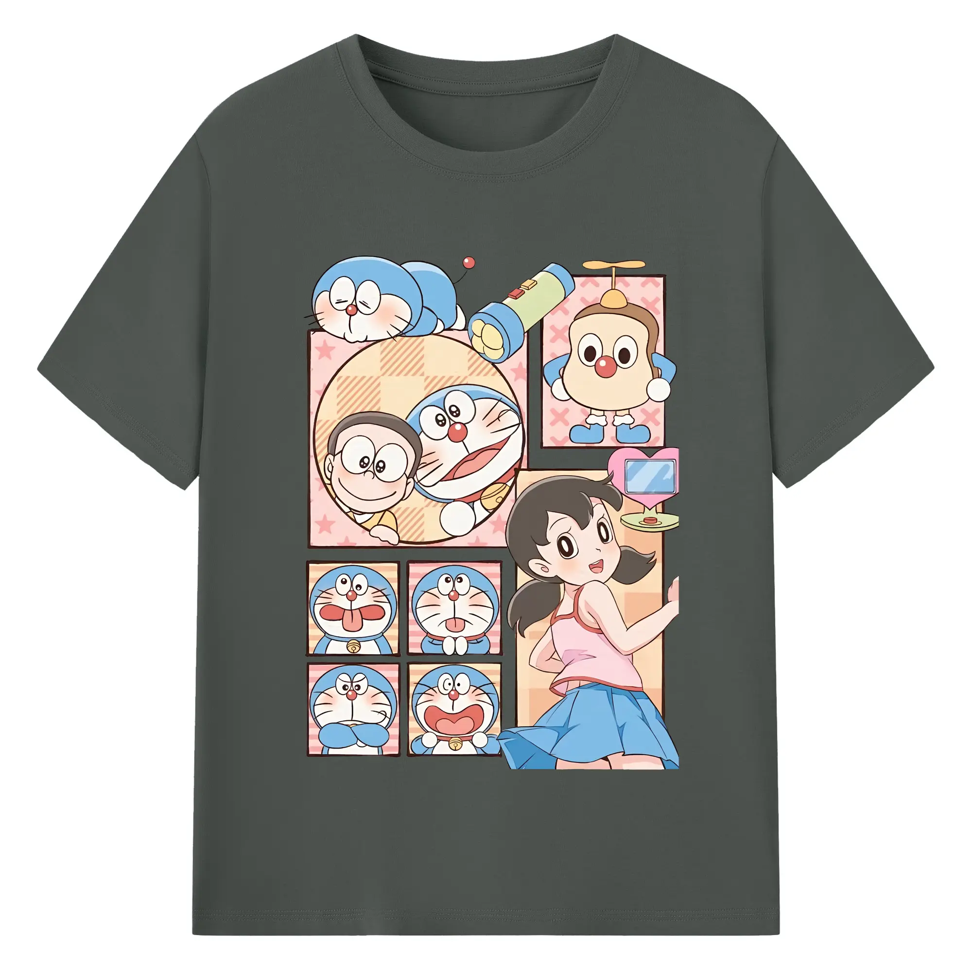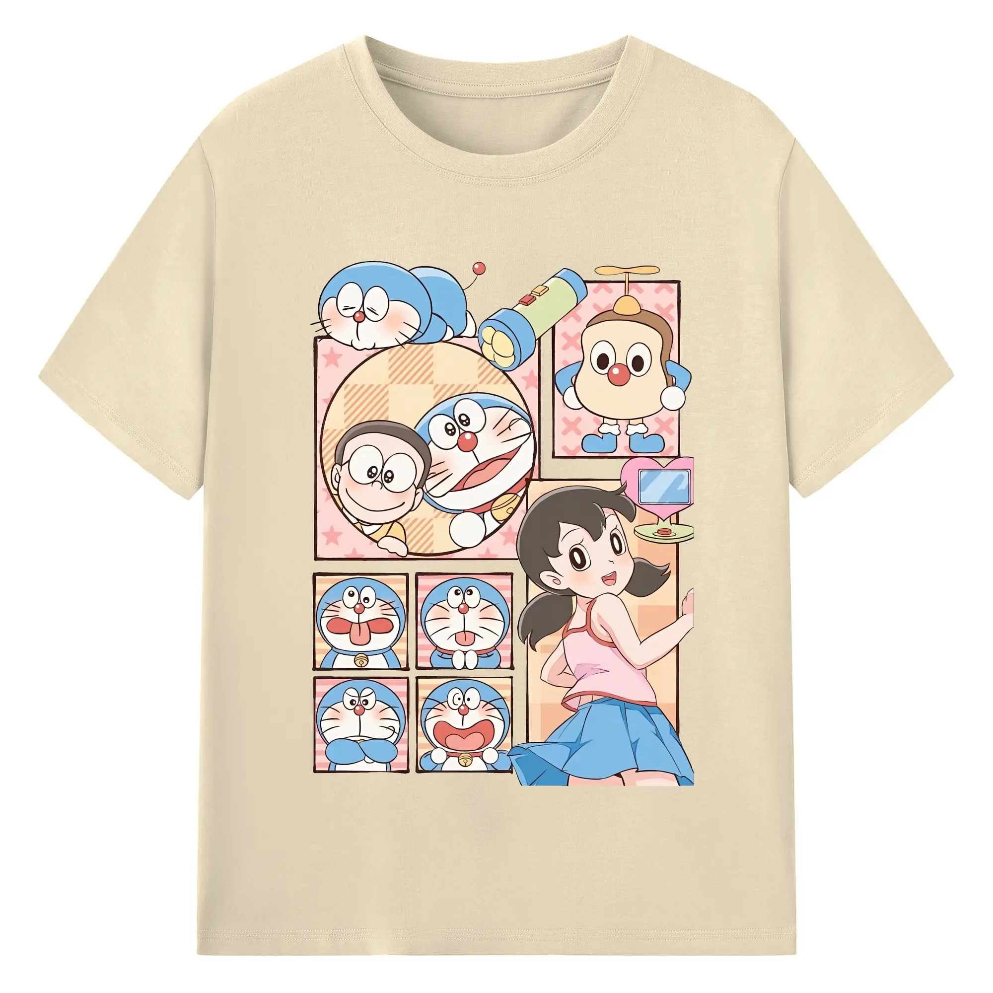ドラえもん グッズドラえもん - 綿100% ヴィンテージ風 半袖Tシャツ ・ フロントプリント ・ 柔らか肌触り ・ 通気性 快適 ・ スポーツ カジュアル 外出用