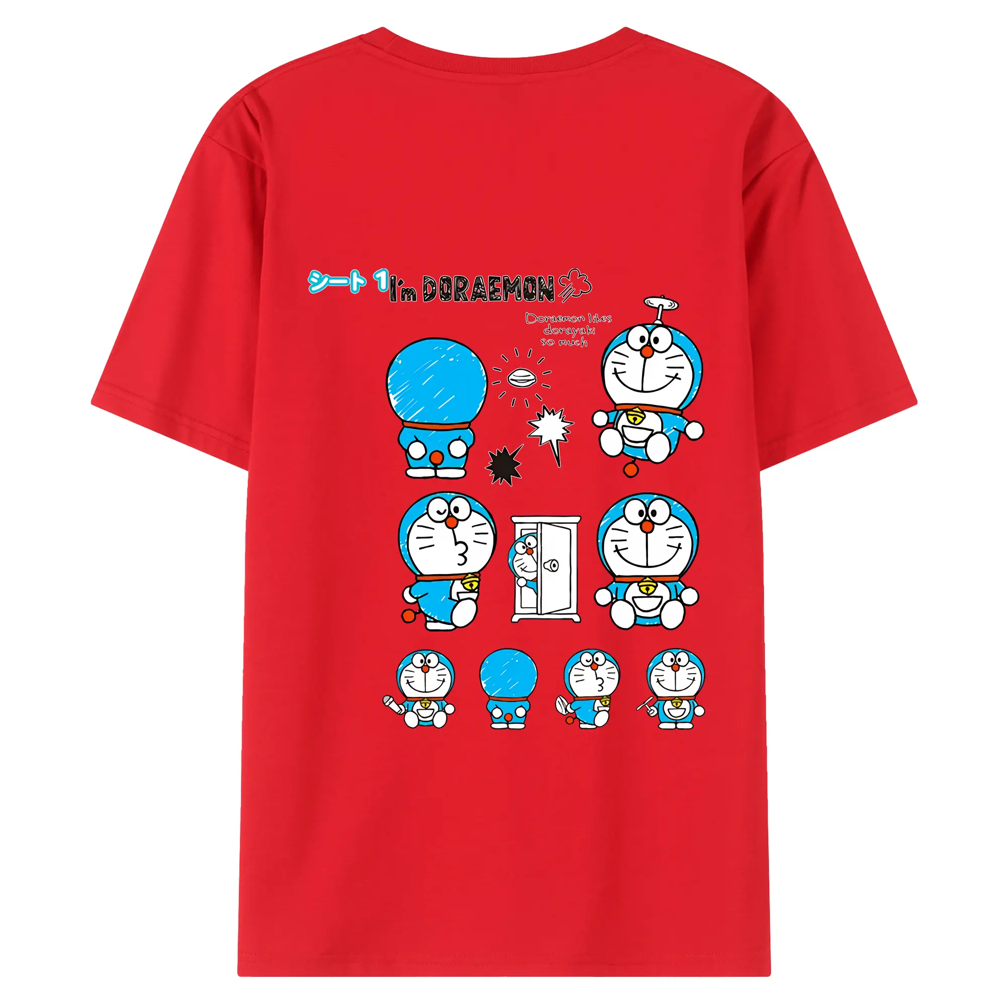 ドラえもん グッズドラえもん - 綿100% 半袖Tシャツ ・ フロントプリント ・ 快適 通気性 ・ 日常使い 散歩 スポーツ用