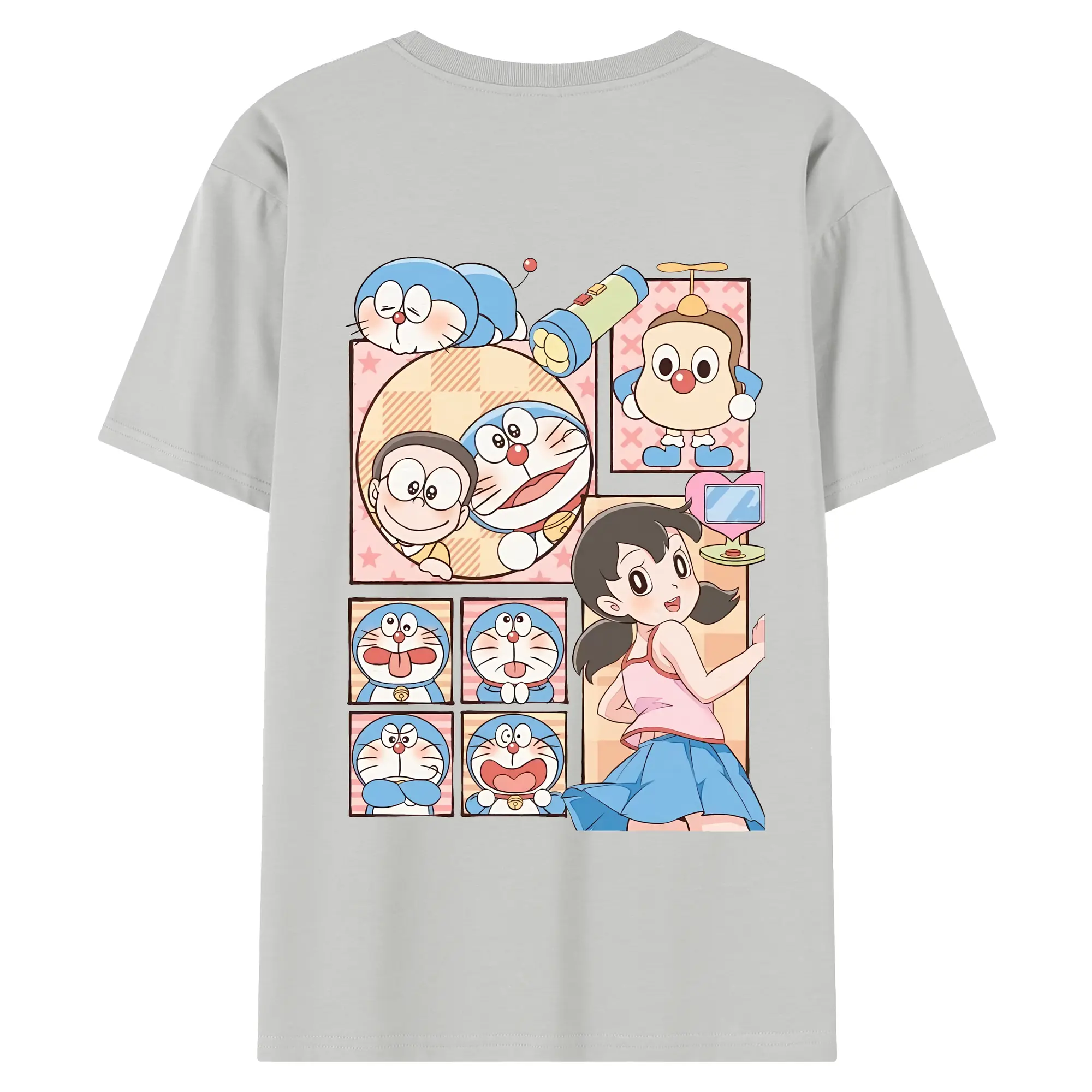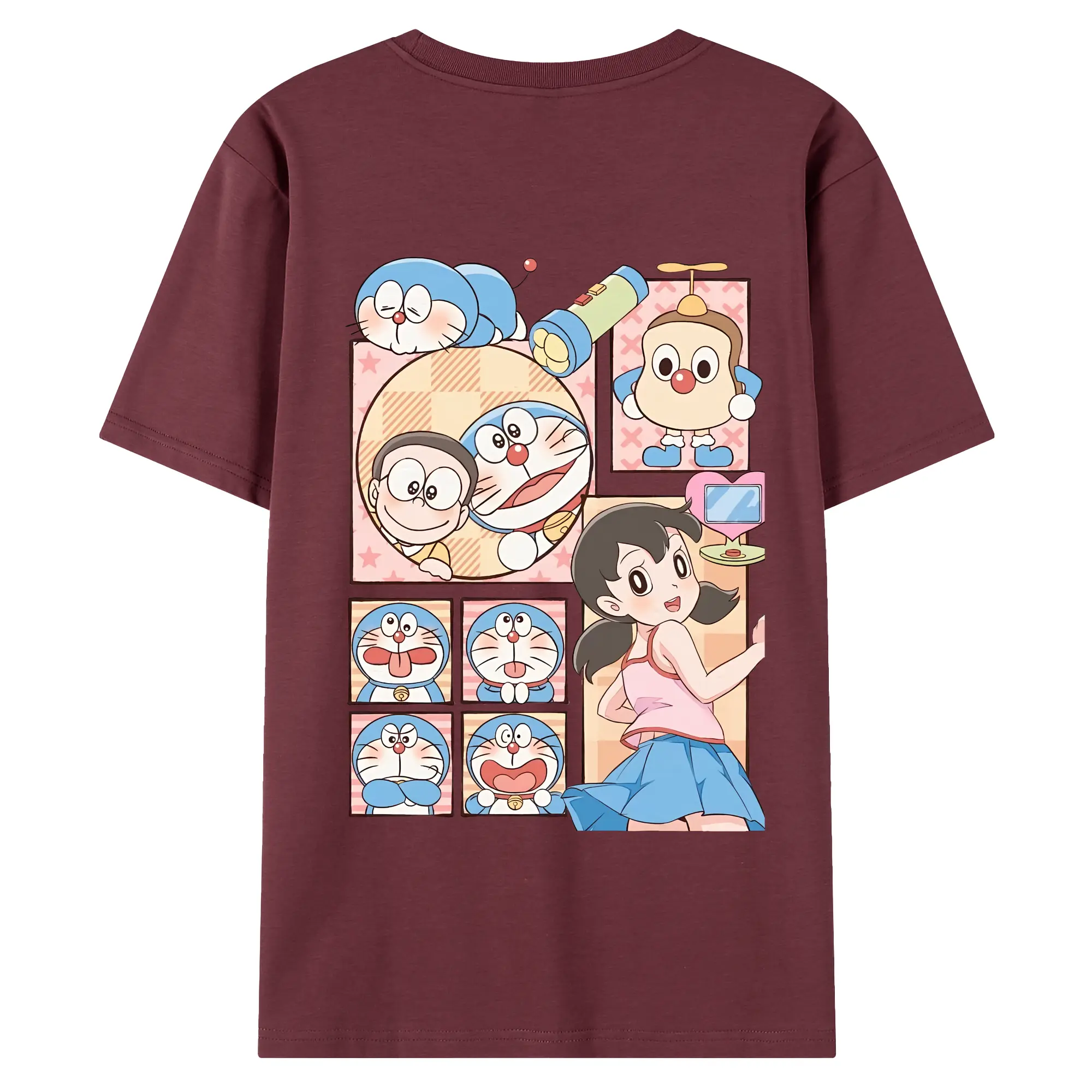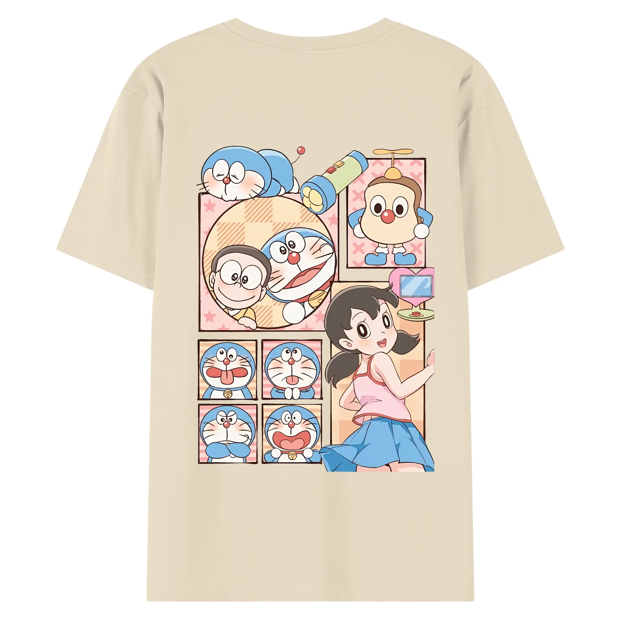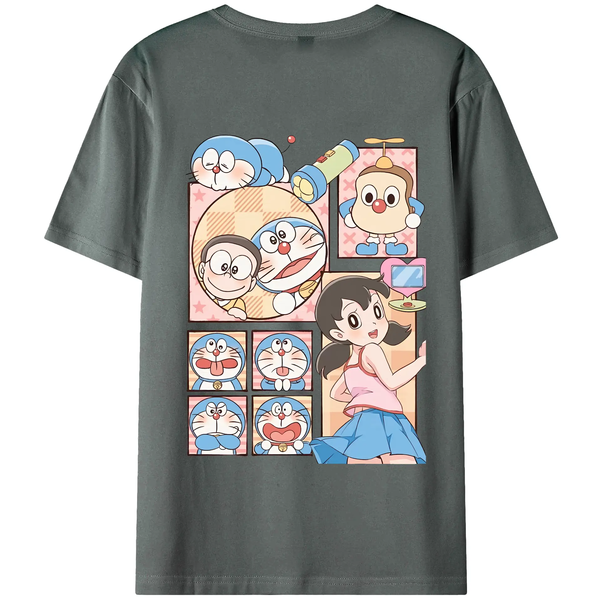 ドラえもん グッズドラえもん - 綿100% ヴィンテージ風 半袖Tシャツ ・ 背面プリント ・ 柔らか肌触り ・ 通気性 快適 ・ スポーツ カジュアル 外出用