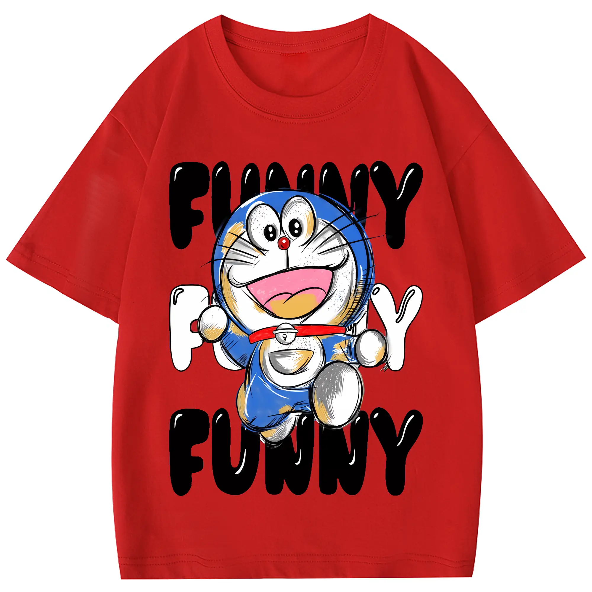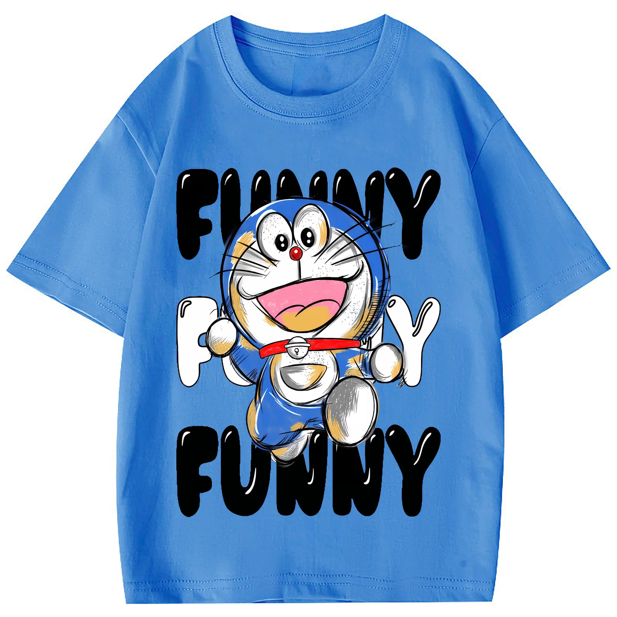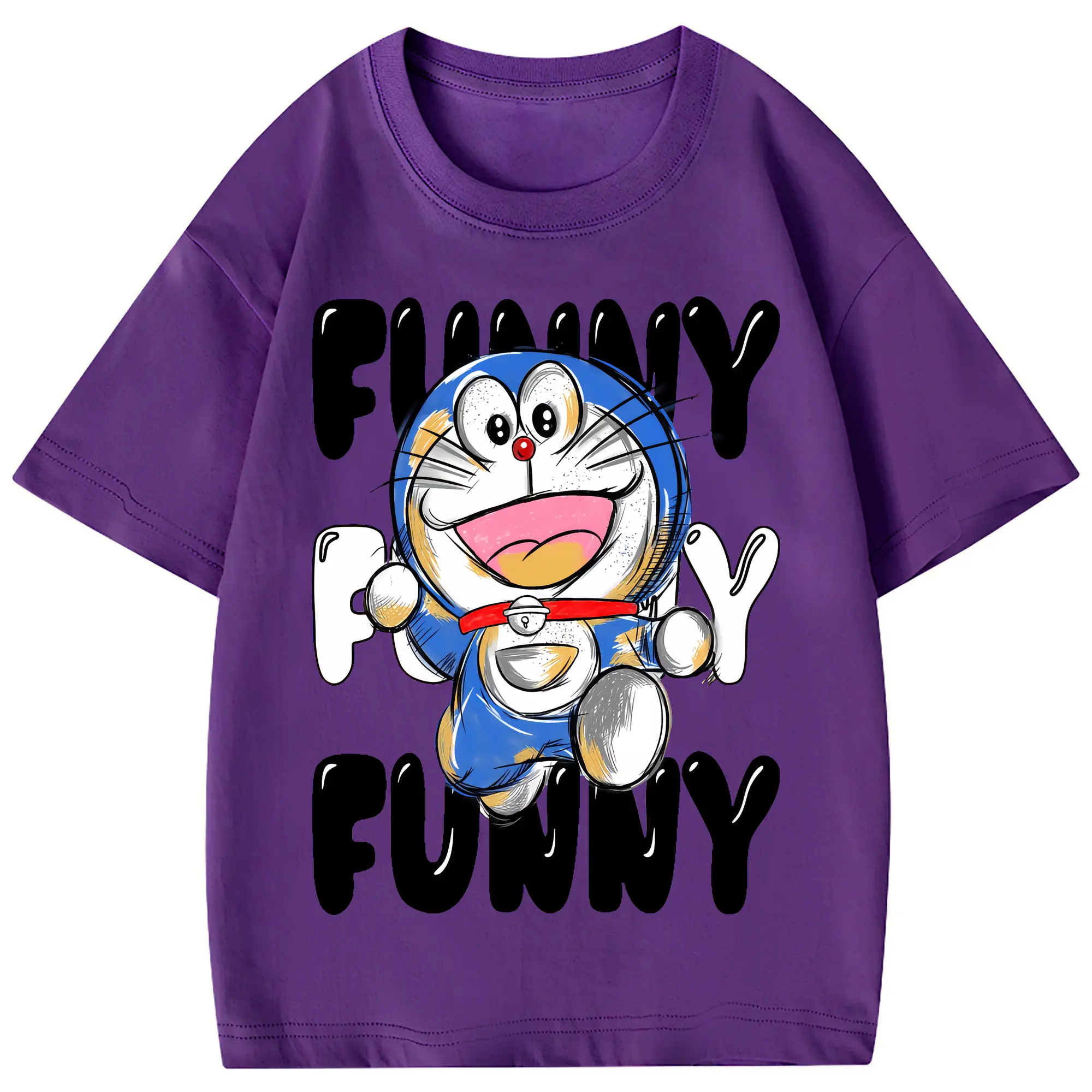 ドラえもん グッズドラえもん - 綿100% 半袖Tシャツ ・ フロントプリント ・ 快適 通気性 ・ 日常使い 散歩 スポーツ用