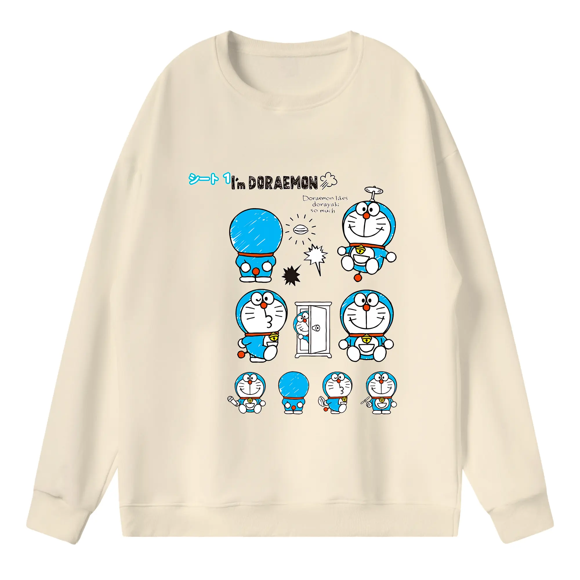 ドラえもん グッズドラえもん - 高品質 クルーネック スウェット ・ コットン59% ポリエステル41% ・ ユニセックス 長袖 トレーナー ・ カジュアル デイリー スポーツ 散歩用
