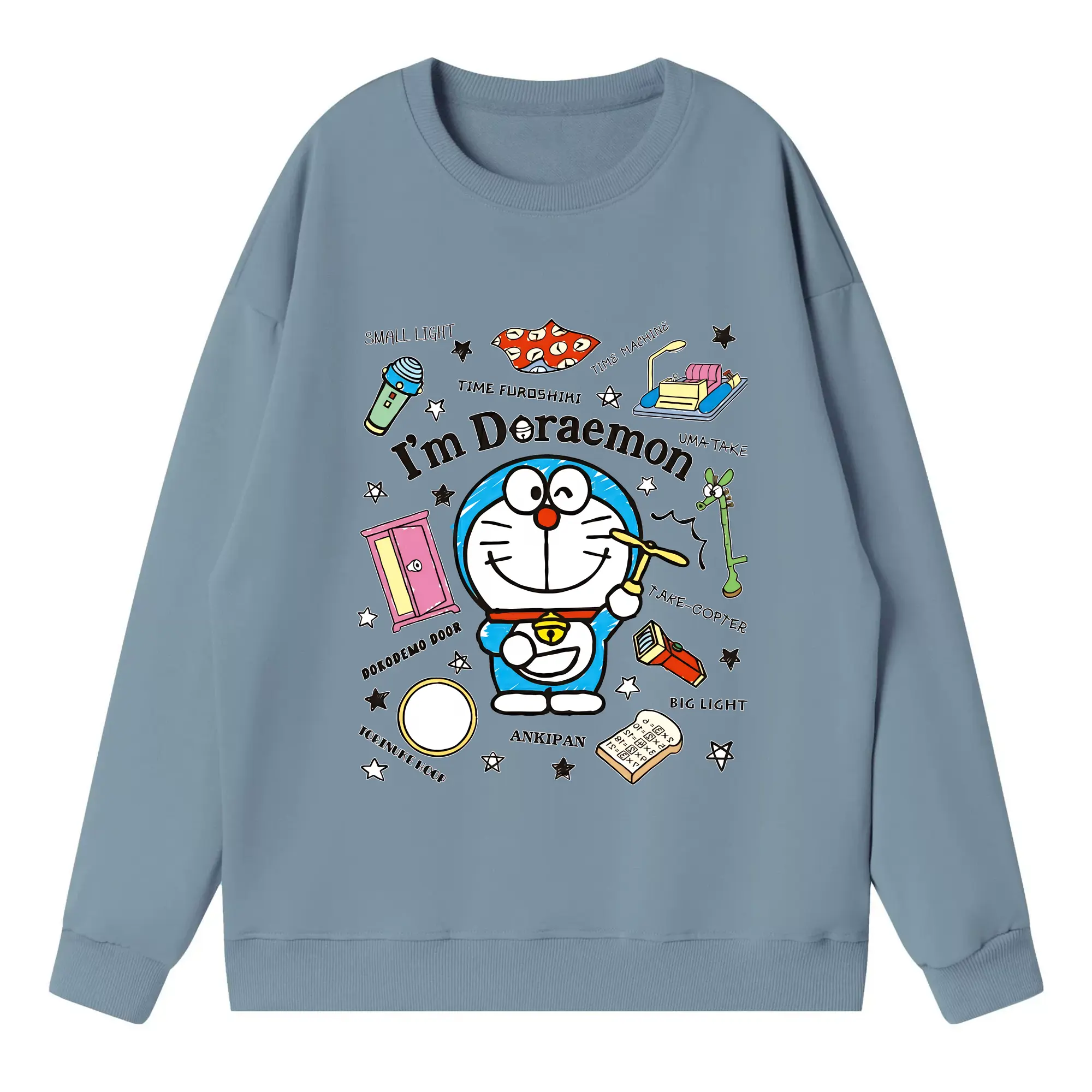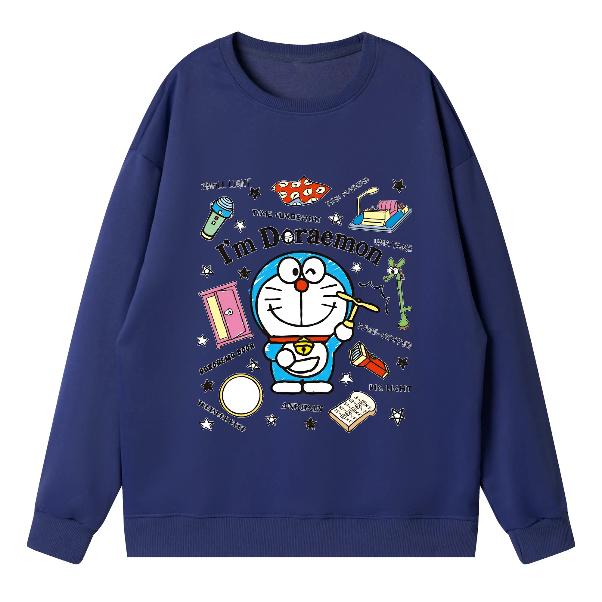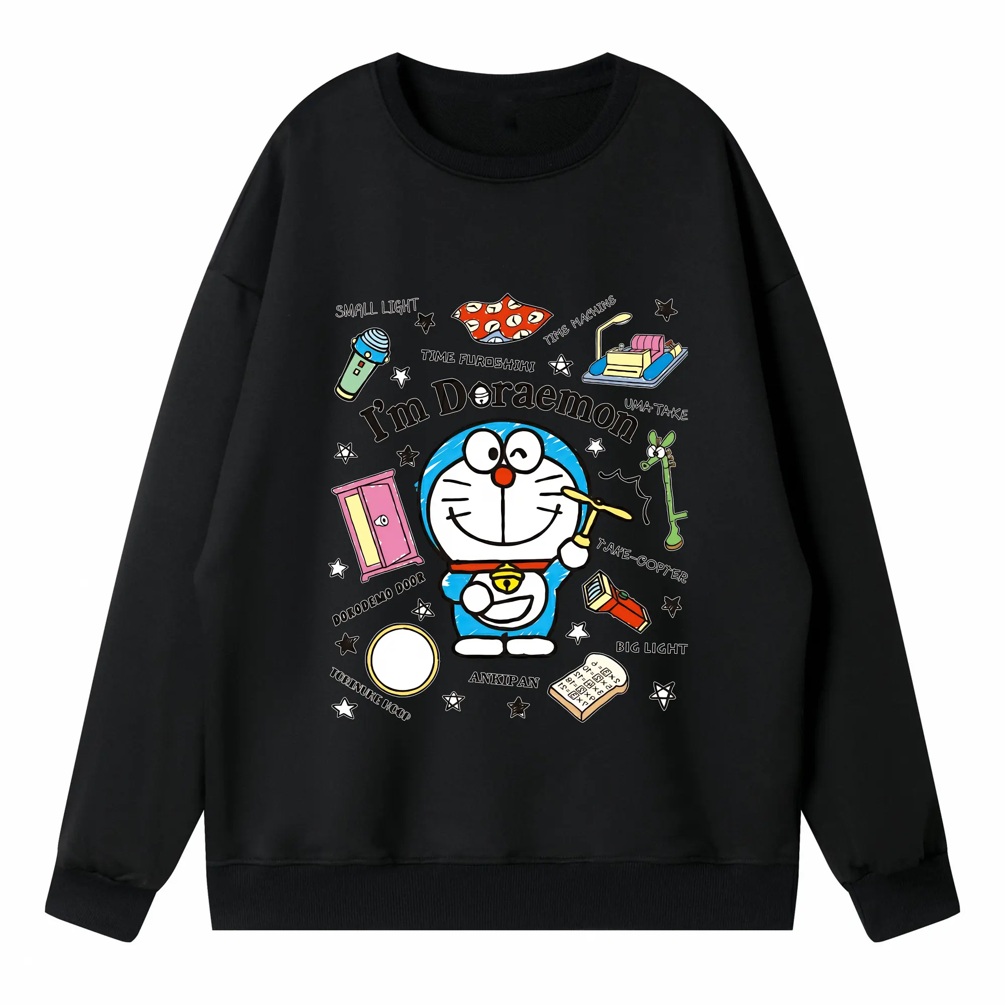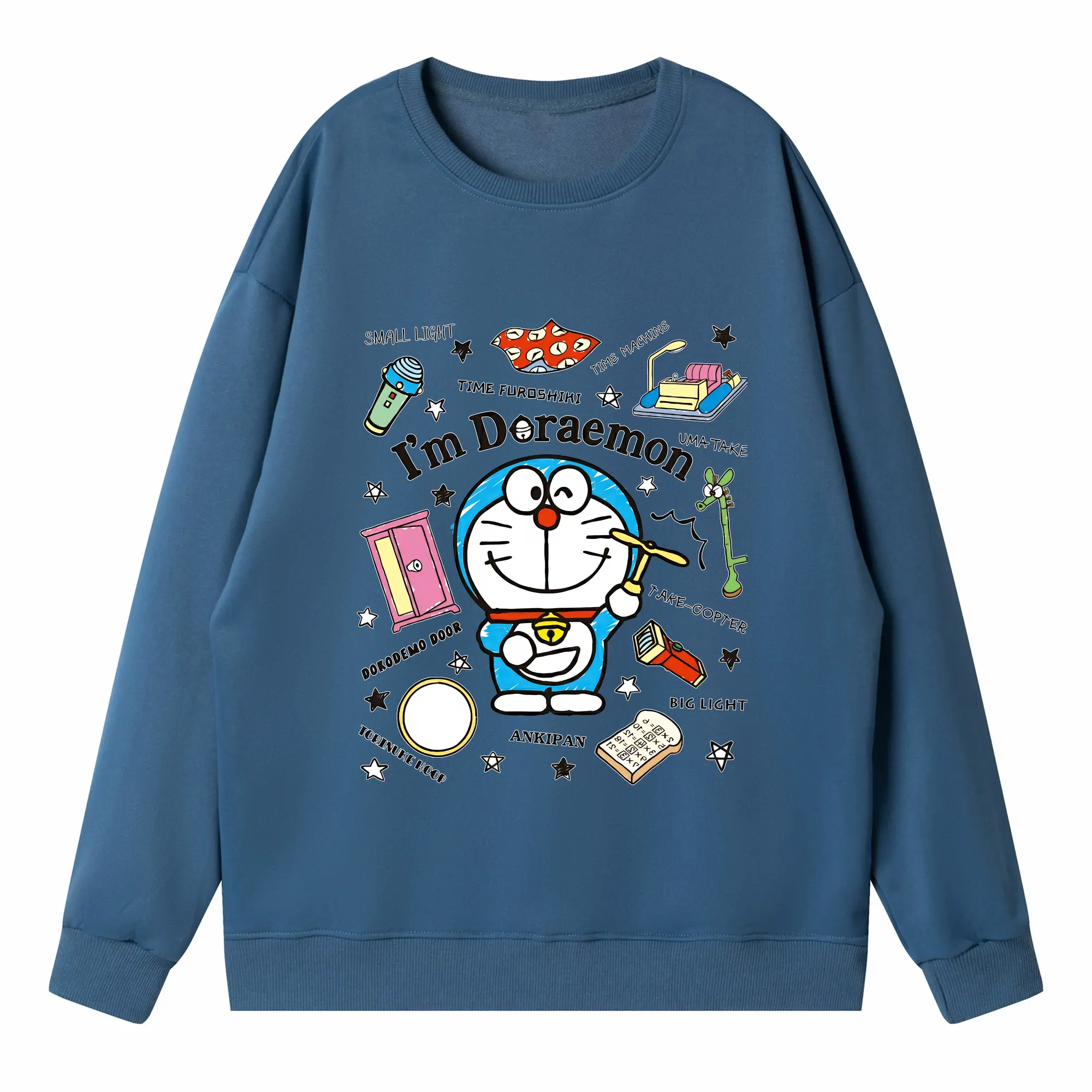 ドラえもん グッズドラえもん - 高品質 クルーネック スウェット ・ コットン59% ポリエステル41% ・ ユニセックス 長袖 トレーナー ・ カジュアル デイリー スポーツ 散歩用