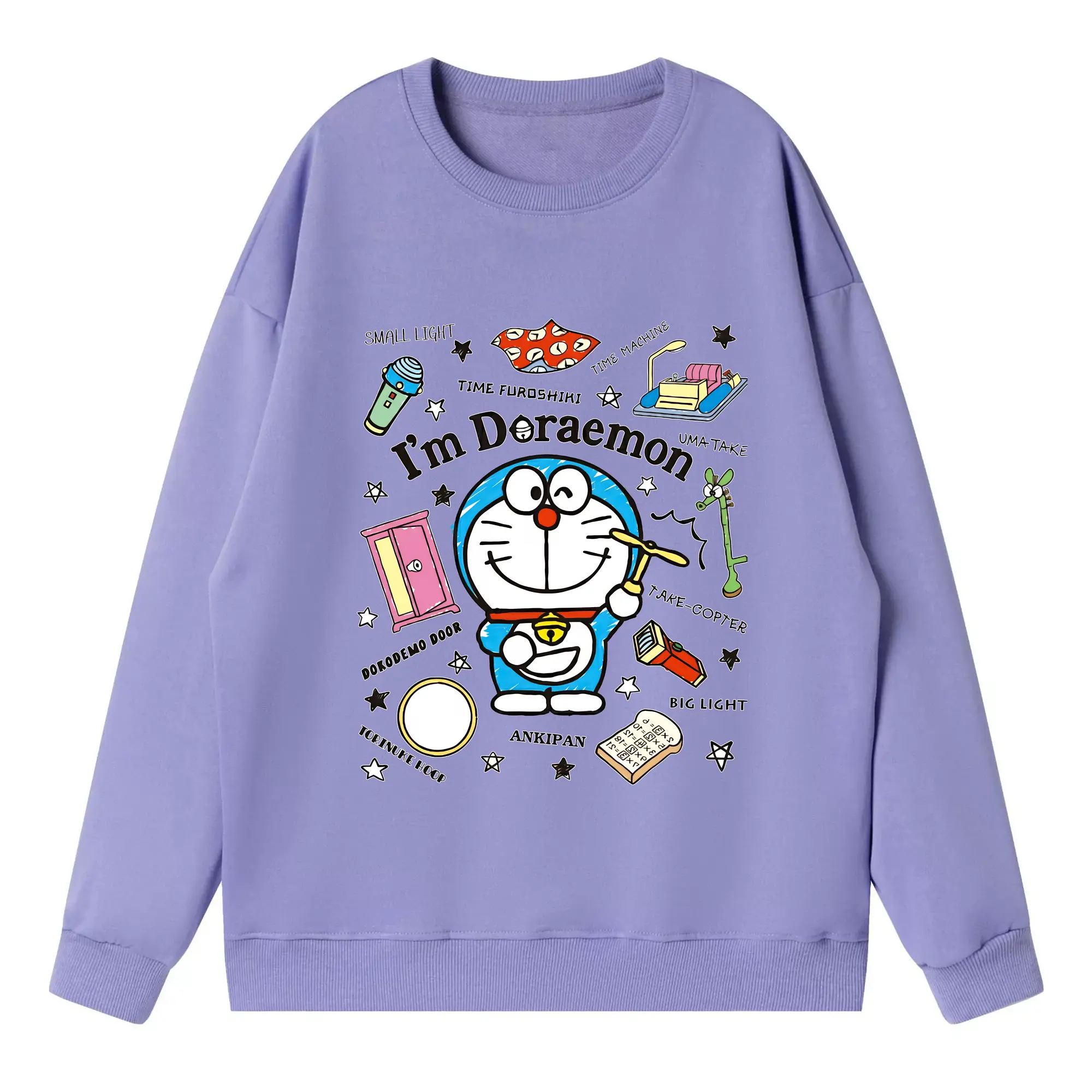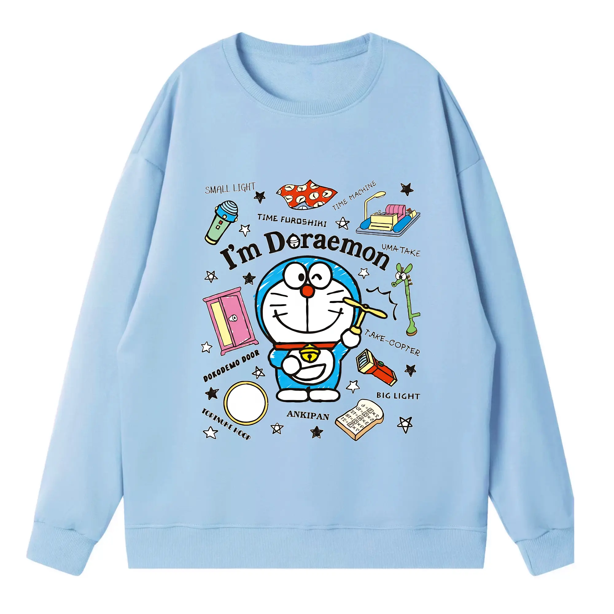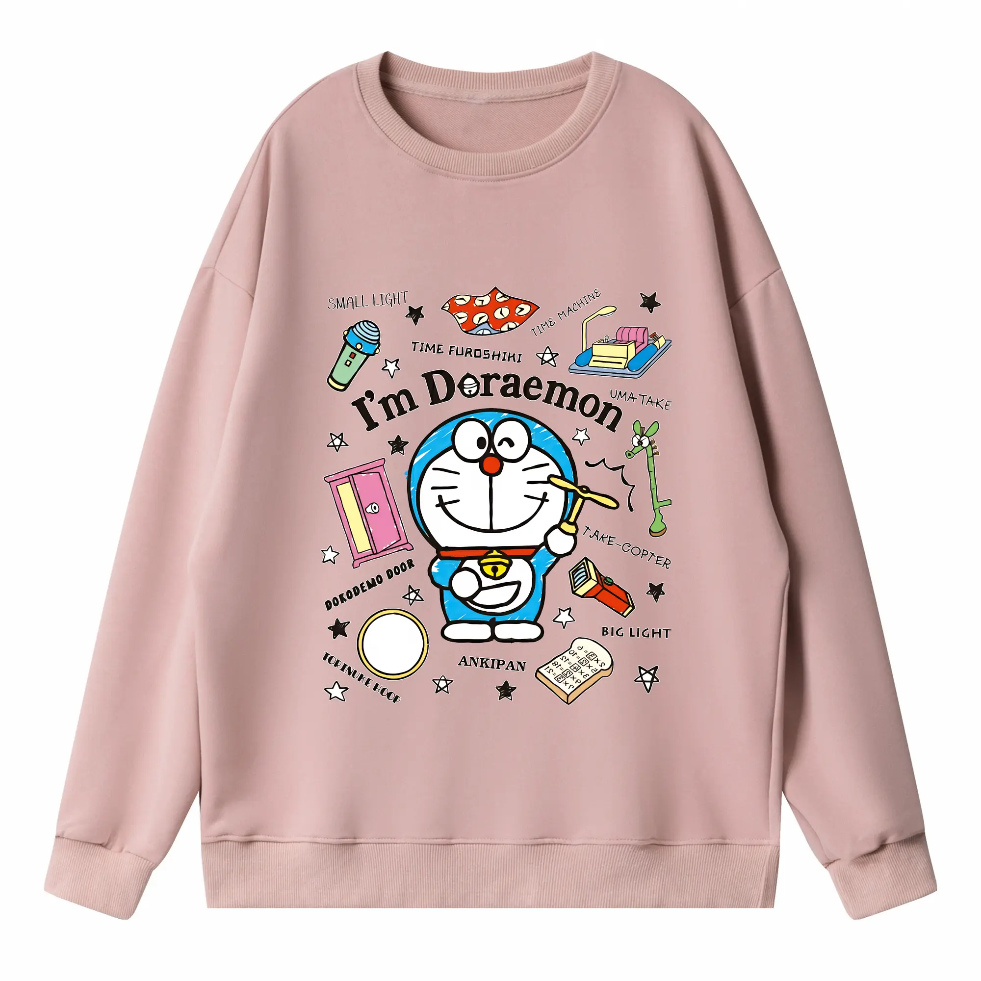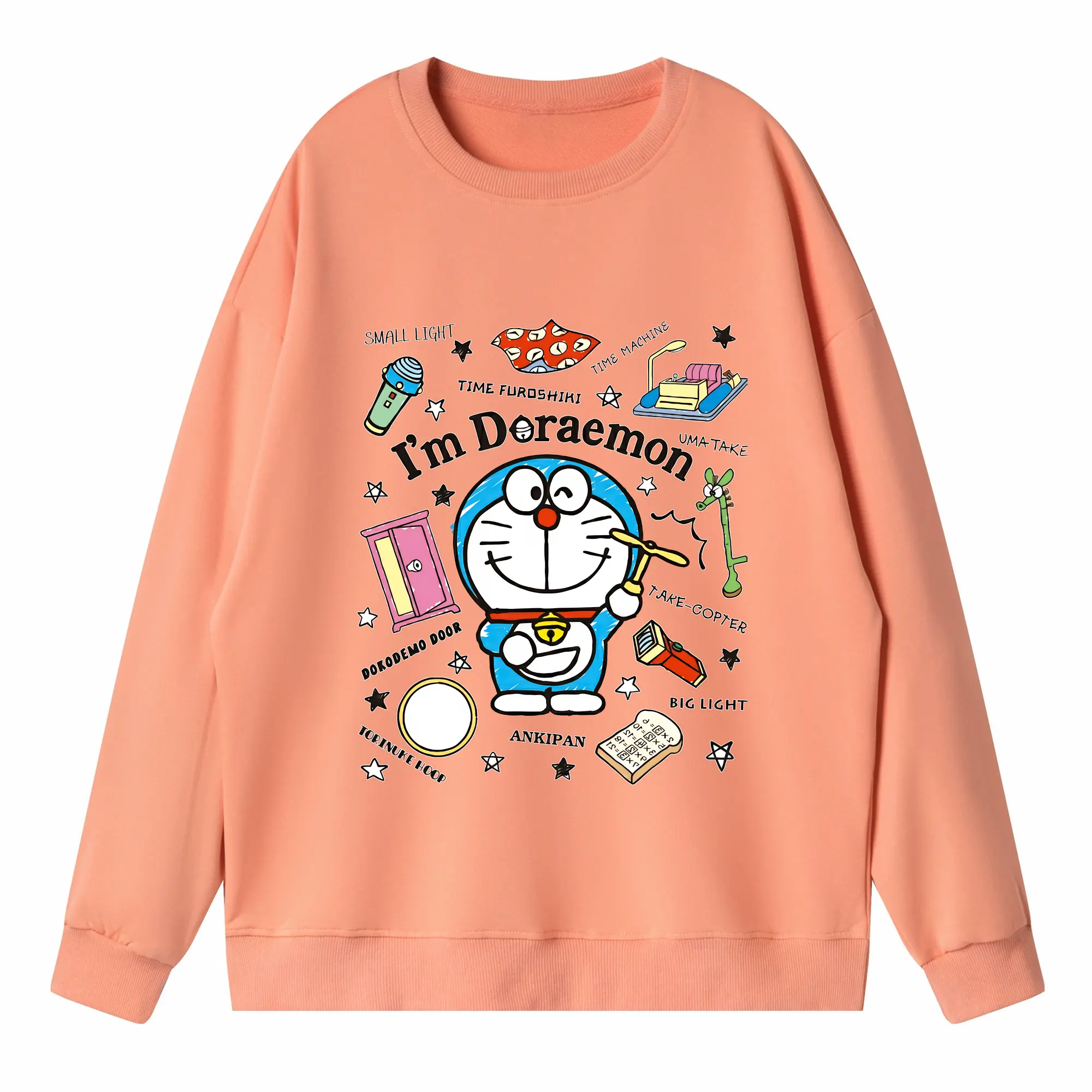 ドラえもん グッズドラえもん - 高品質 クルーネック スウェット ・ コットン59% ポリエステル41% ・ ユニセックス 長袖 トレーナー ・ カジュアル デイリー スポーツ 散歩用