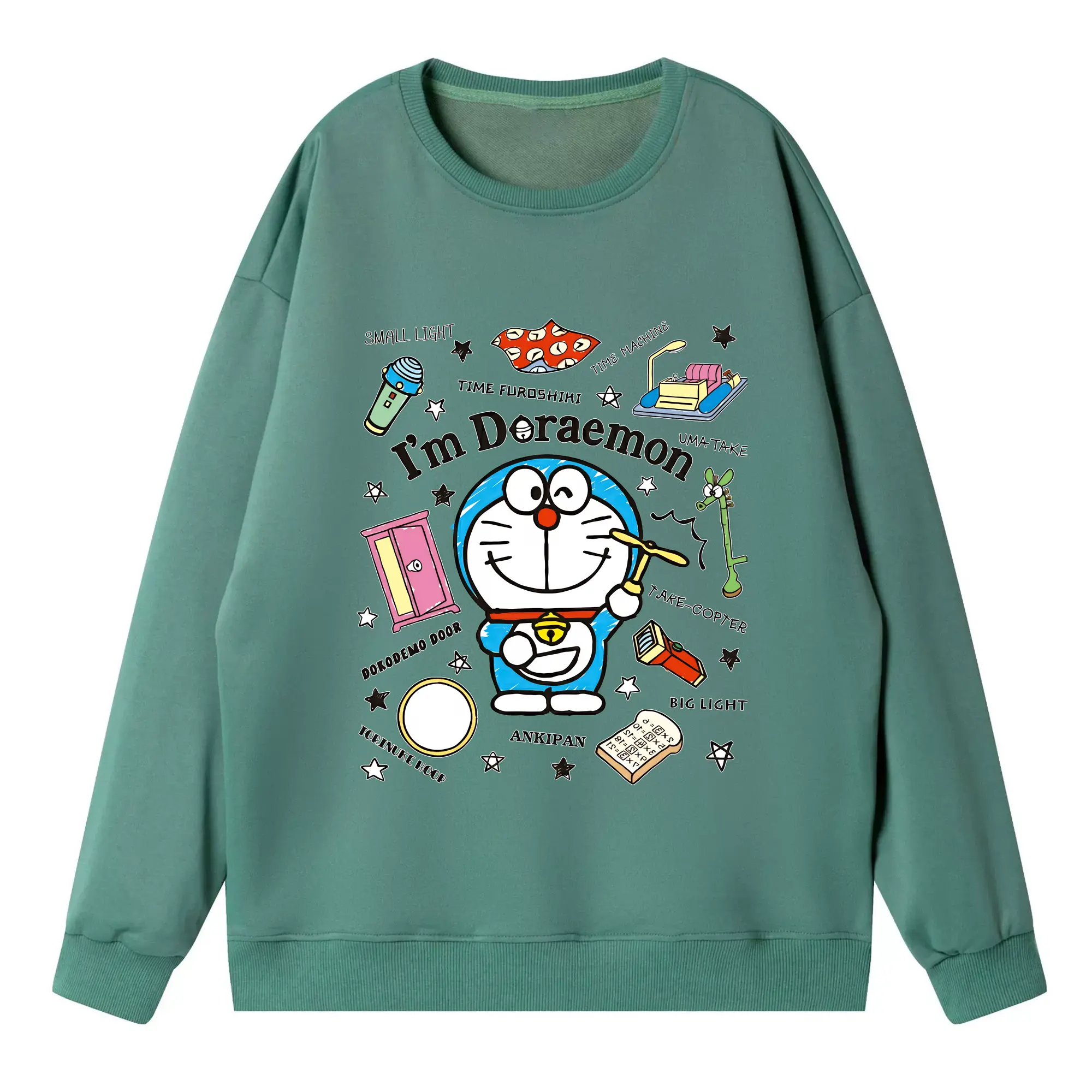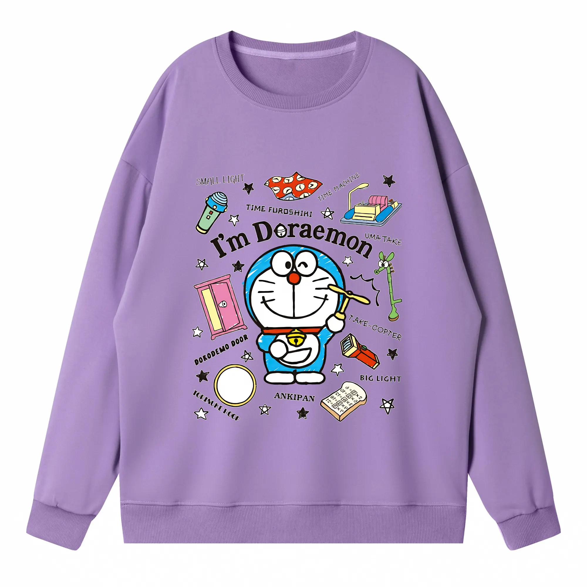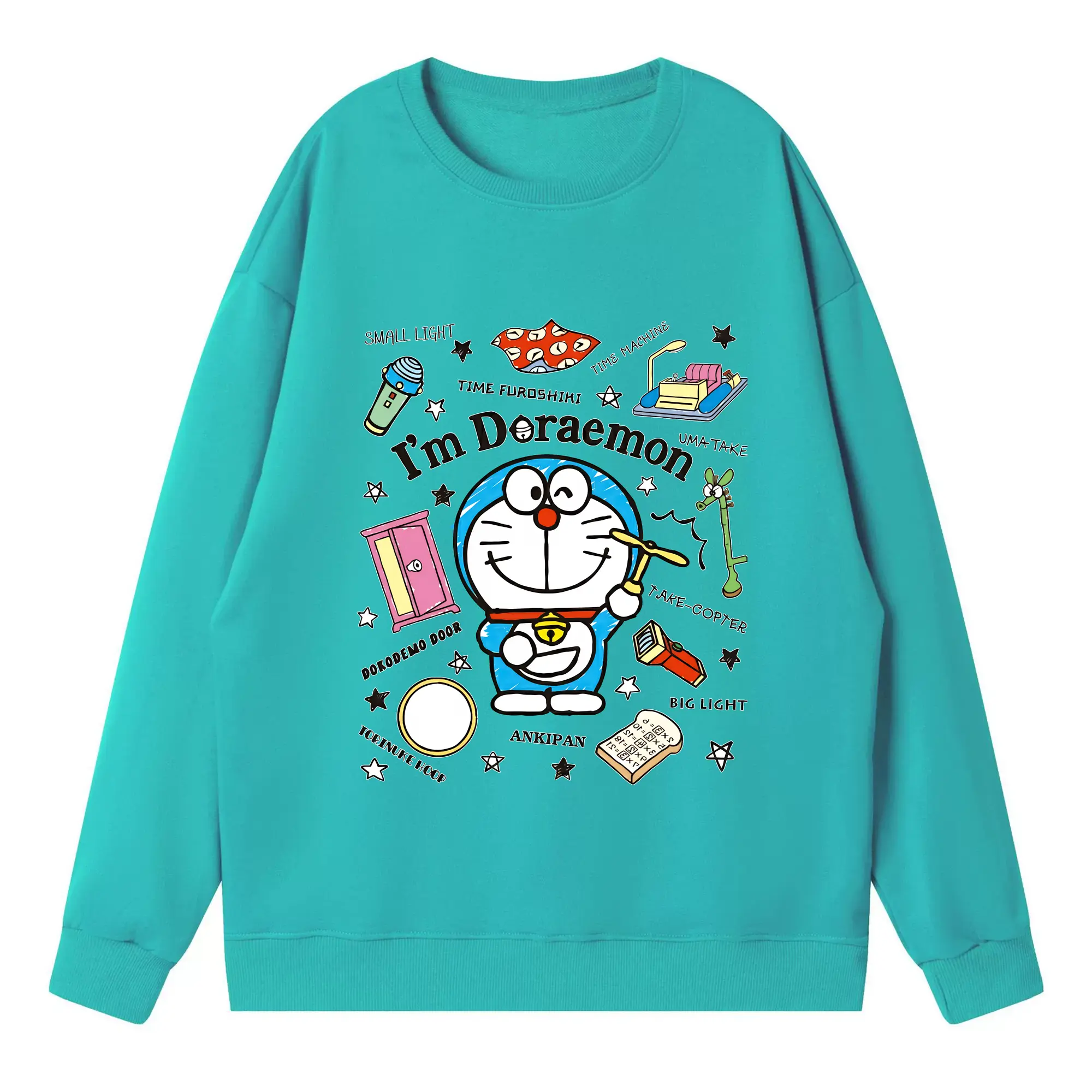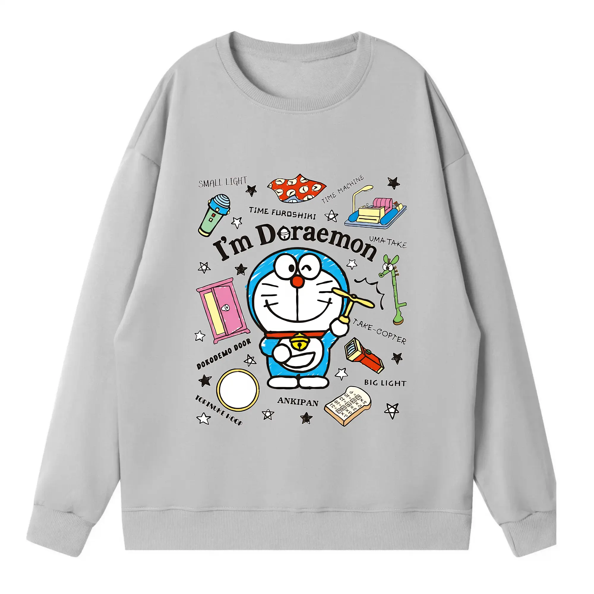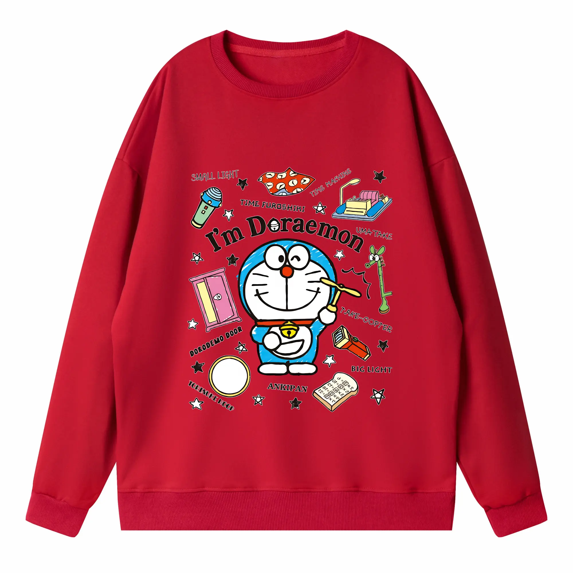 ドラえもん グッズドラえもん - 高品質 クルーネック スウェット ・ コットン59% ポリエステル41% ・ ユニセックス 長袖 トレーナー ・ カジュアル デイリー スポーツ 散歩用